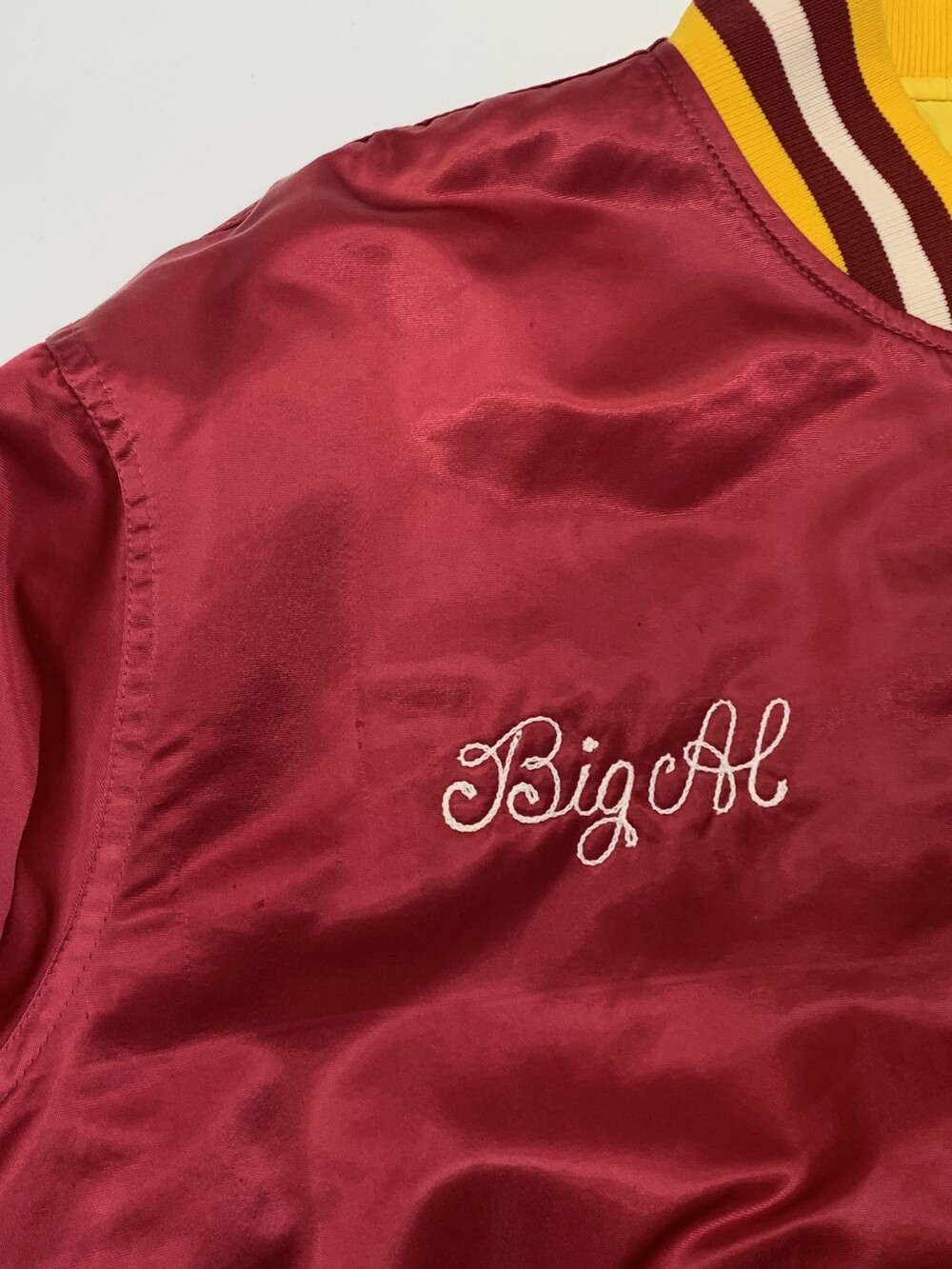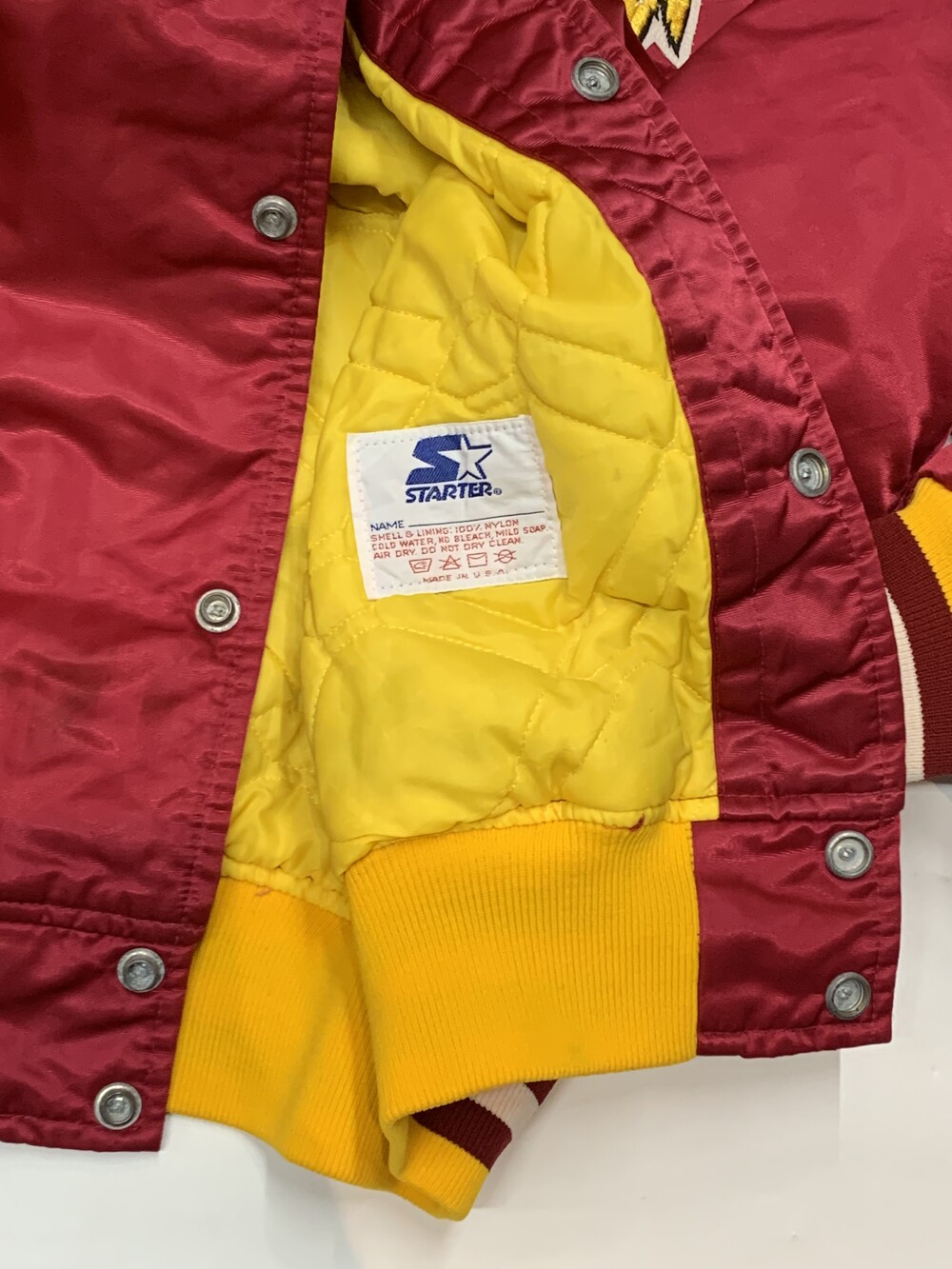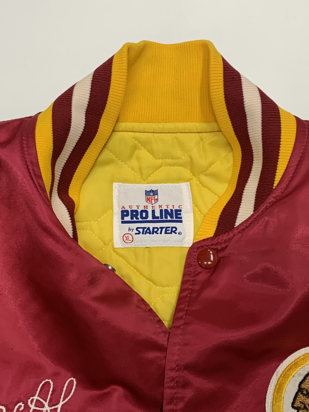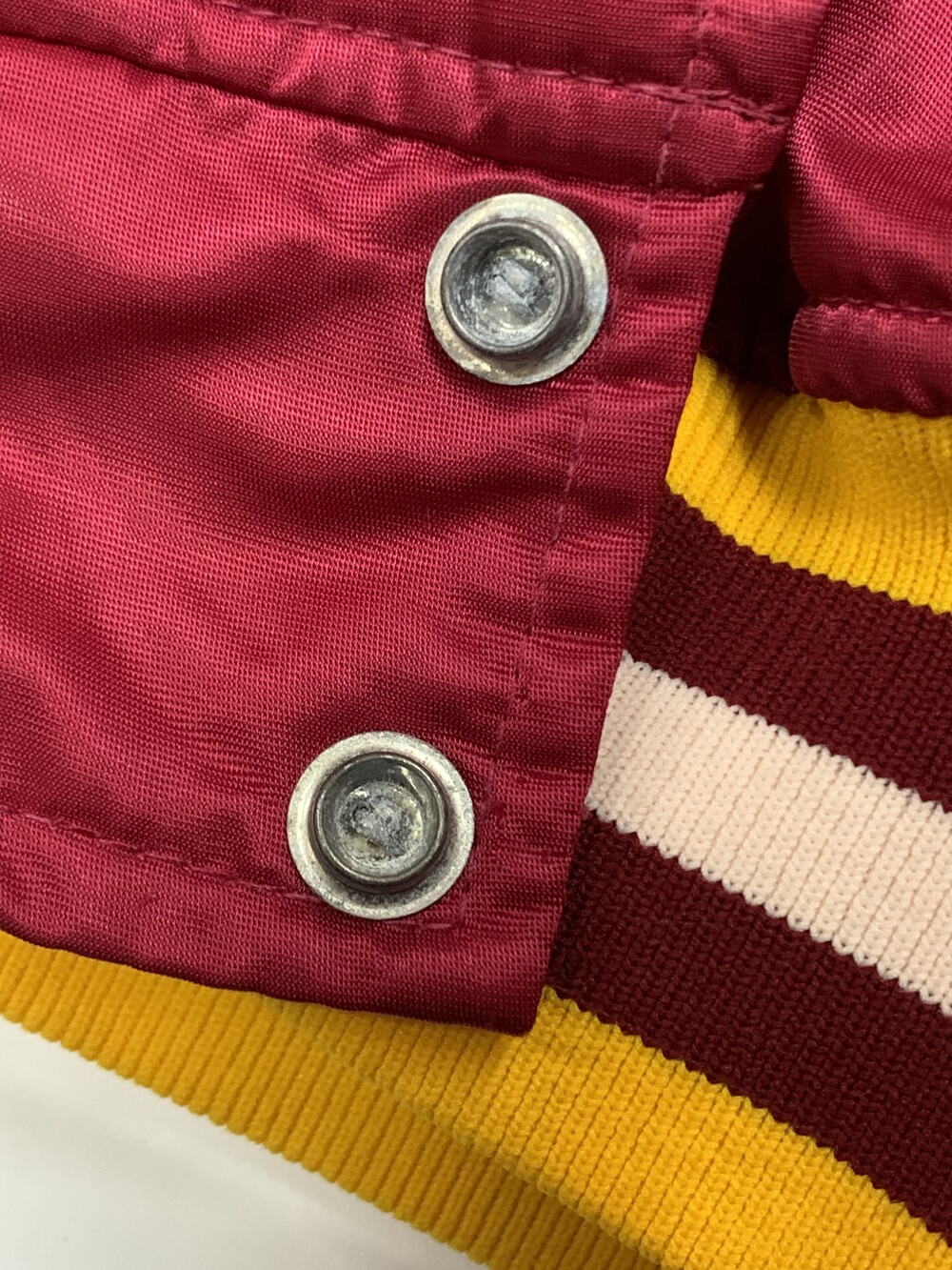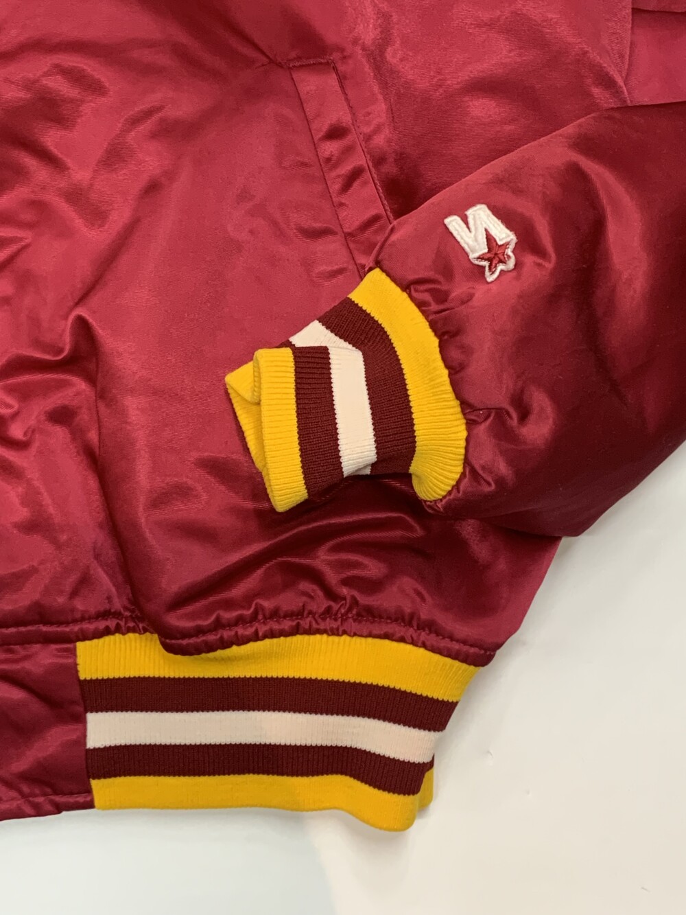 인디언 혹은 그들의 피부색을 가리키는 용어를 프로 및 아마추어 스포츠팀에서 사용하지 않기를 권장하는 사회적인 분위기에 맞춰 워싱턴 커맨더스(Washington Commanders)로 구단명을 변경하기 이전 시기에 생산된, 워싱턴 레드스킨스의 스타디움 자켓입니다.