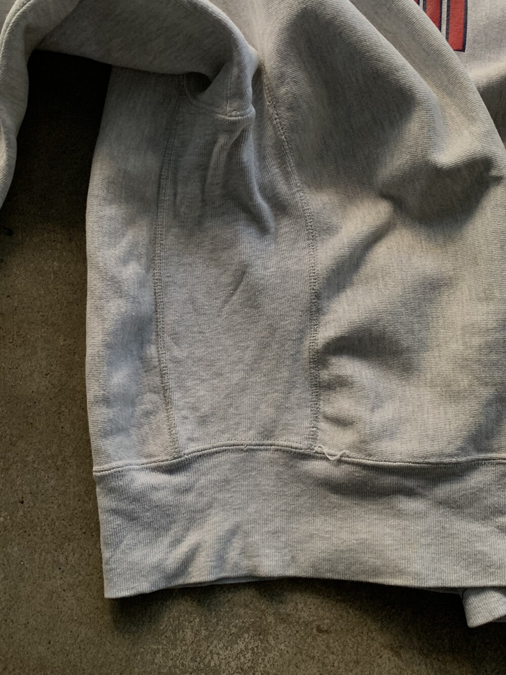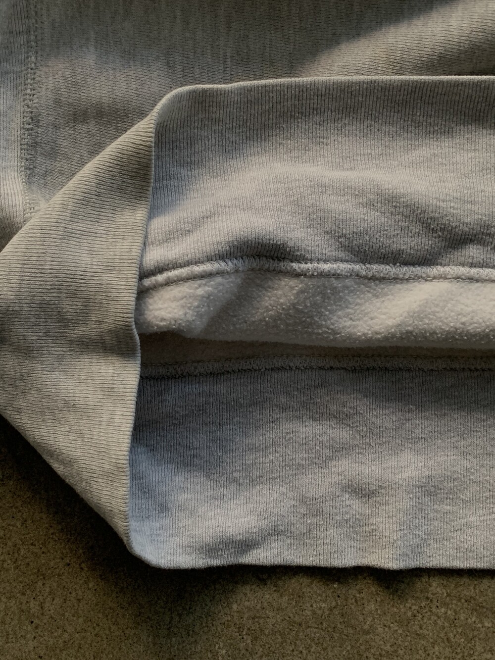 🚩Detail 몸판 원단 결이 가로방향을 향하도록 원단 재단방향을 90도로 돌려 재단하는 호리즌탈 위브 타입 중에서도 가장 대표적인 메이커 챔피온의 1980년대 생산한 리버스위브 스웻셔츠입니다.