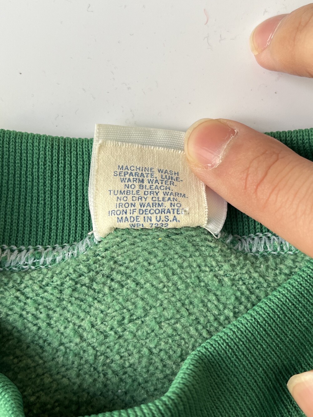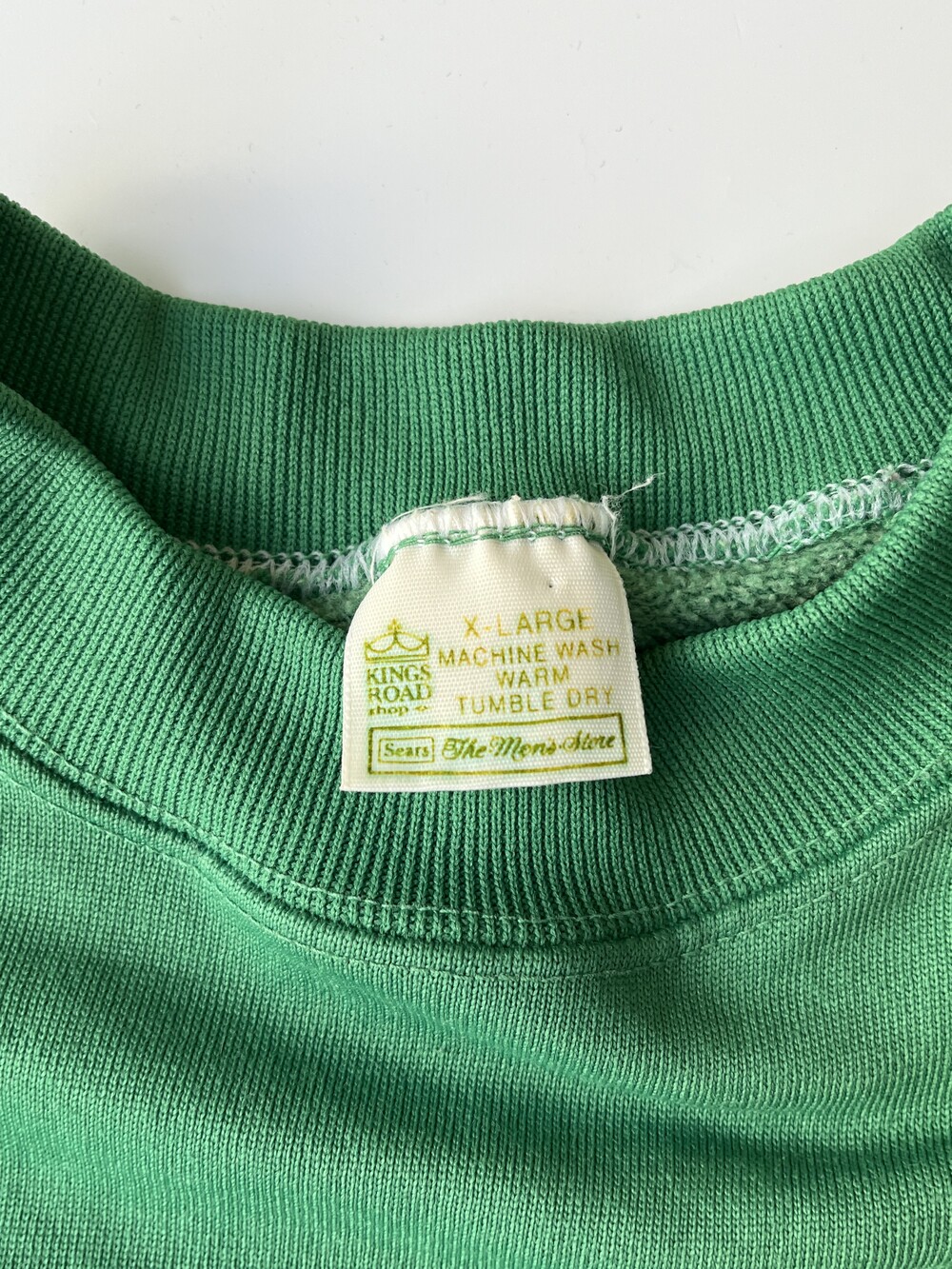 코튼/폴리 혼방 원단 중에서도 폴리에스테르 비중이 높아 전반적으로 은은한 광택이 도는, 서드 파티 혹은 스토어 계열 브랜드로 분류할 수 있는 시얼즈(Sears)의 튜블러 스웻셔츠입니다.