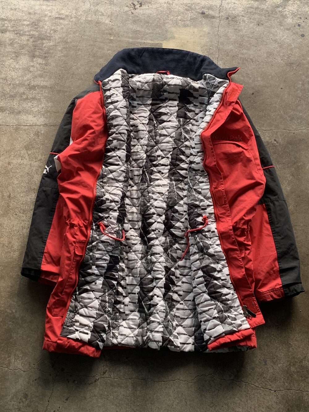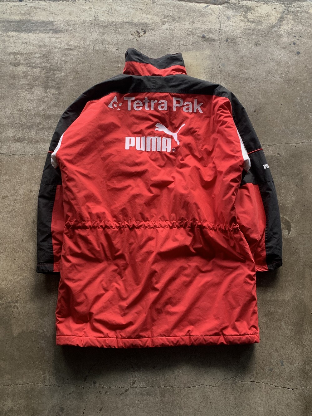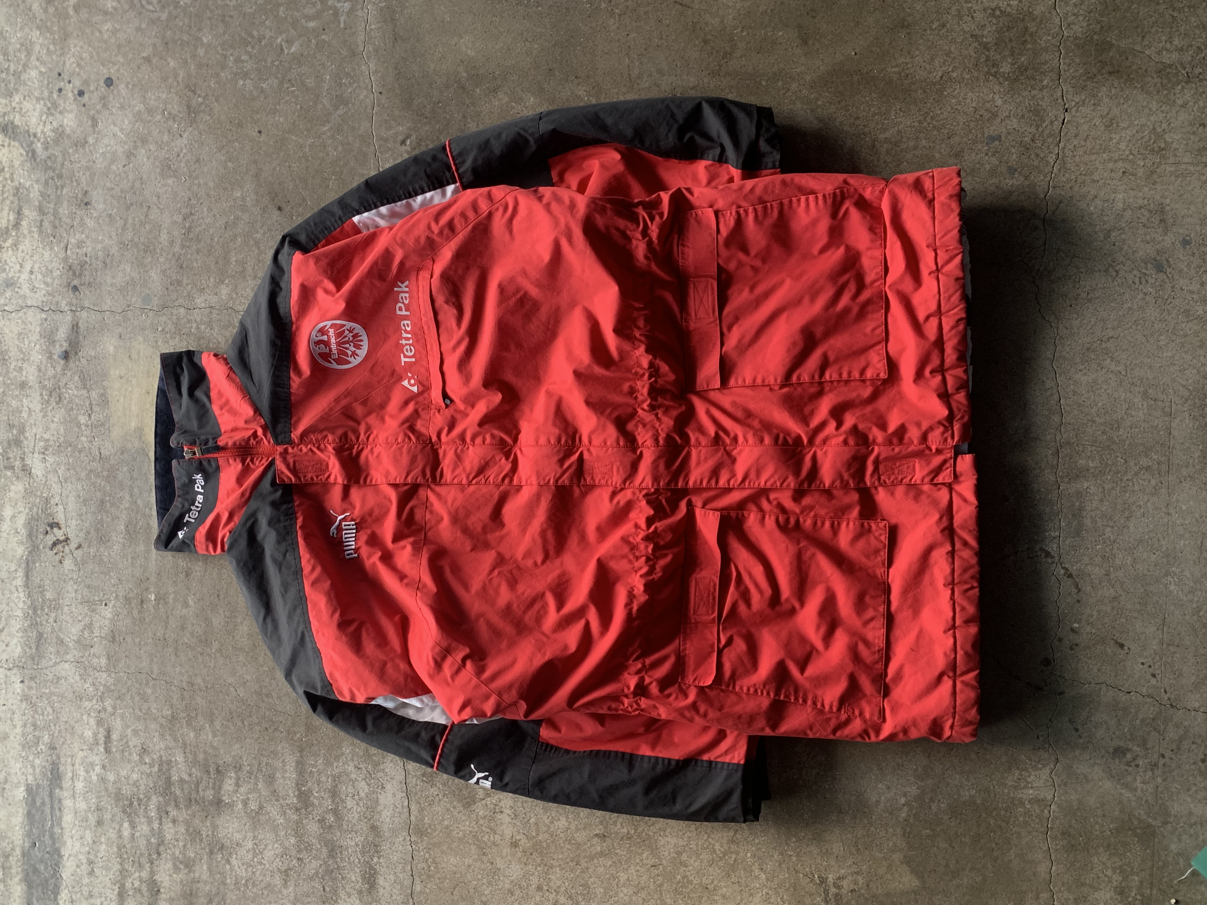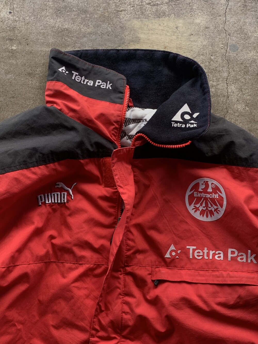 🚩Detail 독일 프로 축구 1부 리그 분데스리가 소속 아인트라흐트 프랑크푸르트 팀웨어 중 하나로, 동계에 벤치에서 대기하는 선수단 및 코치진을 위해 지급되었던 벤치 파카. 정확한 연식을 파악할 수 없으나 1993년부터 1996년까지 메인스폰서 테트라 파크를 채택했던 시즌 중에서도 1995/96 시즌 제품으로 추정됩니다. 가벼운 무게와 긴 기장감으로 보온보다는 방풍에 초점을 둔 제품으로, 적당한 레이어드를 수반하면 따뜻하게 착용할 수 있을만한 제품입니다.