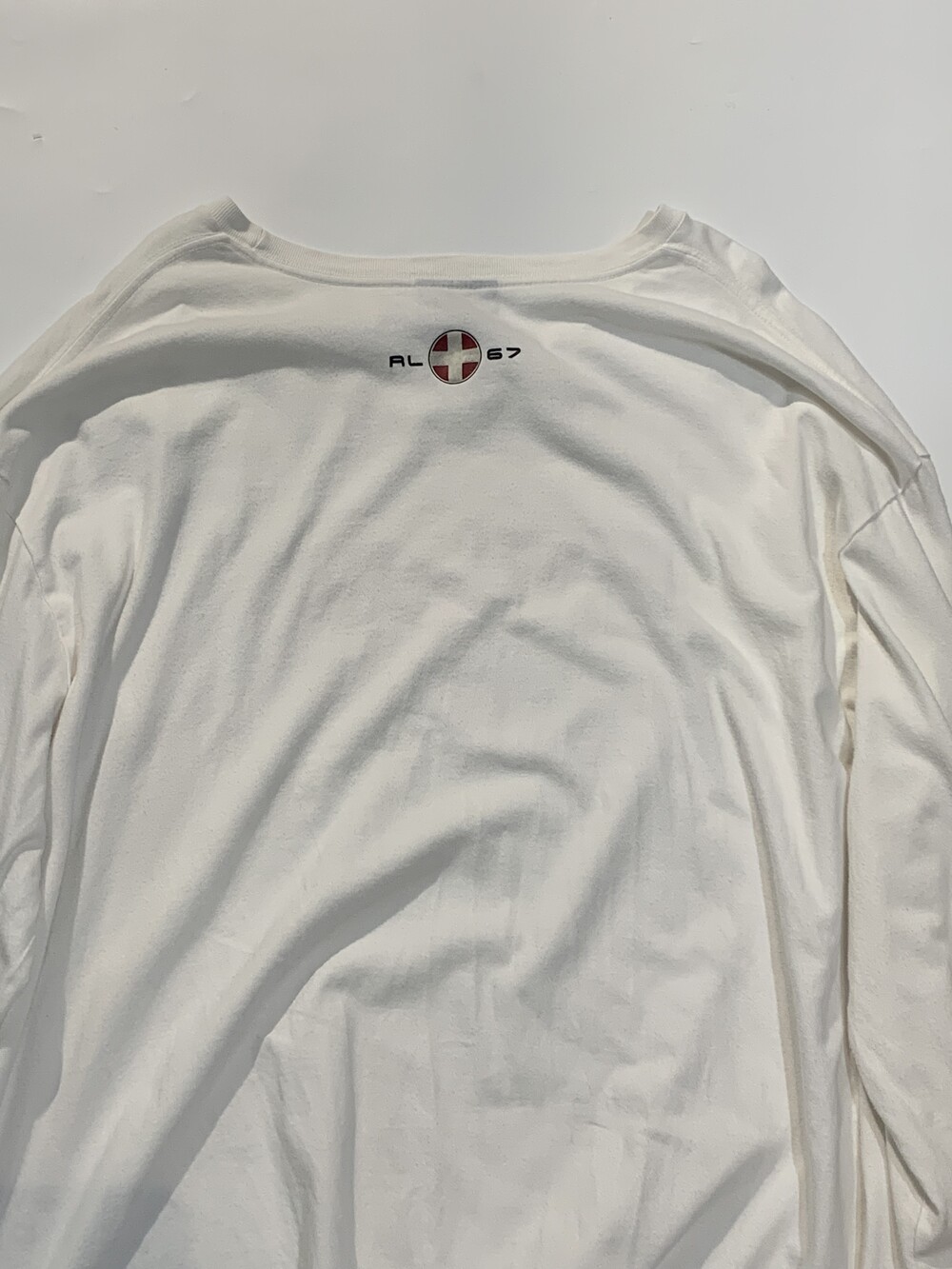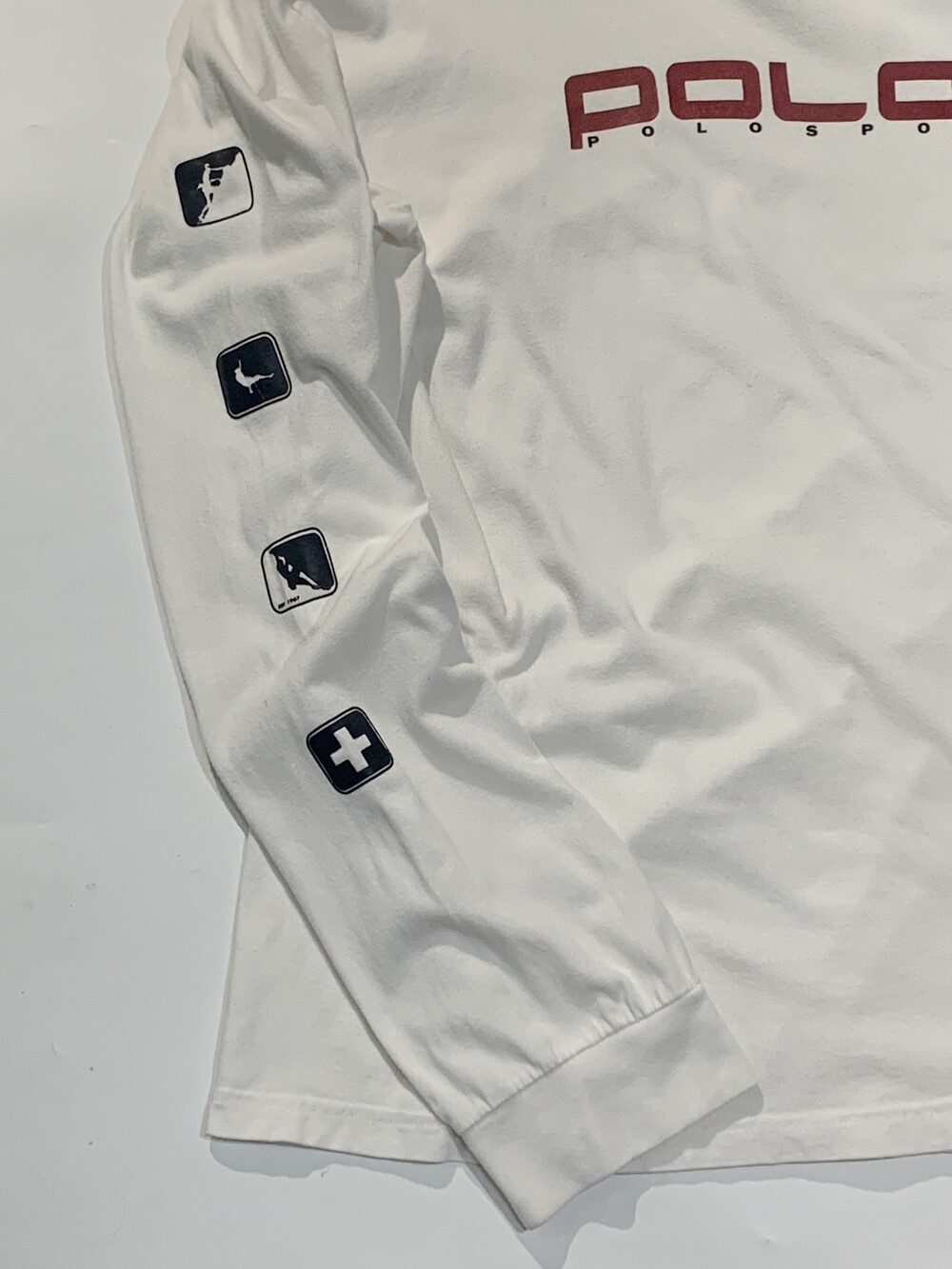 폴로 스포츠와 RL67 로고가 전후면에, 클라이밍 픽토그램이 소매를 따라 배치된 프린팅이 돋보이는 롱슬리브 티셔츠. 넥라인이 가로로 넓고 소매 립 너비가 넓은 유형의 티셔츠로 과하지 않게 오버사이징하여 루즈하게 착용하기 좋을만한 제품입니다.
