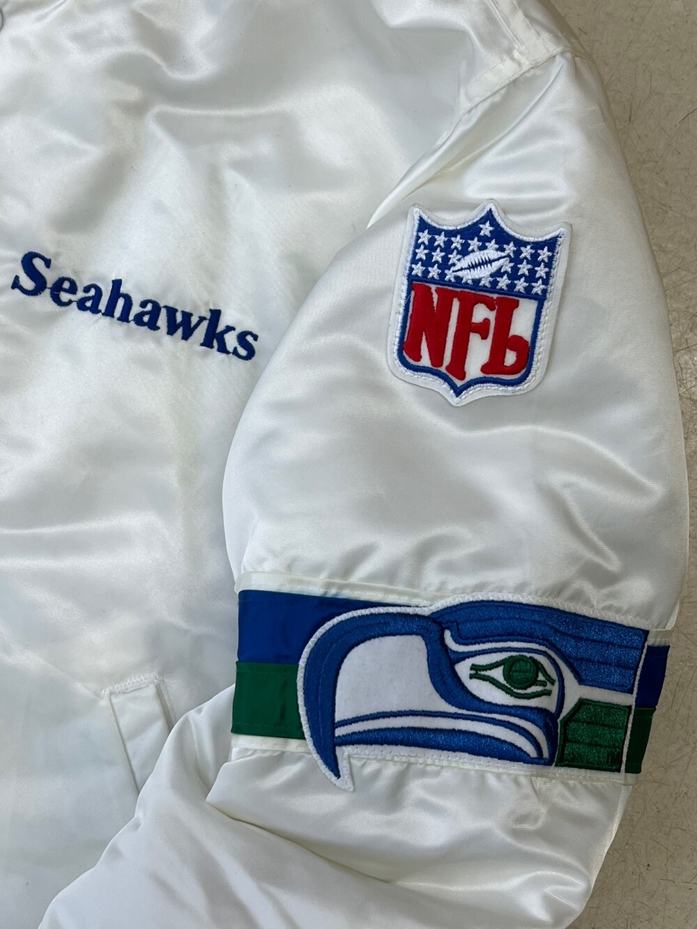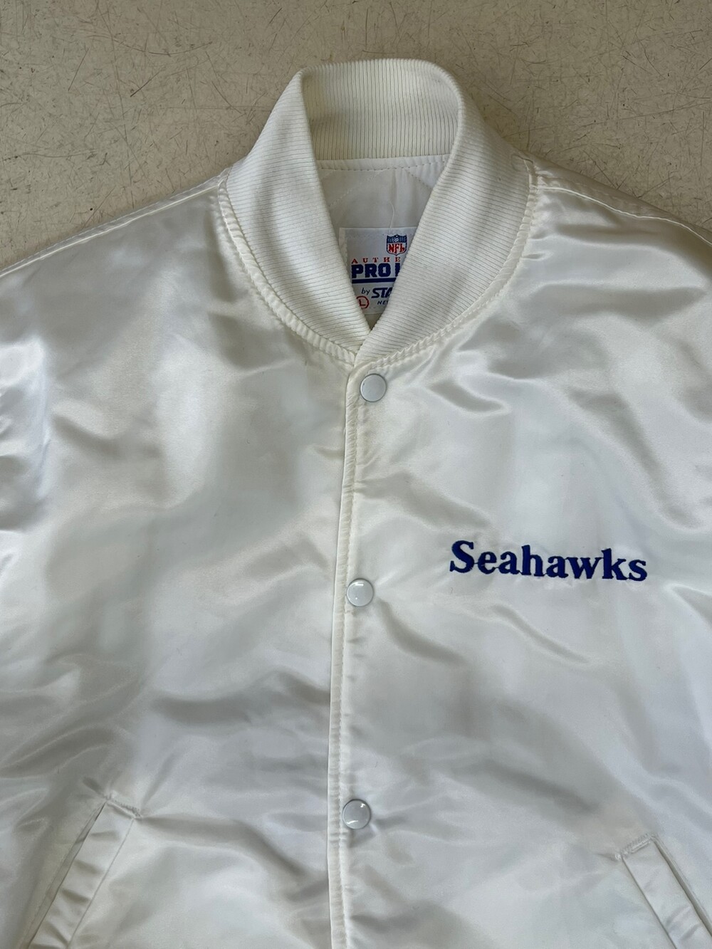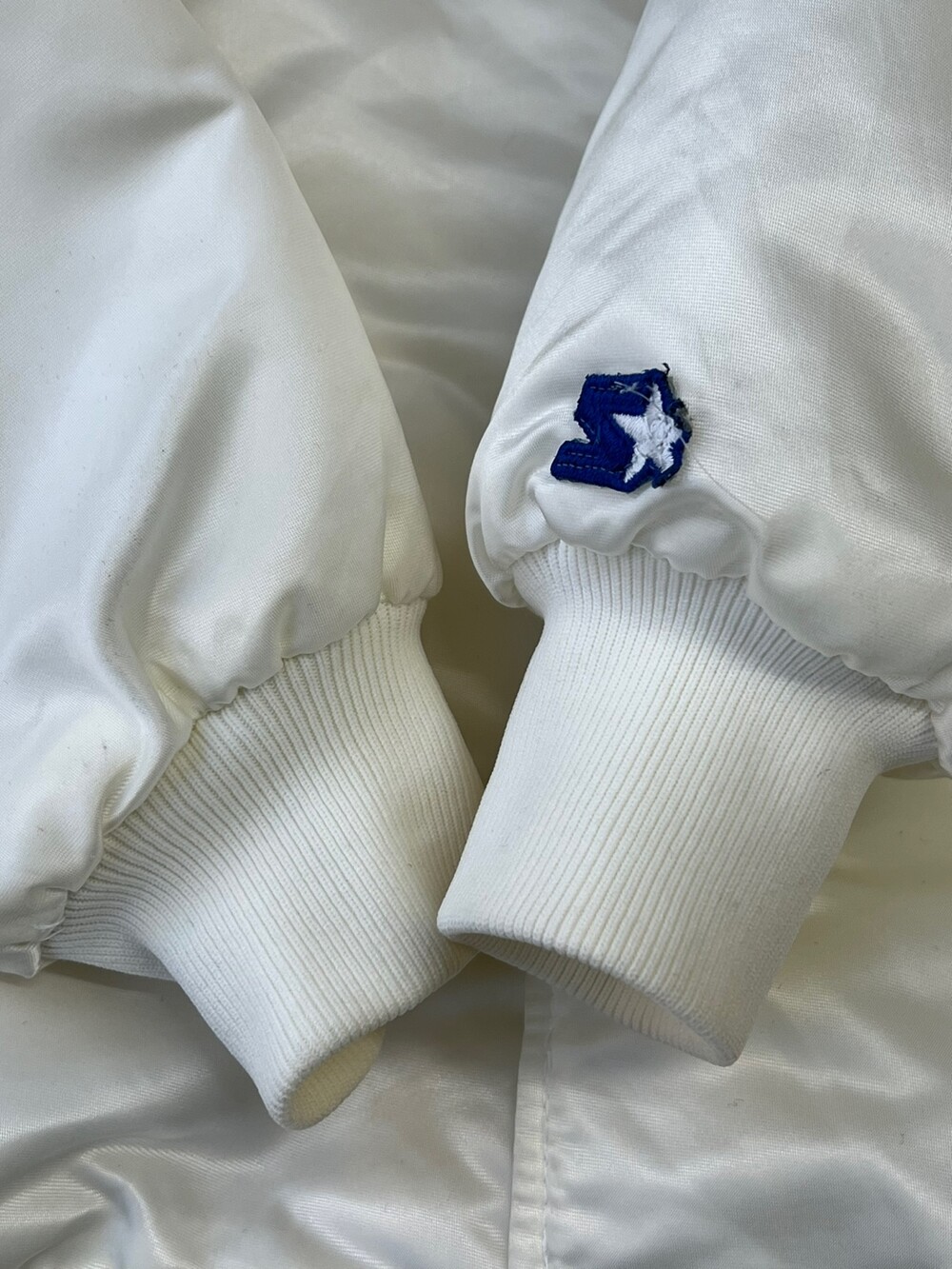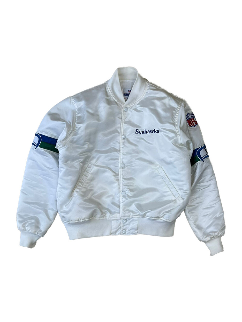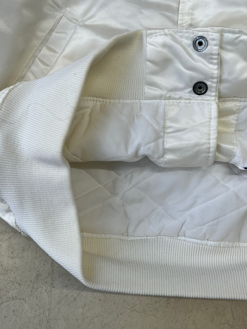 🚩Detail 고밀도 나일론 특유의 매끄러운 질감, 타이트한 립, 그리고 각 구단을 대표하는 배색이 들어가는 팀 자켓, 혹은 스타디움 자켓으로 부르는 품목입니다. 미국 내 프로레벨 리그인 NFL, NBA, MLB, NHL 등의 리그와 오피셜 라이센스 계약을 맺고 생산했던 시기의 제품으로, 힙합 문화와 결부되어 루즈한 실루엣으로 선보이는 1990년대 중후반에 생산되는 팀자켓에 비해 스포티한 감성이 지배적인 제품입니다.
