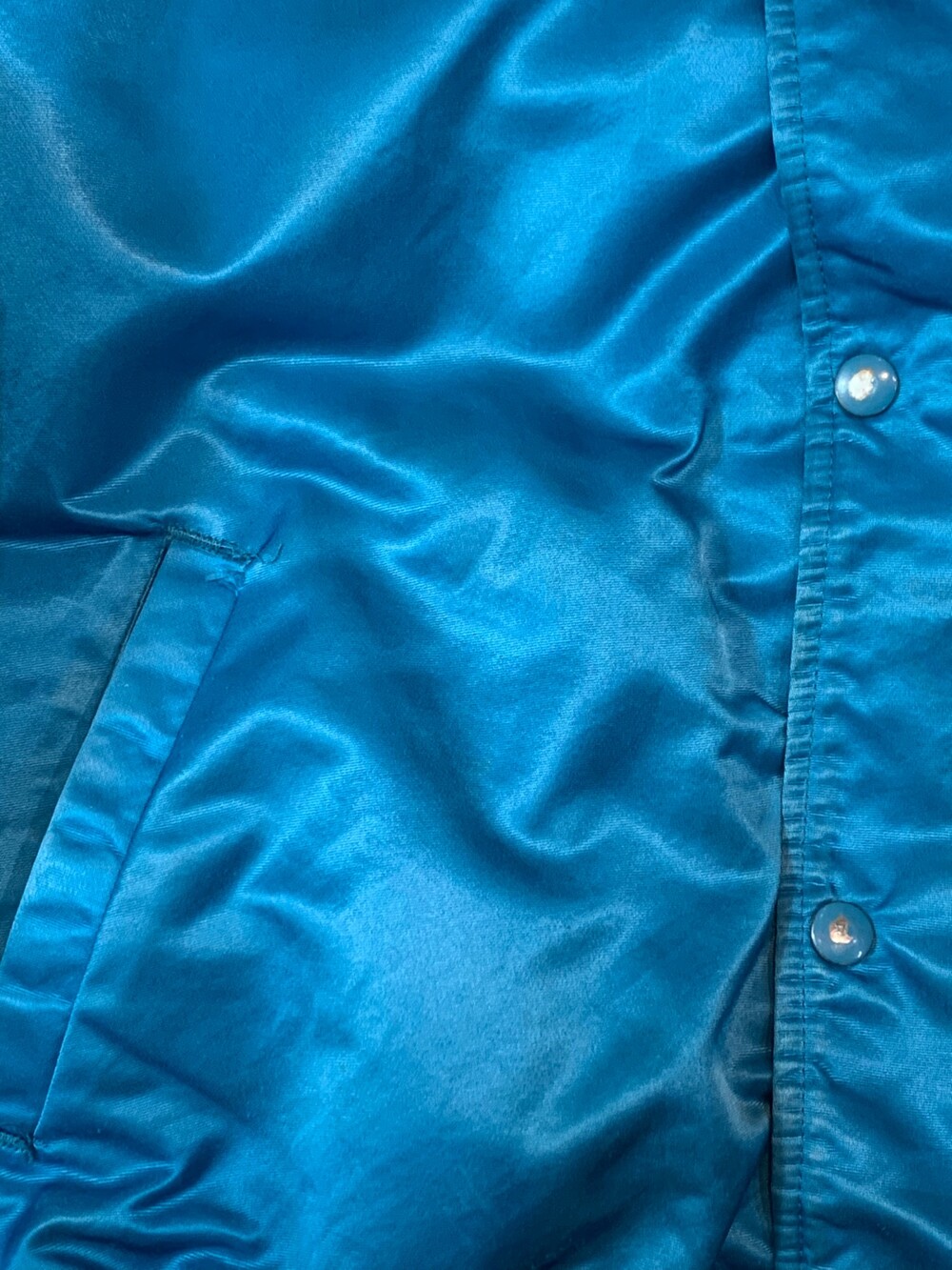🚩Detail 고밀도 나일론 특유의 매끄러운 질감, 타이트한 립, 그리고 각 구단을 대표하는 배색이 들어가는 팀 자켓, 혹은 스타디움 자켓으로 부르는 품목입니다. 미국 내 프로레벨 리그인 NFL, NBA, MLB, NHL 등의 리그와 오피셜 라이센스 계약을 맺고 생산했던 시기의 제품으로, 힙합 문화와 결부되어 루즈한 실루엣으로 선보이는 1990년대 중후반에 생산되는 팀자켓에 비해 상대적으로 핏하면서도 스포티한 감성이 지배적인 제품입니다.