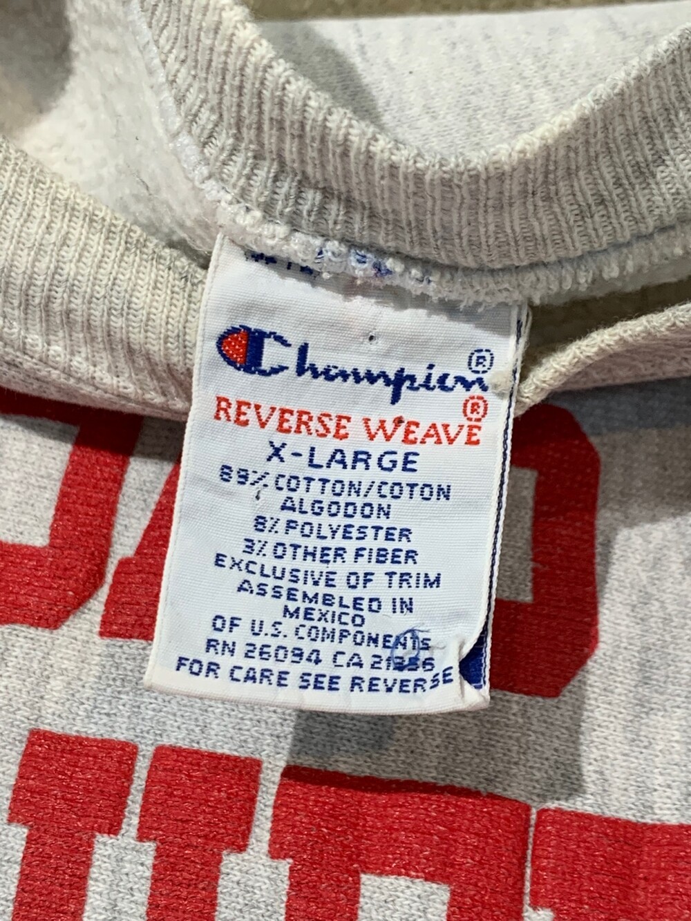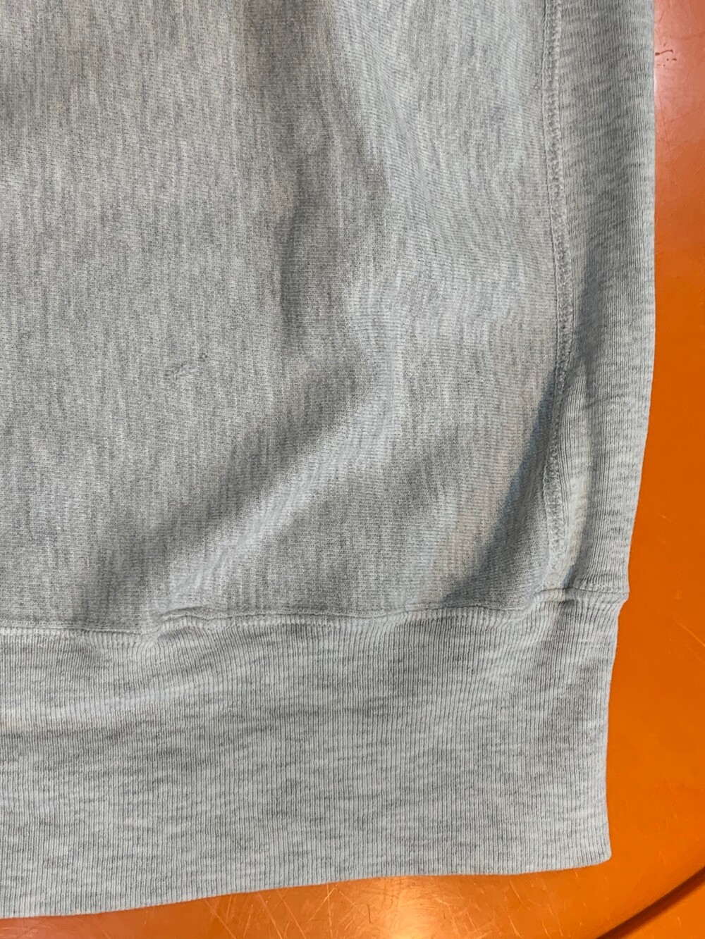 🚩Detail 몸판 원단 결이 가로방향을 향하도록 원단 재단방향을 90도로 돌려 재단하는 호리즌탈 위브 타입 중에서도 가장 대표적인 메이커인 챔피온의 리버스위브 스웻셔츠입니다. 1996년 미국 4대 프로스포츠 리그와 챔피온이 라이센스 계약을 맺고 출시했던 제품 중 하나로, 미국 프로미식축구 구단 캔자스시티 치프스 워드마크 프린팅이 올려져 있습니다.