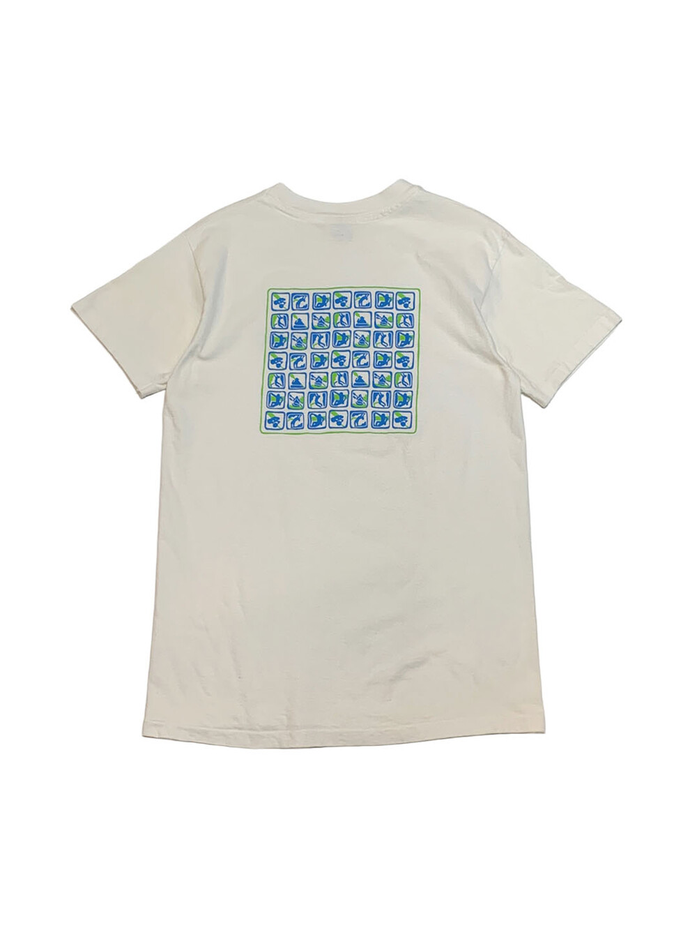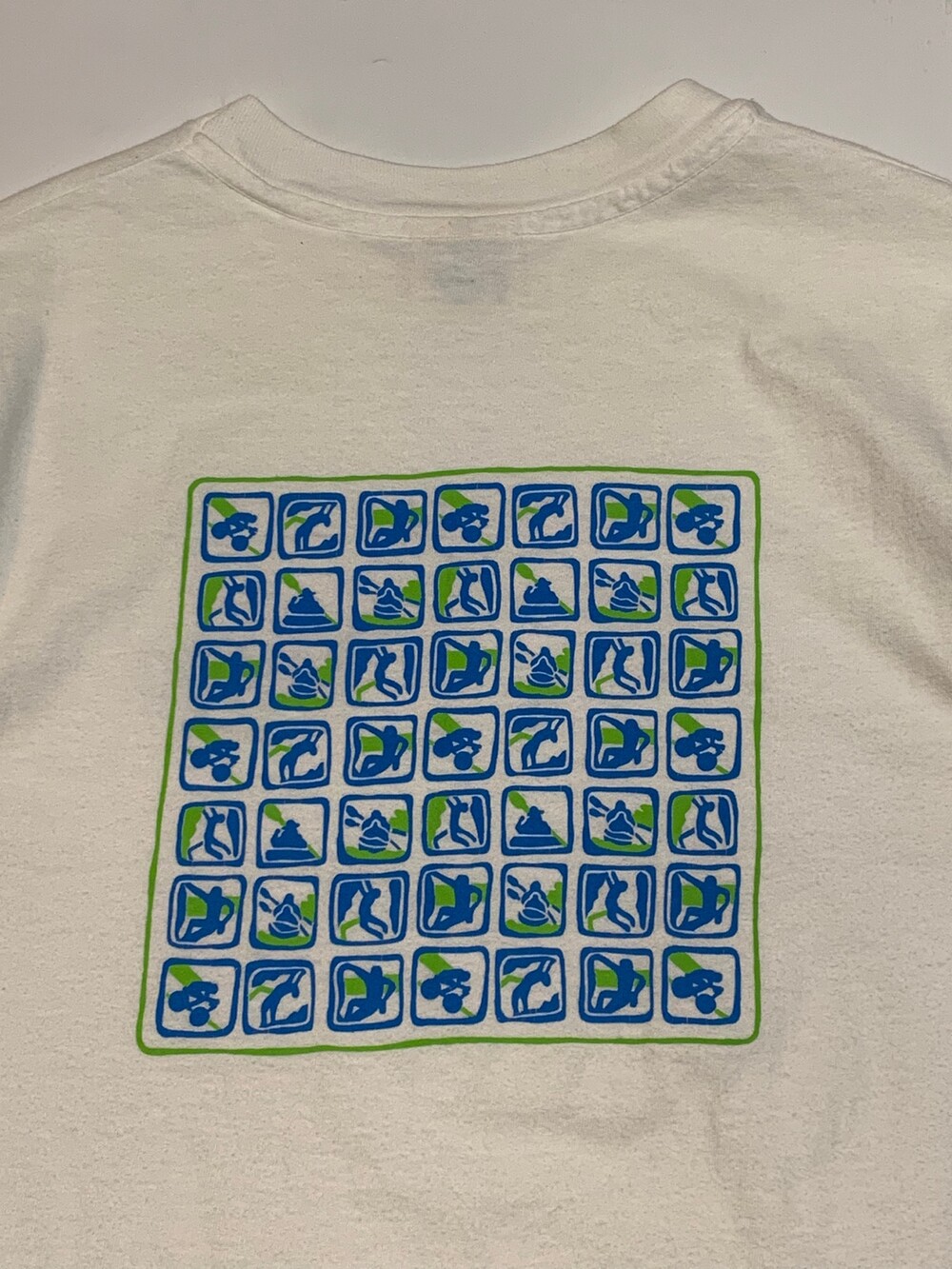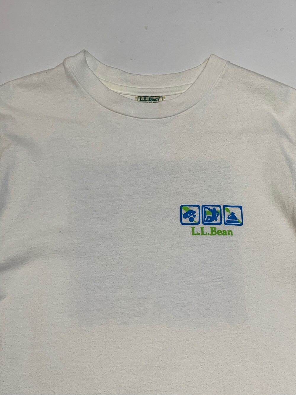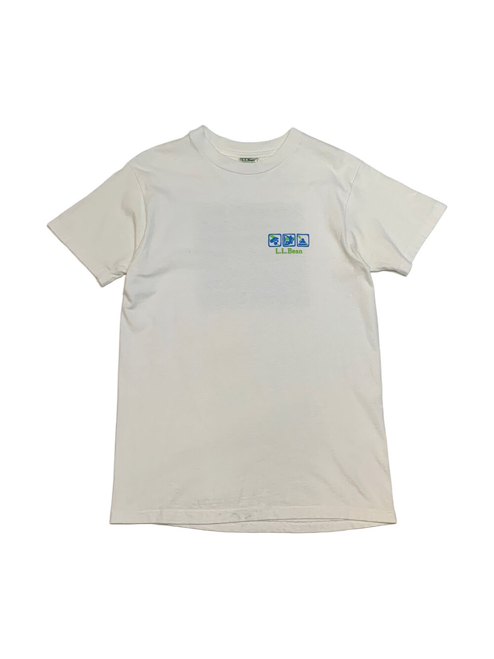엘엘빈에서 스포츠웨어 브랜드에 발주를 넣어 티셔츠나 스웻셔츠 등의 품목들을 선보이던 시절의 헤인즈 티셔츠. 아웃도어 액티비티를 픽토그램 형태로 표현한 그래픽이 전후면에 프린팅되어 있어 캐주얼하게 활용하기 좋을만한 제품입니다.