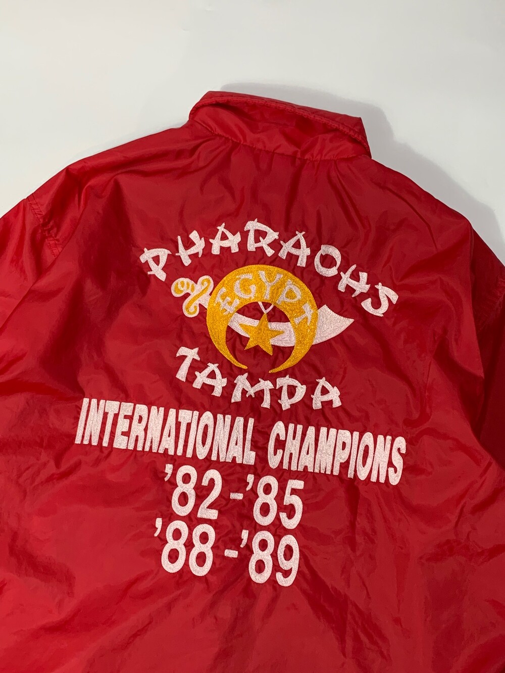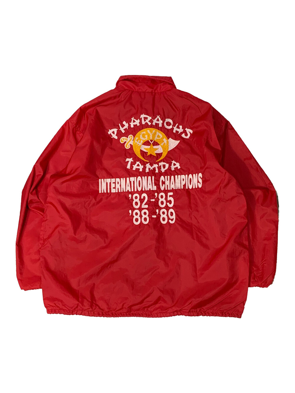 미국의 프리메이슨 협회 중 하나로 플로리다 주 템파베이에 본사를 둔 이집트 슈라이너스(EGYPT SHRINERS)와 관계가 있을 것으로 보이는 바시티 팀 템파 파라오스 체인스티치 자수가 놓인 코치 자켓. 넉넉한 사이즈와 전후면 체인스티치 자수 덕분에 캐주얼하게 활용하기 좋을만한 제품.