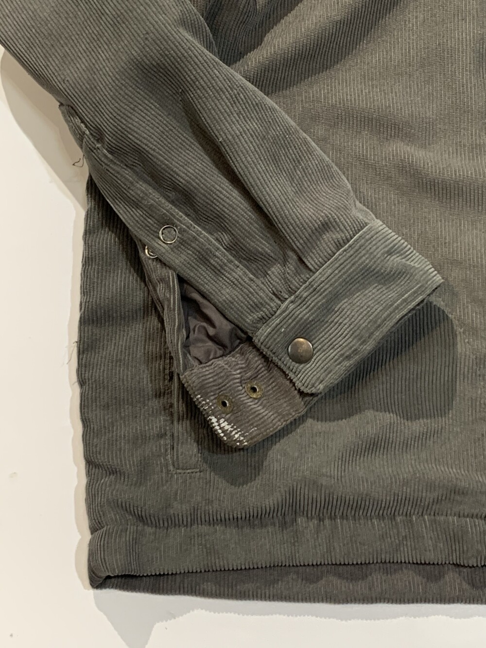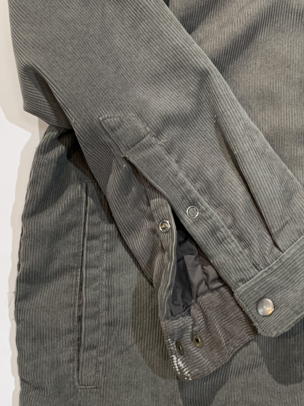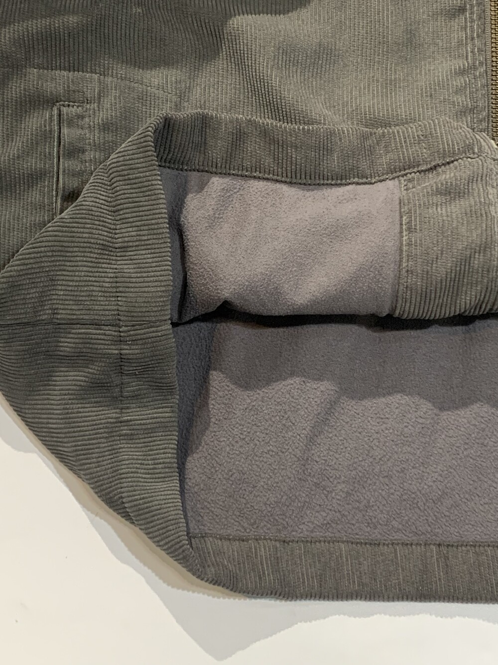 🚩Detail 얼핏 보기에는 풀집 타입의 셔츠이나 코듀로이 겉감에 플리스 라이닝이 몸판에, 얇은 충전재가 소매 안쪽에 붙어 셔츠라고 하기에는 두께감이 있으면서도 하단 포켓 배치로 미루어 자켓으로 취급해도 부족하지 않을 정도입니다. 그래서인지 워크웨어나 아웃웨어 장르의 워크자켓 중 한 종류인 렌치 자켓이라는 이름이 붙은 제품이기도 합니다.