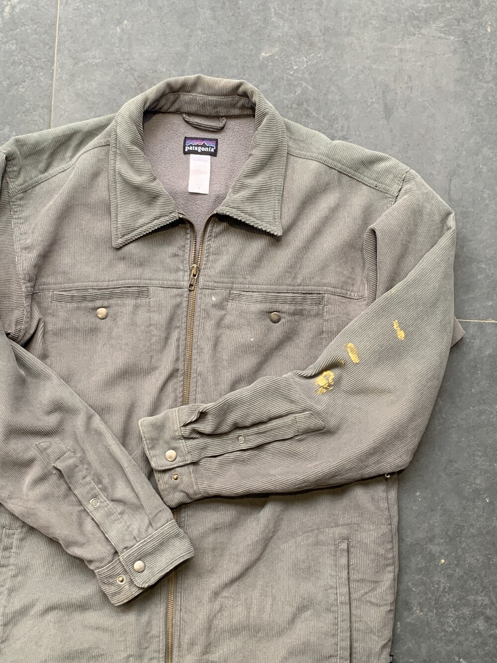 곳곳에 얼룩덜룩한 색감의 페이딩 흔적과 자잘한 데미지, 그리고 소매에 페인트가 올려진 사용감이 이전 착용자가 어떻게 입었는지는 짐작케합니다. 이너로 입기에는 두께감이 있다보니 간절기에는 단독으로 착용하거아 미들레이어 아우터로 활용하고 동계에는 다운베스트를 레이어드하여 보온성을 더해도 좋겠습니다. 상의 100호에서 105호 사이로 착용하는 분들에게 권장드립니다.