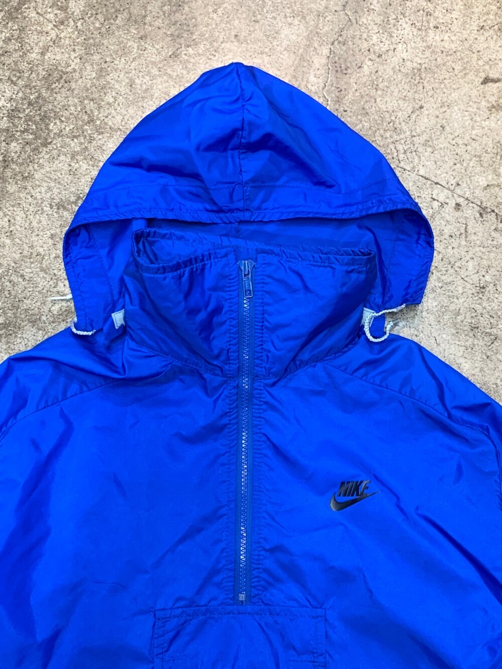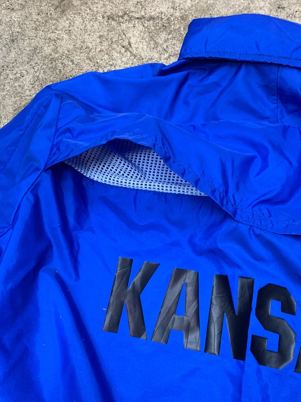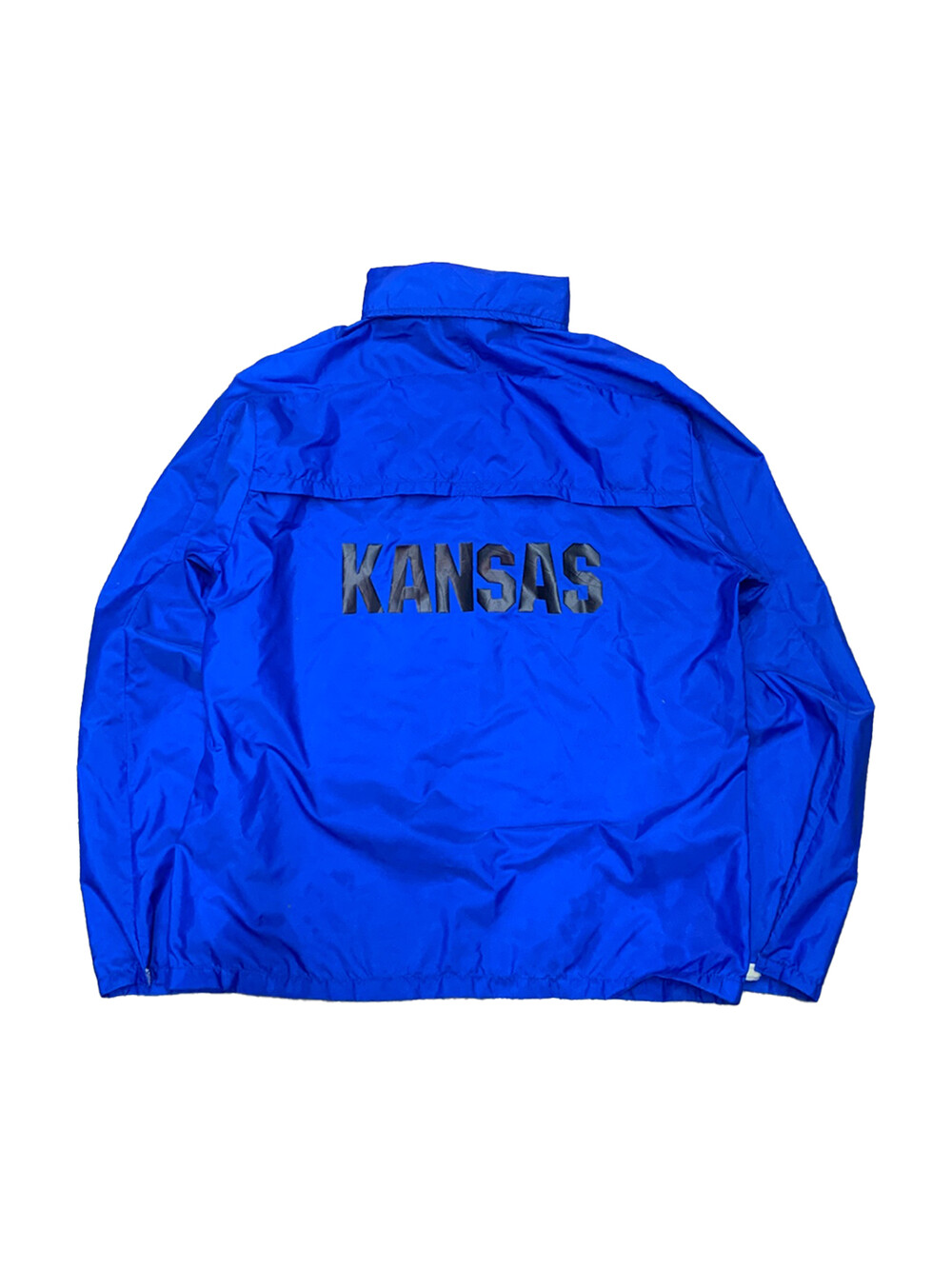 🚩Details 전면 쿼터집과 벨크로로 열고 닫는 포켓, 그리고 후면 통풍용 패널이 적용된 고전적인 형태의 나이키 나일론 풀오버. 전면은 나이키 로고, 후면은 캔자스(KANSAS) 프린팅이 올려져있어 중고등학교 혹은 대학교 바시티 팀에 지급되었던 풀오버타입 윈드브레이커로 추정됩니다. 밑단은 별도의 스토퍼가 없으나 폭이 좁으며, 후드 스트링, 전면 지퍼, 소매 벨크로 등 방풍용 디테일을 갖추고 있어 현 시점에도 충분히 윈드브레이커로 활용할 수 있을만한 제품입니다.