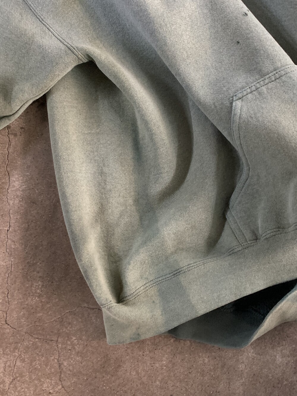 🚩Detail 몸판 옆 부분, 밑단 립(Rib) 부분에 봉제선이 없는 형태를 원통형 관 모양이라는 의미의 튜블러(Tubular) 라고 합니다. 튜블러 타입 스웻셔츠 중에서도 1990년대 중반 즈음부터 러셀 애슬레틱 스웻셔츠를 표준으로 삼아 비슷하게 벌키한 실루엣의 제품을 선보였던 메이커 중 하나인 디스커스 애슬레틱의 스웻후디입니다.