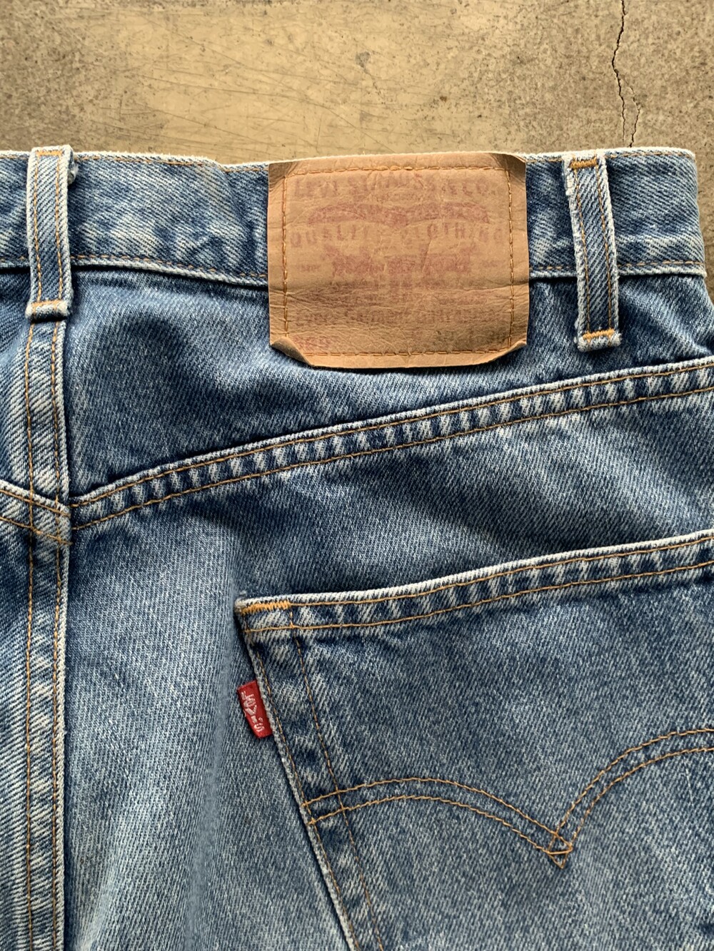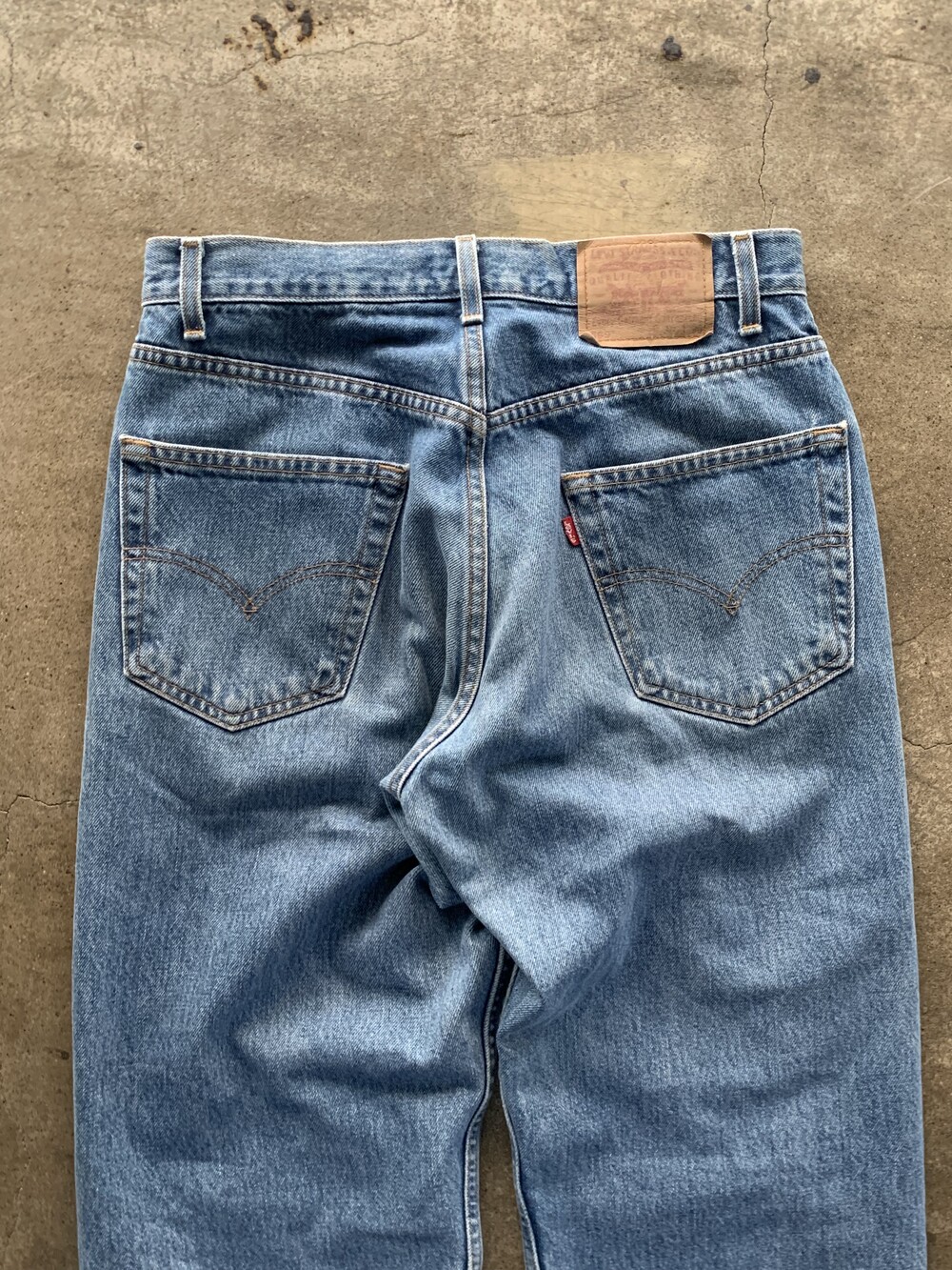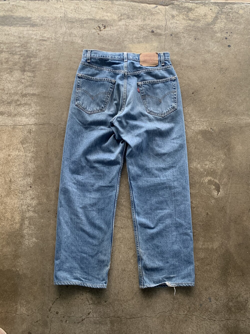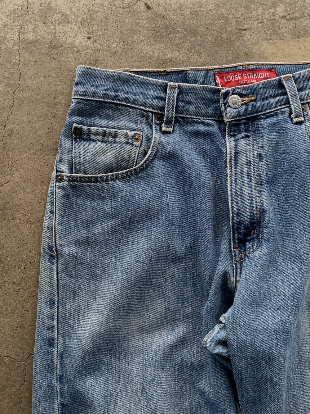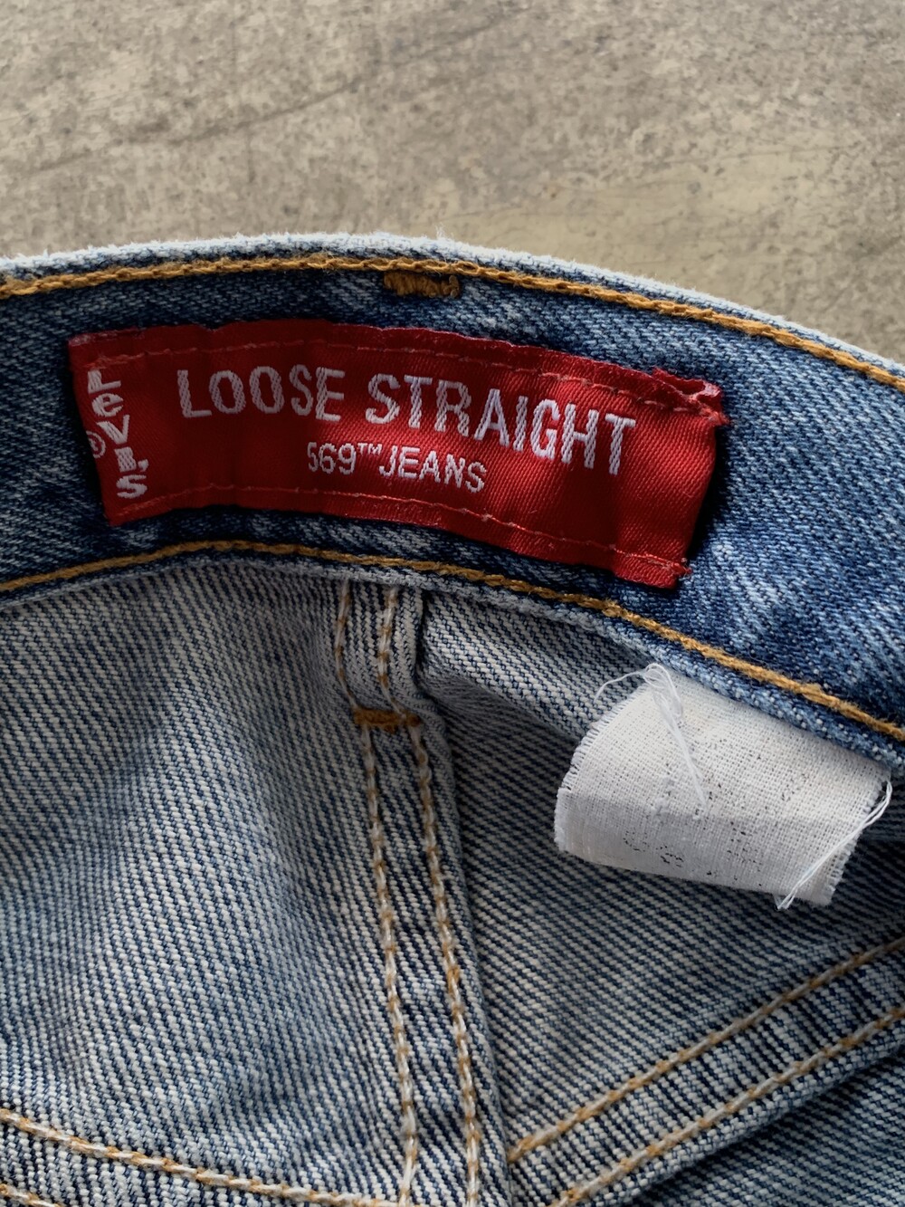 1990년대 후반에서 2000년대 초반 사이 멕시코 생산으로 추정되는 리바이스 569 데님팬츠. 루즈 스트레이트라는 핏 설명 그대로, 밑위나 허벅지가 비교적 여유롭고 밑단 테이퍼드가 가파르지 않아 루즈하게 착용할 수 있을만한 제품입니다.