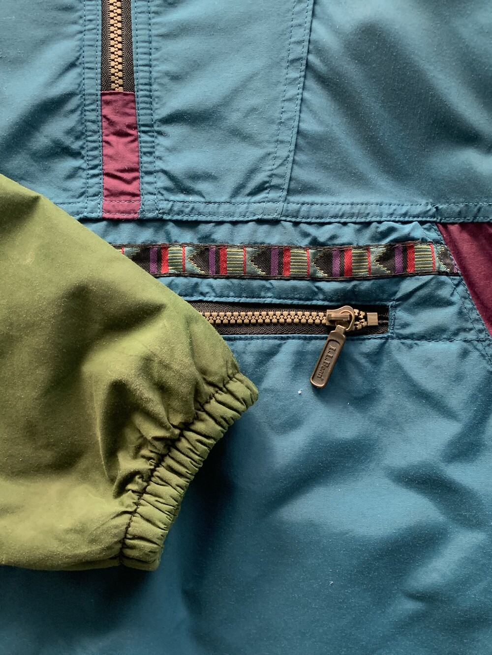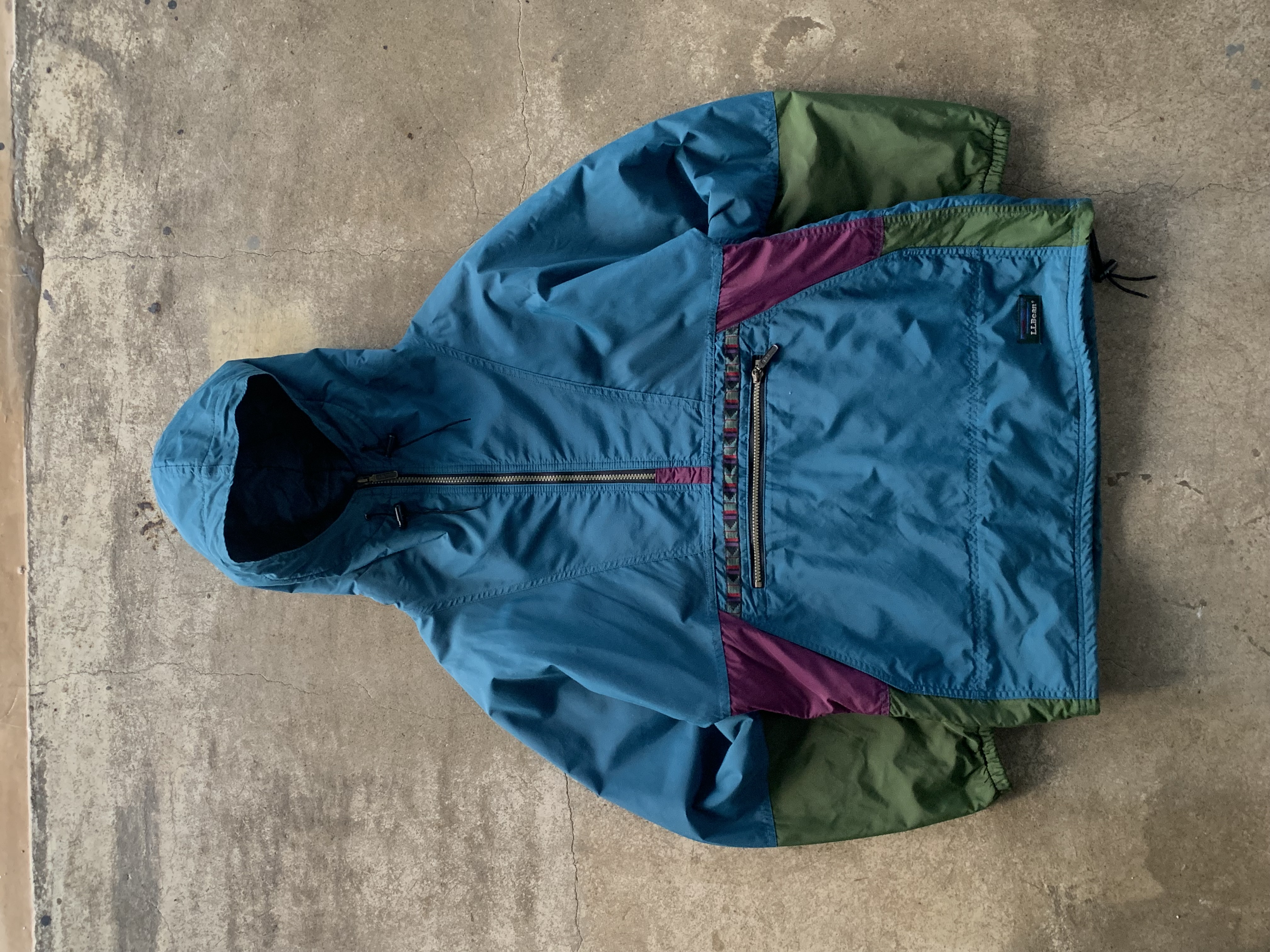 빈티지 아웃도어웨어에서 기대할 수 있을만한 컬러블록과 배색조합이 돋보이는 엘엘빈의 티롤리안 아노락. 3M 신슐레이트 충전재가 몸판과 소매 뿐만아니라 후드까지 주입된 버전으로, 일반 나일론 아웃쉘로만 구성된 제품에 비해 미약하게나마 보온성이 좋은 제품입니다.