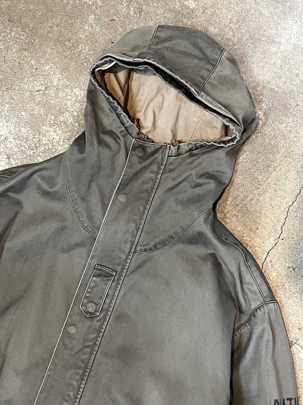 프랑스군 F2 파카를 모티브로 만든 올드 노티카의 밀리터리 파카입니다. 오리지널보다도 미니멀하게 보이고자 겉으로 보이는 스트링이나 소매 포켓, 전면 벨트로 등을 생략하거나 변형하여 올드 노티카답지 않은 독특한 미감을 보이는 제품입니다.