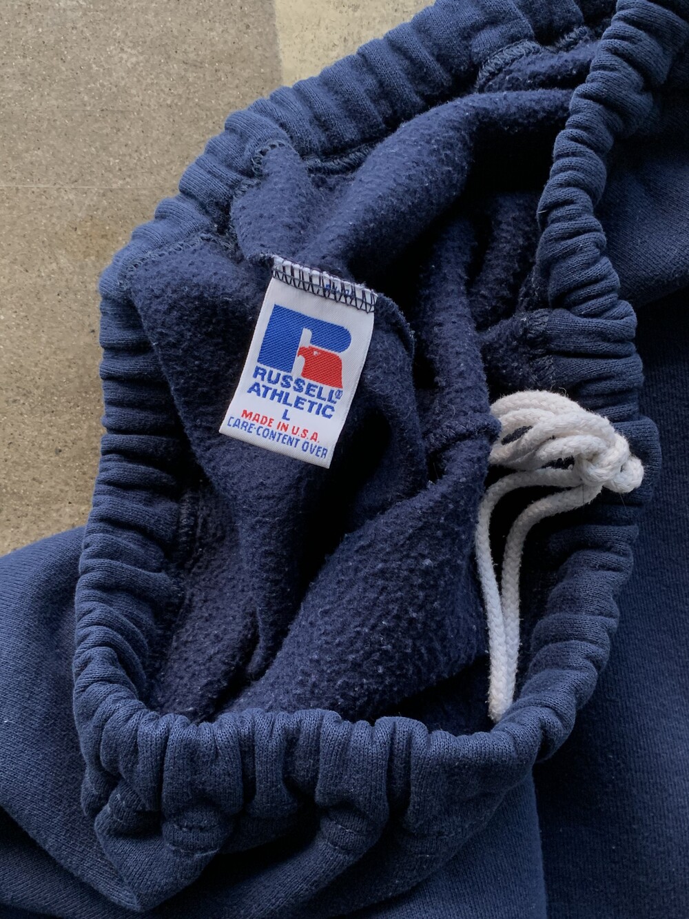 🚩Detail 아웃심 부분 봉제선이 없어 스웻팬츠 특유의 무릎 부분 원단이 착용 간 늘어나더라도 이질감 없이 벌어지는 러셀 애슬레틱의 스웻팬츠. 스웻셔츠와 마찬가지로 도톰한 원단감과 벌키한 실루엣이 돋보이는 제품으로, 정사이즈로 착용하기보다는 여유롭게 착용하기를 권장드립니다.