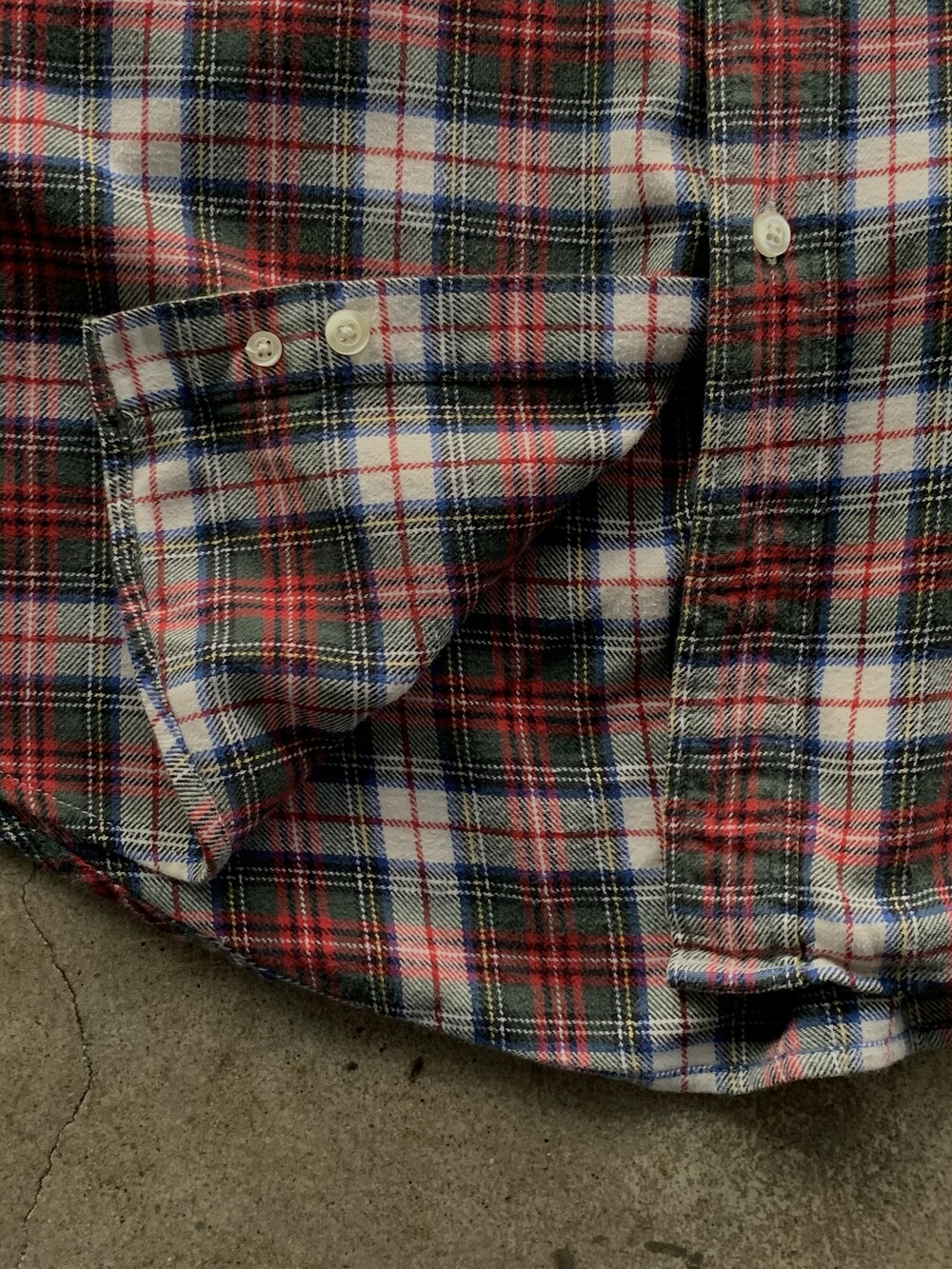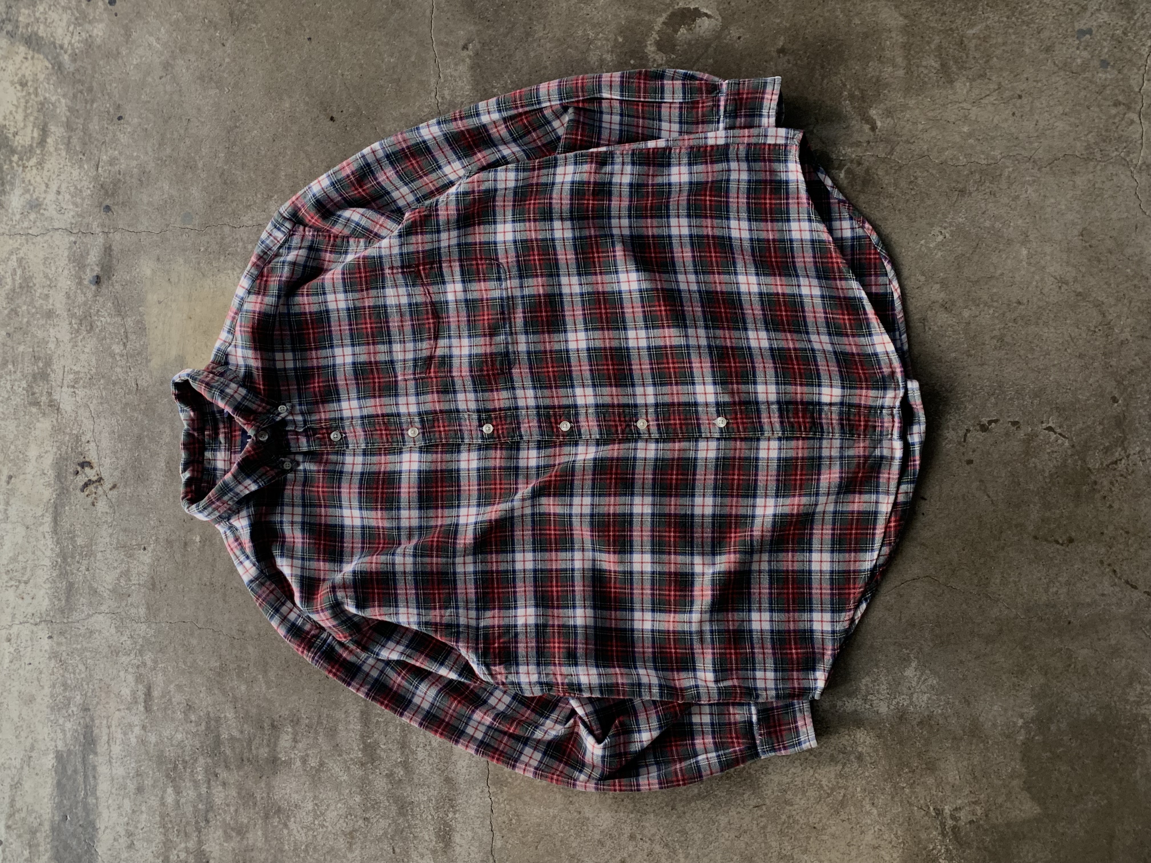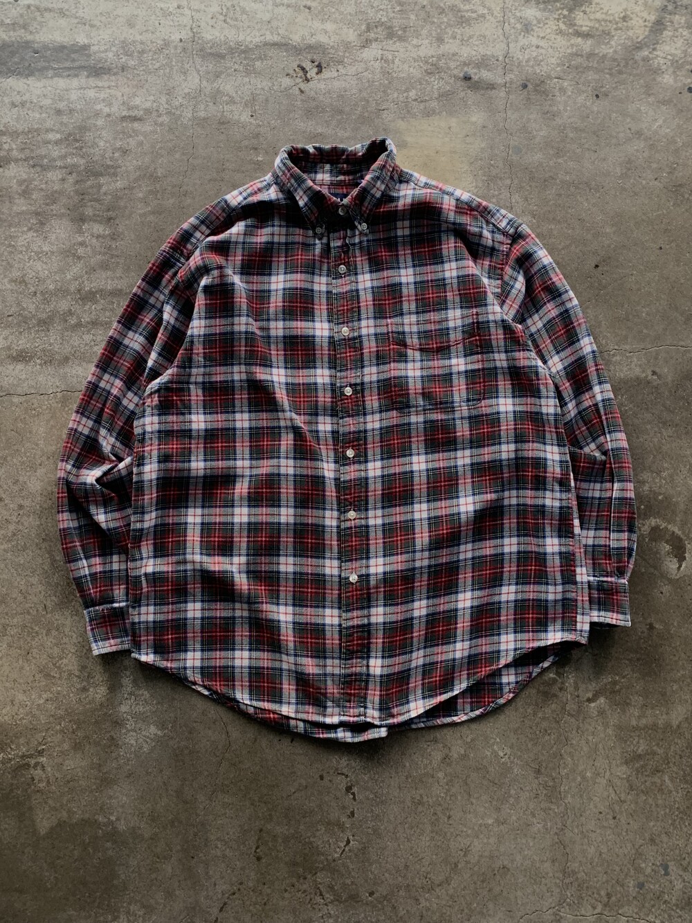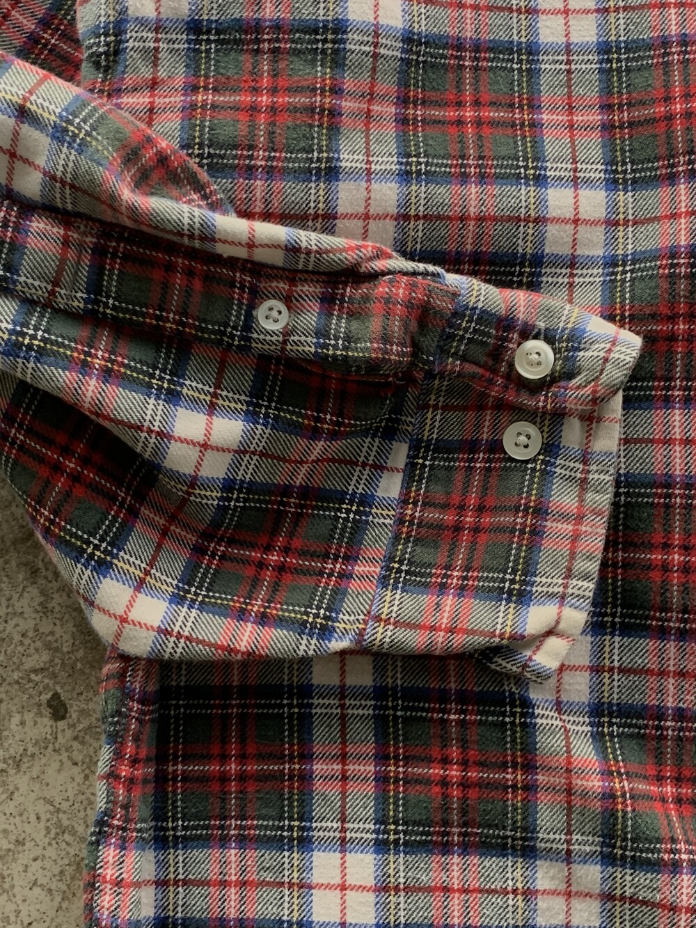 1990년도에서 2000년도 초반 사이에 생산된 것으로 추정되는 올드 갭의 플란넬 버튼다운 셔츠. 다양한 배색의 체크 패턴과 겉면에 살짝 기모가 올라오는 터치감의 코튼 원단이 잘 어울리는 제품입니다. 넥밴드가 낮고 칼라가 길지 않은 버튼다운 셔츠로 캐주얼하게 활용하기 좋을만한 제품입니다.