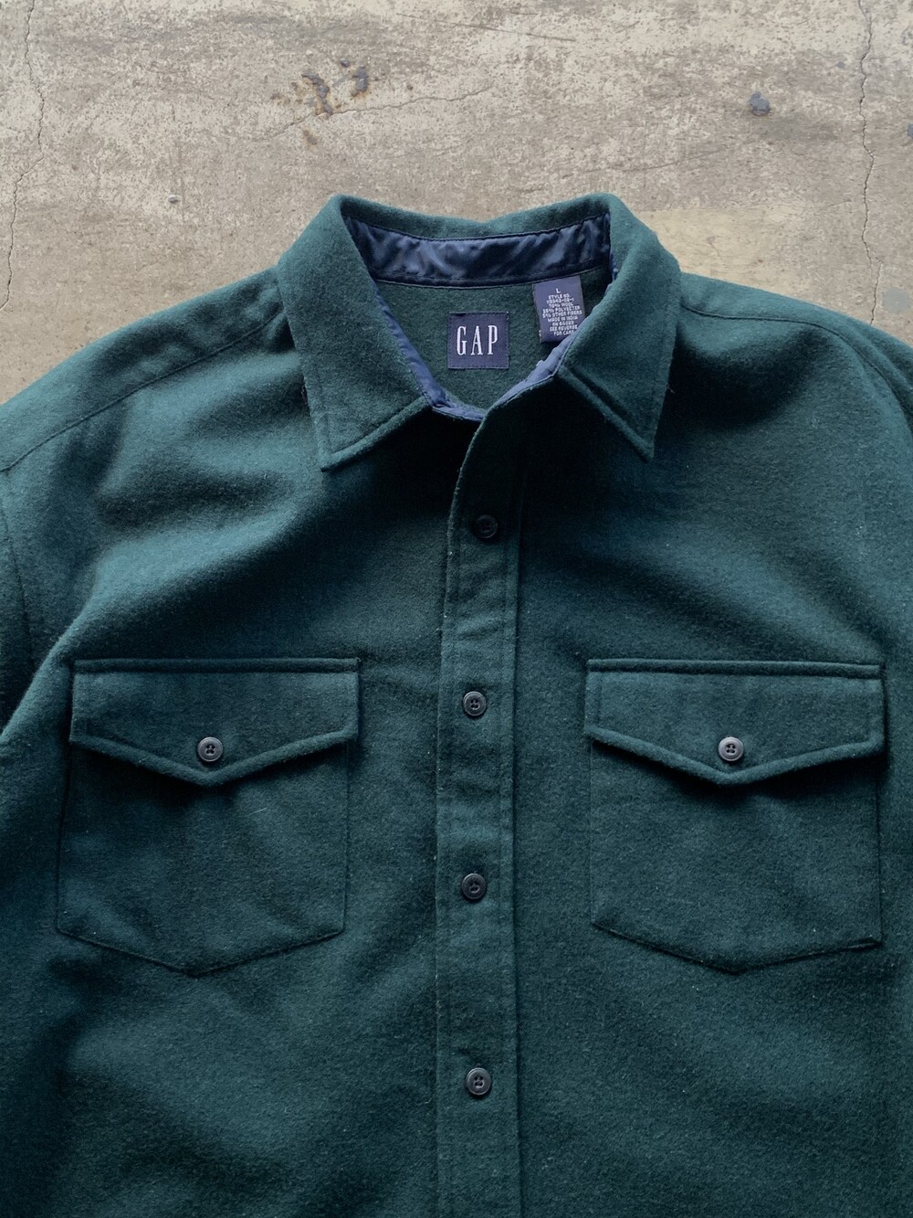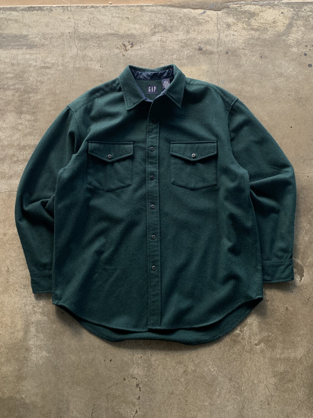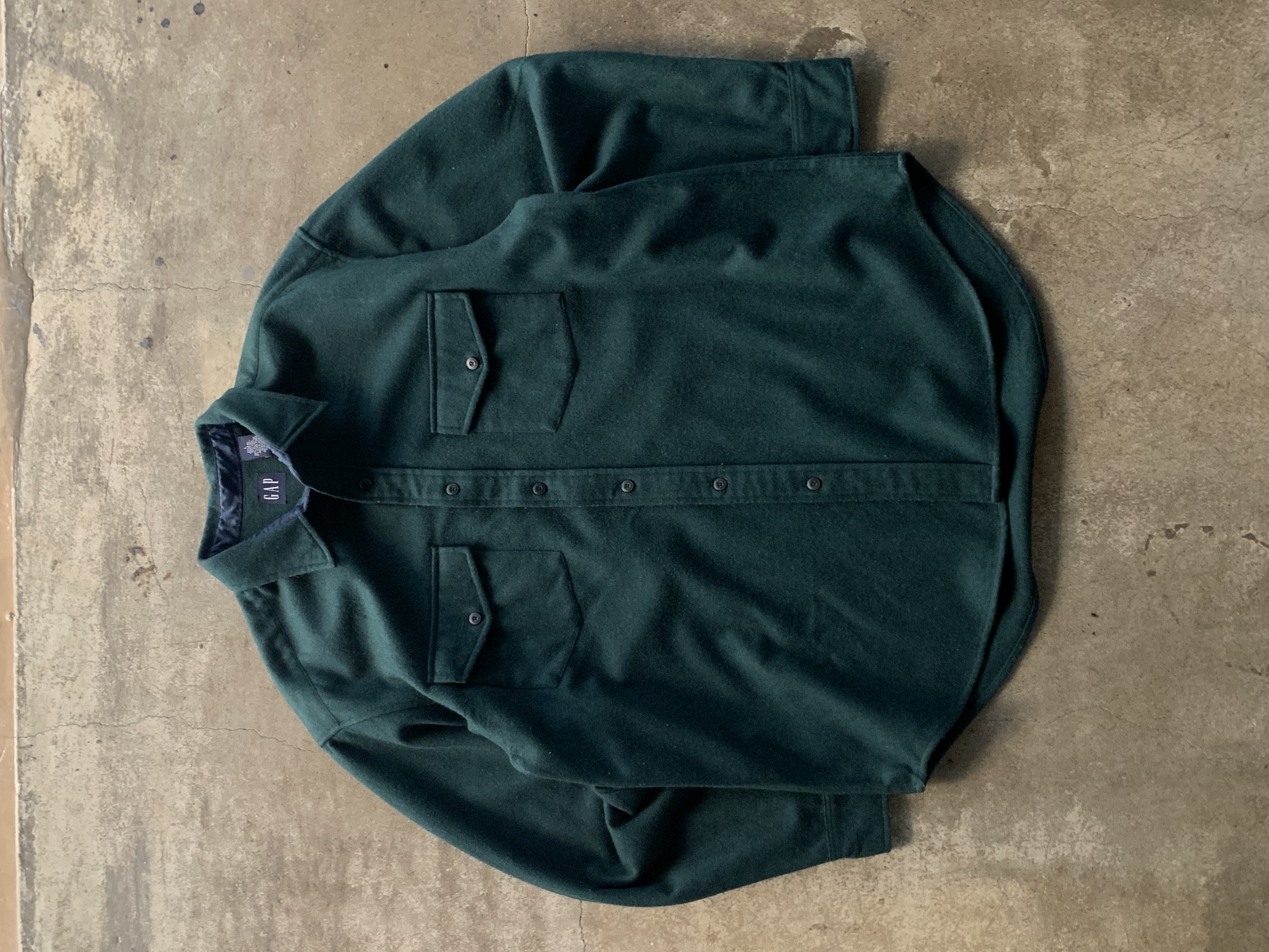 멜톤 울 타입 원단과 전면 두 개의 포켓 그리고 넥라인이나 소매 등 마찰이 잦을만한 부위에 원단에 쓸리지 않게끔 원단을 덧댄, CPO 셔츠를 연상케하는 올드 갭 울/폴리 셔츠. 오래된 군납용이나 민수용 CPO 셔츠에 비해 여유로운 사이즈로 훨씬 캐주얼한 성격이 제품입니다.