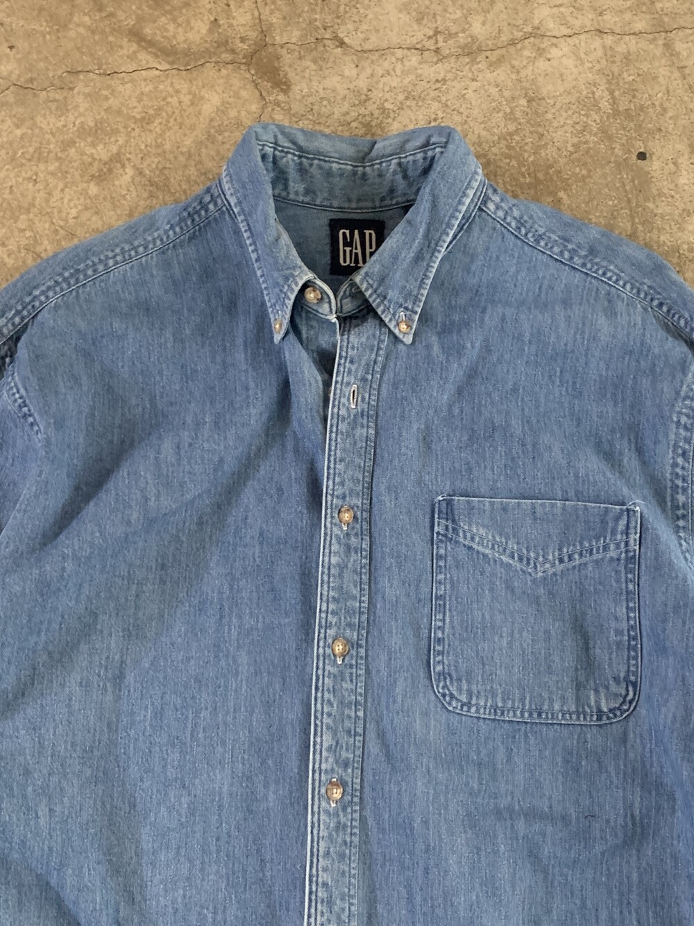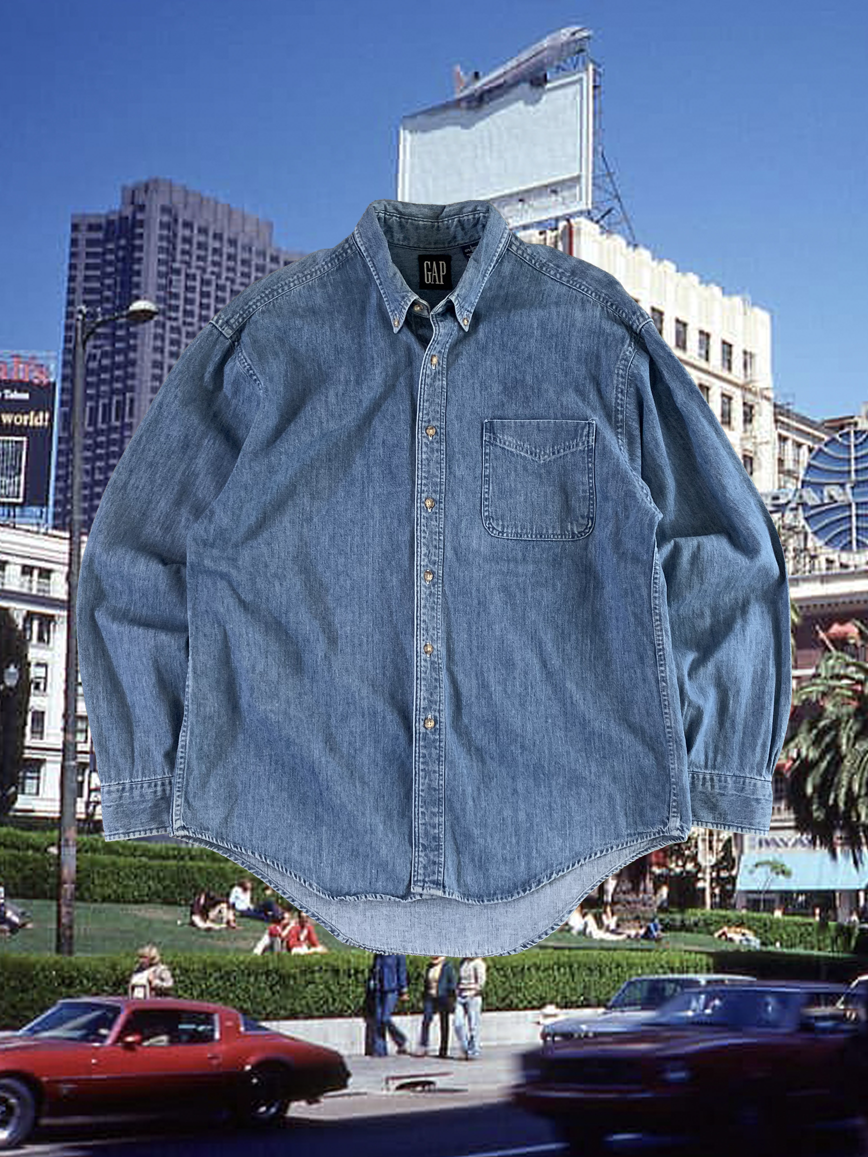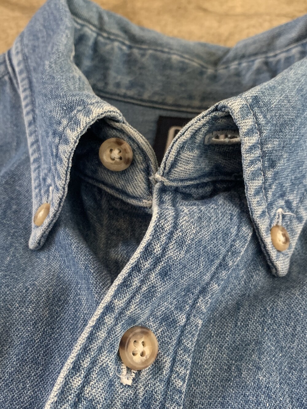 🚩Detail 낮은 넥밴드와 길지 않은 칼라, 그리고 낮게 자리잡은 뒷면 요크 등 클래식한 미국발 버튼다운 셔츠의 표본이라 할 수 있는 브룩스 브라더스의 OCBD 셔츠에 비하면 훨씬 캐주얼한 분위기의 제품이나, 묘하게 날렵한듯한 칼라와 유려한 밑단 헴라인이 올드 브룩스 브라더스 버튼다운 셔츠를 연상케하는 올드 갭의 데님셔츠입니다. 전반적으로 캐주얼한 디테일 배치와 데님 소재 원단 조합이 잘 어울리는 제품으로, 턱인보다는 루즈하게 착용하기를 권장드립니다.
