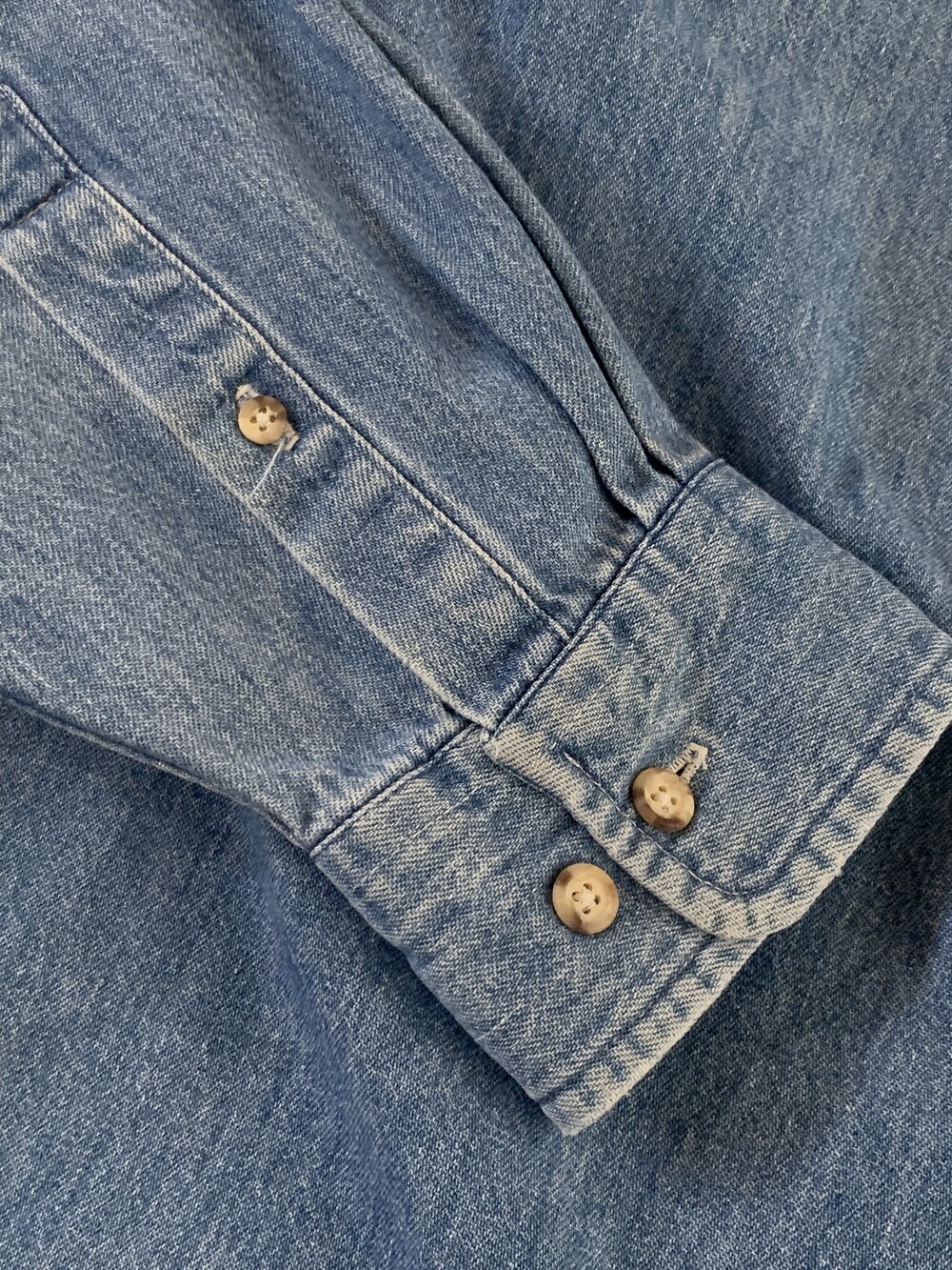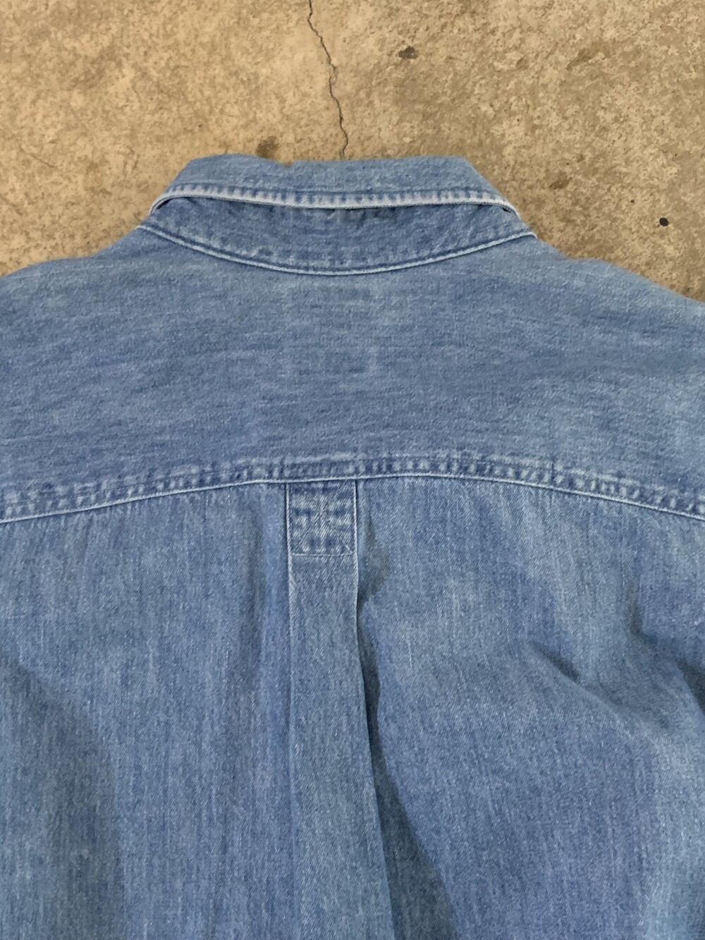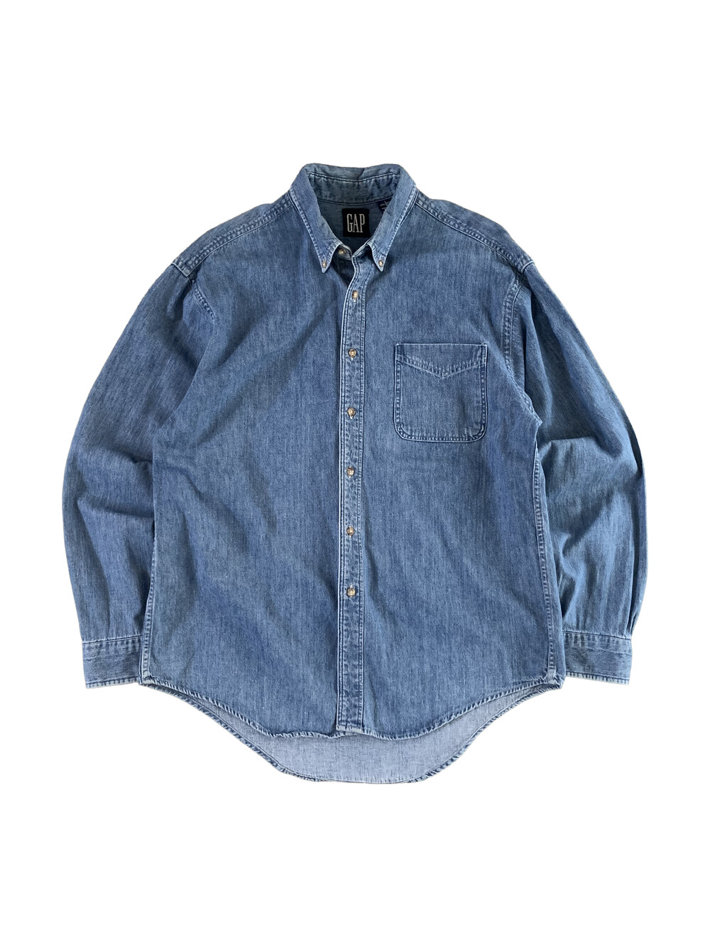 🚩Detail 낮은 넥밴드와 길지 않은 칼라, 그리고 낮게 자리잡은 뒷면 요크 등 클래식한 미국발 버튼다운 셔츠의 표본이라 할 수 있는 브룩스 브라더스의 OCBD 셔츠에 비하면 훨씬 캐주얼한 분위기의 제품이나, 묘하게 날렵한듯한 칼라와 유려한 밑단 헴라인이 올드 브룩스 브라더스 버튼다운 셔츠를 연상케하는 올드 갭의 데님셔츠입니다. 전반적으로 캐주얼한 디테일 배치와 데님 소재 원단 조합이 잘 어울리는 제품으로, 턱인보다는 루즈하게 착용하기를 권장드립니다.