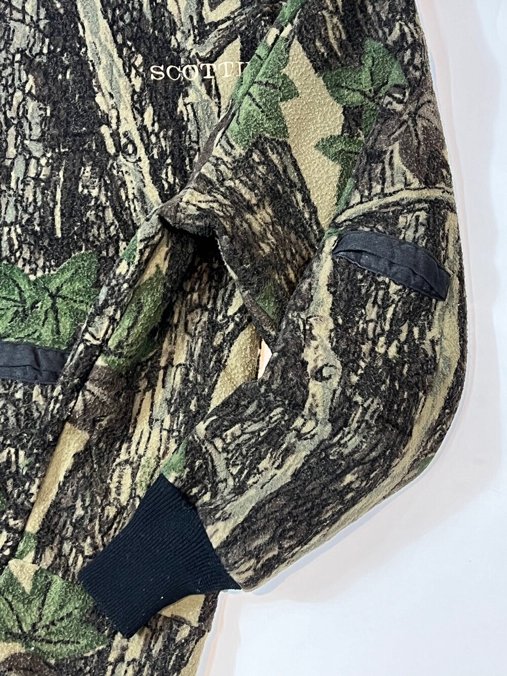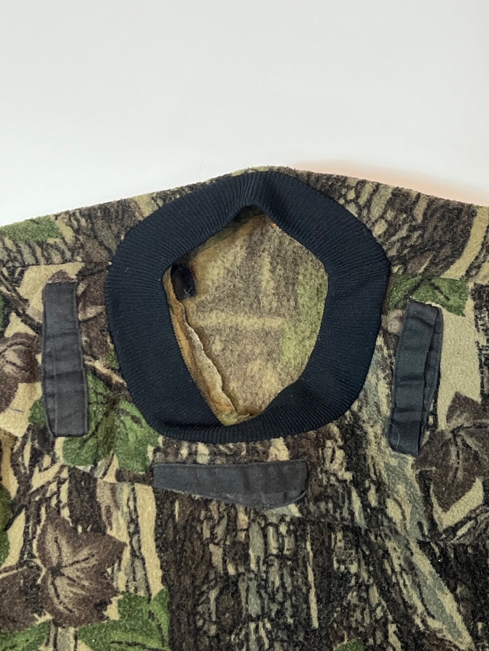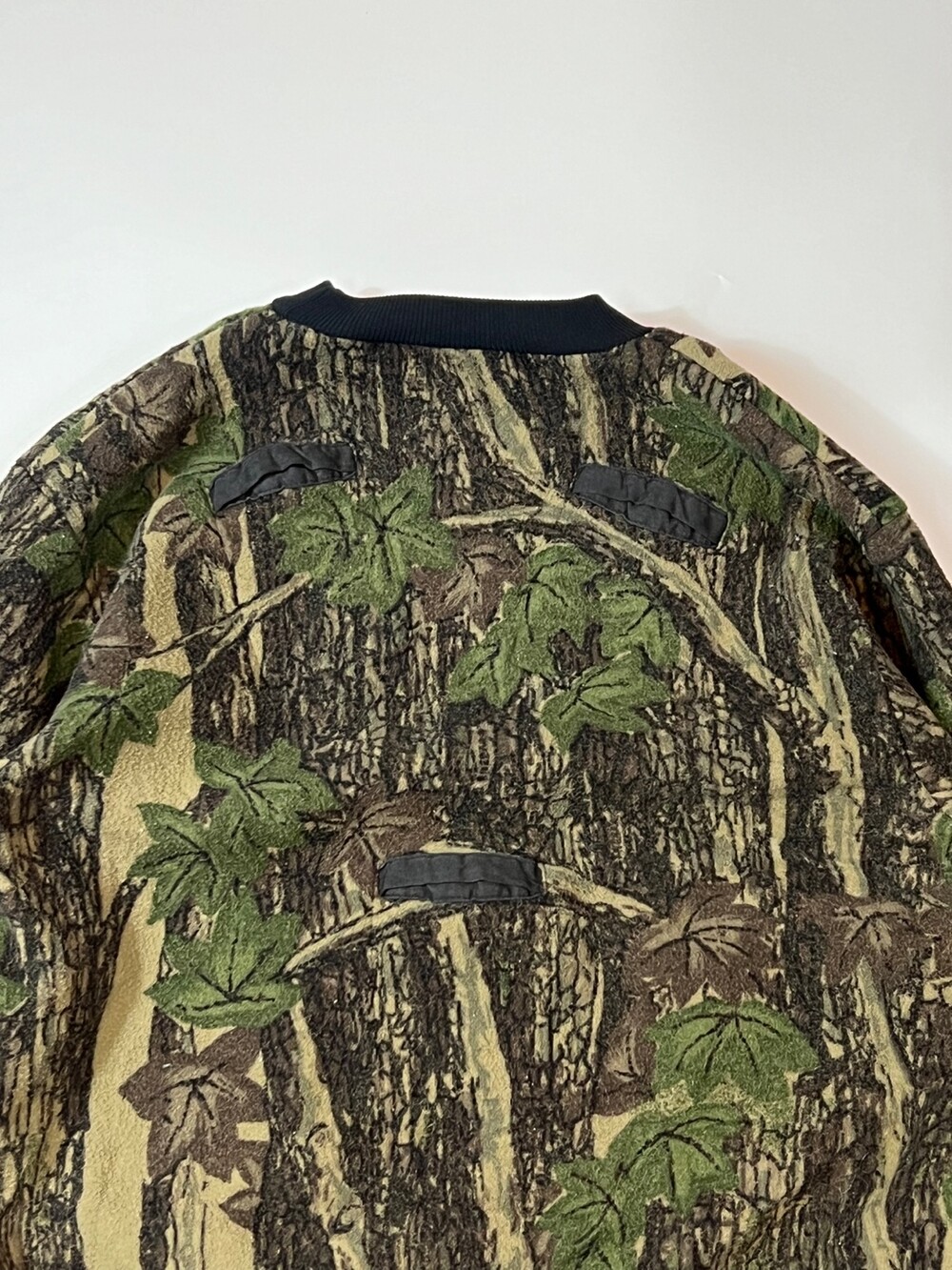 보일드 울과 유사한, 플리스라고 하기에는 다소 거칠고 단단한 질감의 번팅(Bunting) 원단 리얼트리 프린팅 풀오버입니다. 넥라인 주변, 전후면, 소매 및 어깨 부분에 포켓이 배치되어 있는데 충격 보호용 패드를 끼워넣거나 탄창을 보관하는 용도의 주머니로 추정됩니다.