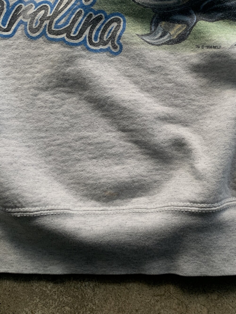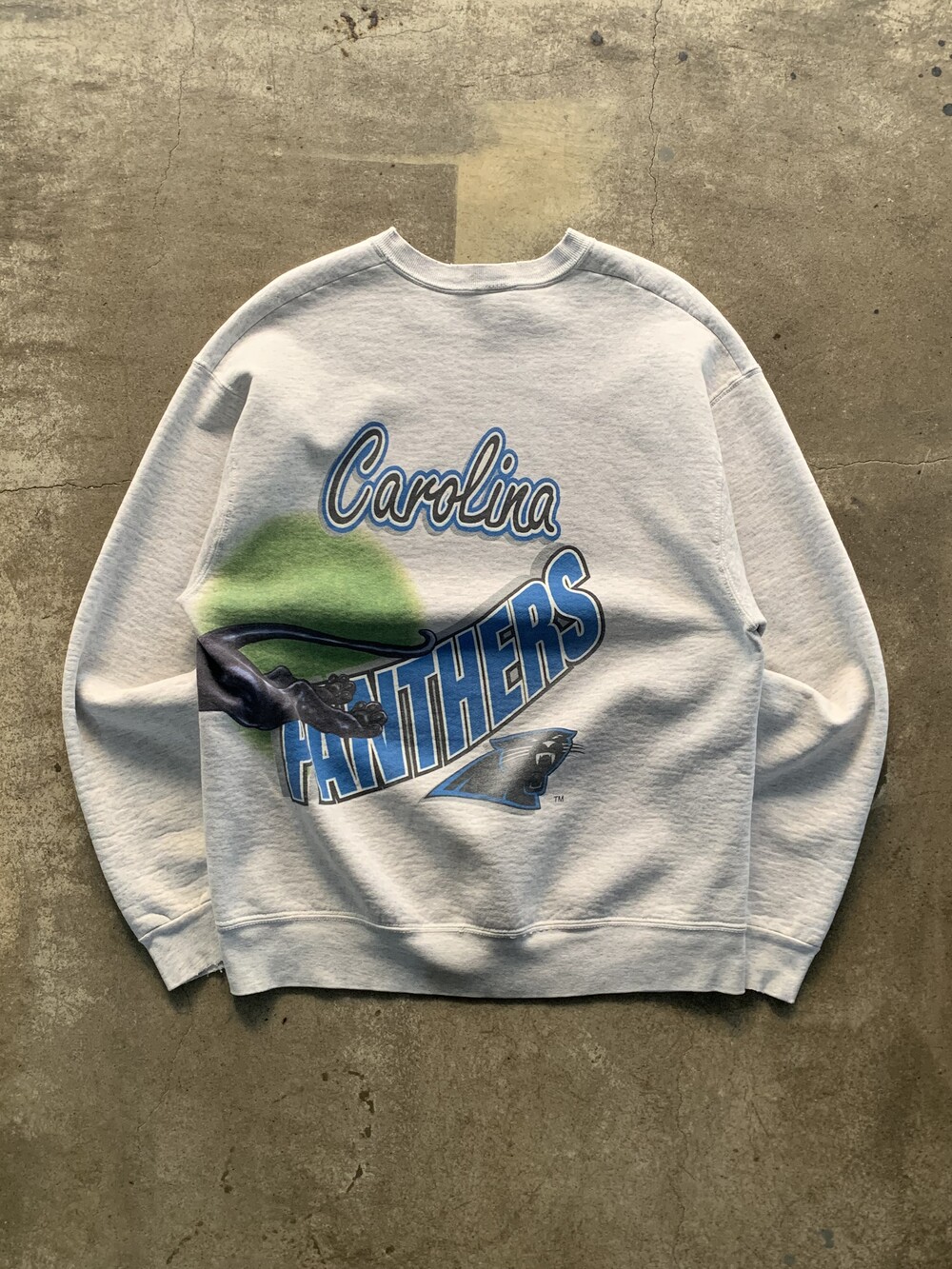 🚩Detail 스크린 프린팅 업체로 시작하여, 1990년대 들어 스포츠 관련 프린팅을 주력으로 선보이며 명성을 얻고 직접 제작한 티셔츠, 스웻셔츠등의 스포츠웨어 바디에 스포티한 감성의 프린팅을 올려 판매했던 세일럼 스포츠웨어(SALEM SPORTSWEAR)의 스웻셔츠. 몸판 측면을 둘러 앞뒤로 놓여진 프린팅 때문에 랩어라운드(WRAP AROUND) 로 불리우는 종류의 프린팅으로, 미국 프로미식축구 NFL 소속 캐롤라이나 팬서스 프린팅이 돋보이는 제품입니다.