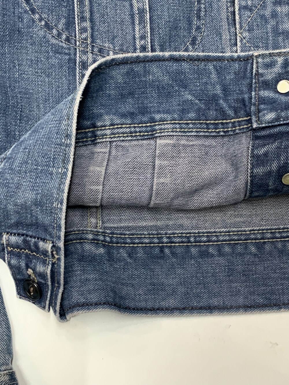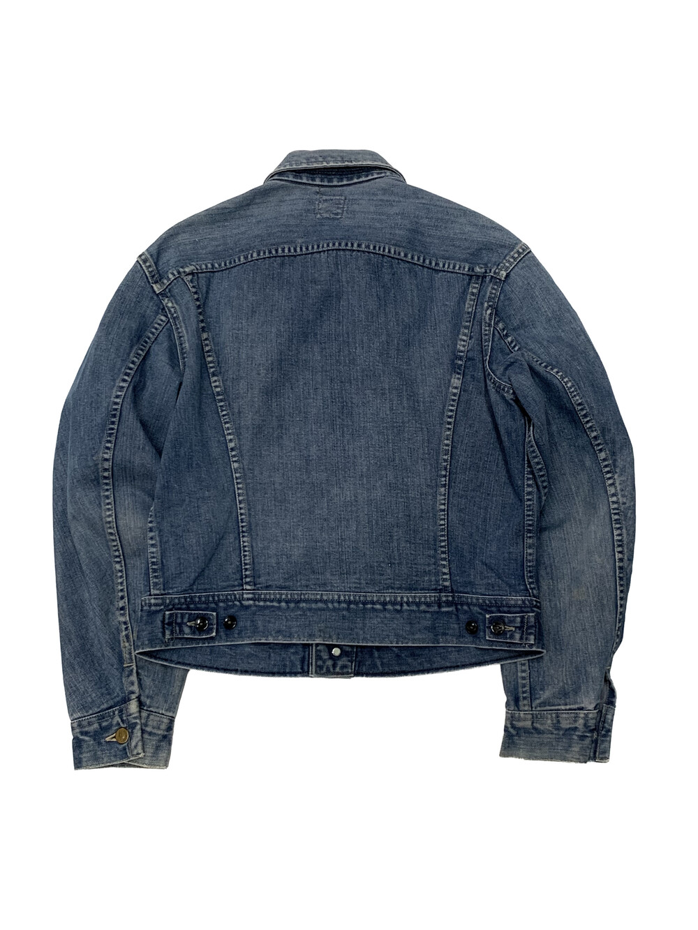 🚩Condition 안쪽 흰색 씨실 부분이 살짝 톤이 어두운 걸로 보아 이전 사용자가 후염가공을 하여 착용한듯한 흔적이 있으며 현재 겉면은 잦은 착용과 세탁을 거쳐 페이딩이 일어나 본래의 색깔을 어느정도 되찾은 상태. 전반적으로 사용감이 있으나 연식 대비 양호한 상태를 유지하고 있는 제품.