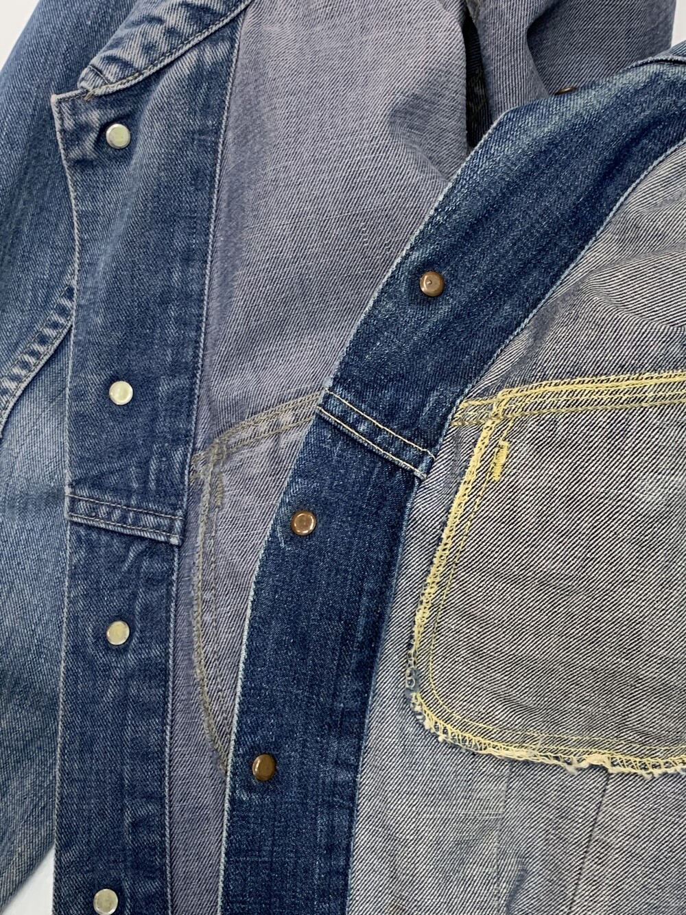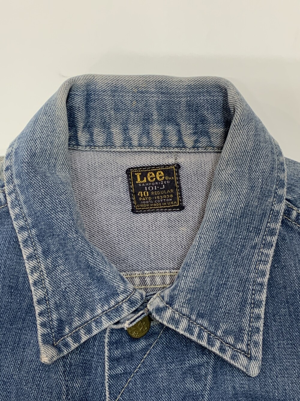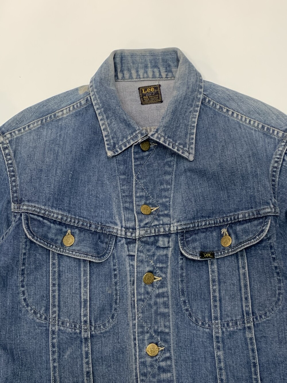 🚩Detail 리 라이더스(Lee Riders)의 버튼클로징 타입 데님 트러커의 대표적인 모델인 101-J 입니다. 특유의 포켓 디자인과 비교적 둥글둥글한 실루엣, 그리고 좌능직 데님 특유의 부드러운 터치감이 돋보이는 제품입니다. 트레이드마크 로고만 있는 1960년대 생산 제품으로, 크롭한 기장을 살려 저스트 사이즈로 핏하게 착용해도 좋을만한 제품입니다.