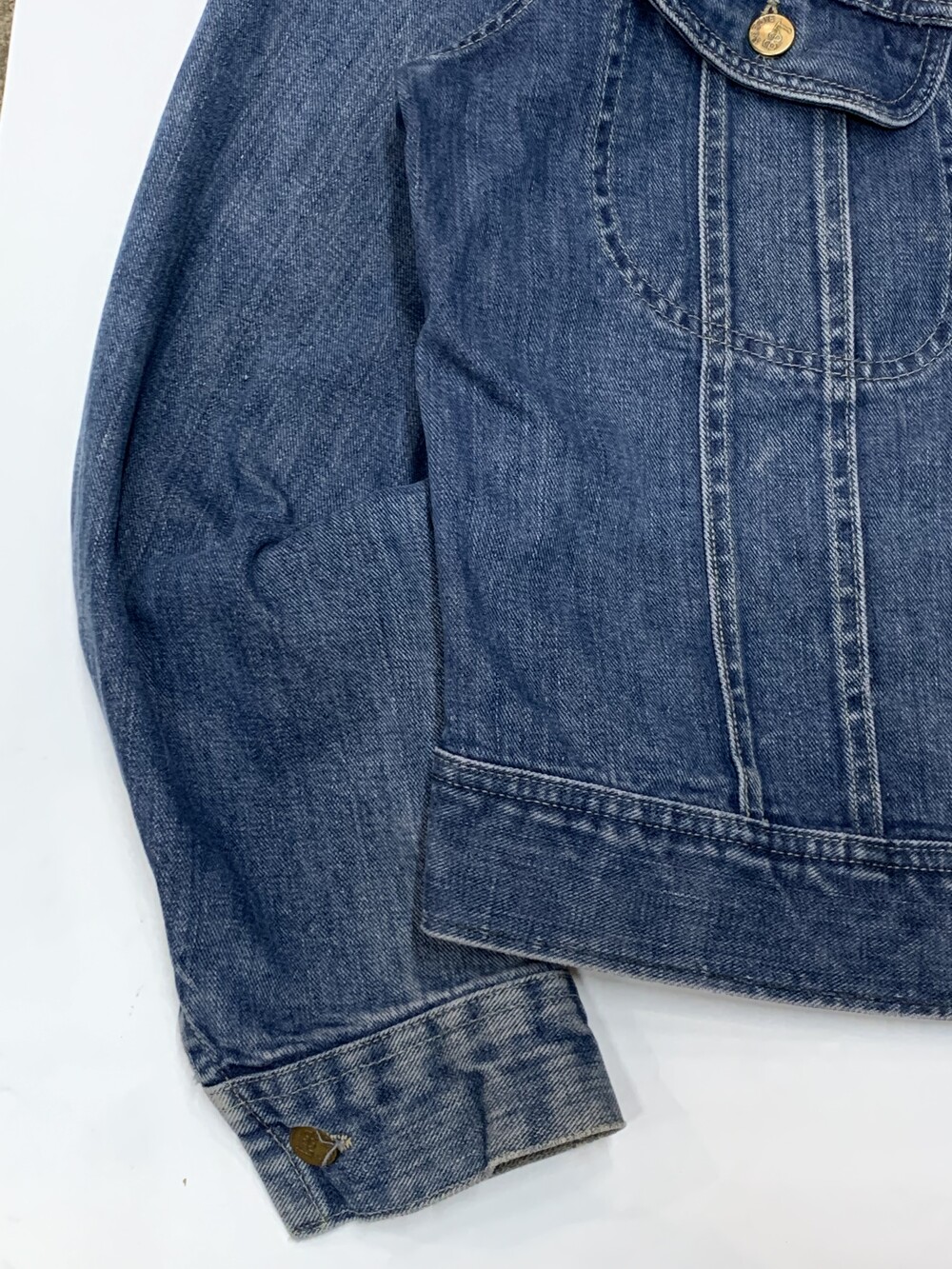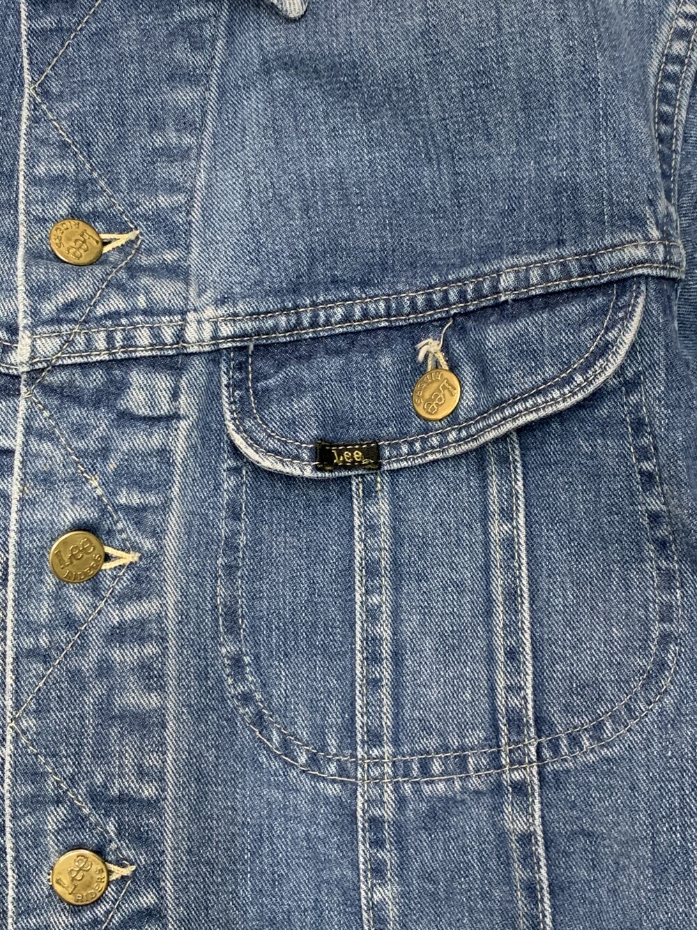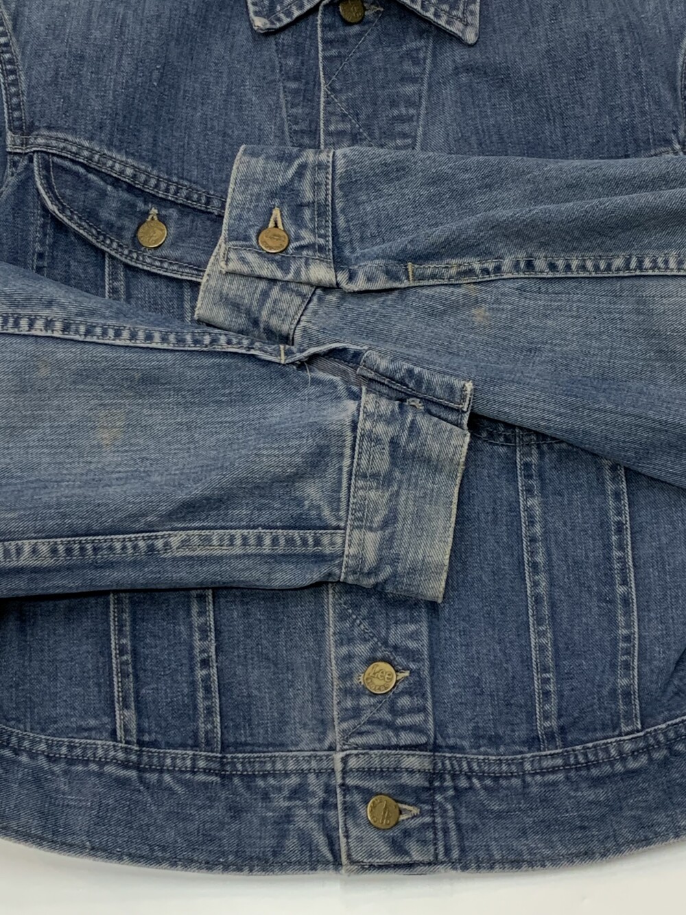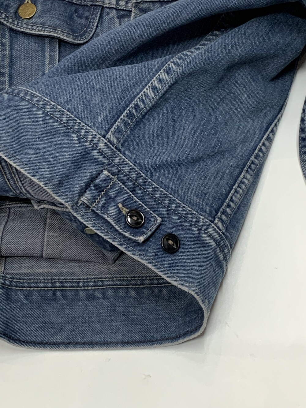 🚩Detail 리 라이더스(Lee Riders)의 버튼클로징 타입 데님 트러커의 대표적인 모델인 101-J 입니다. 특유의 포켓 디자인과 비교적 둥글둥글한 실루엣, 그리고 좌능직 데님 특유의 부드러운 터치감이 돋보이는 제품입니다. 트레이드마크 로고만 있는 1960년대 생산 제품으로, 크롭한 기장을 살려 저스트 사이즈로 핏하게 착용해도 좋을만한 제품입니다.