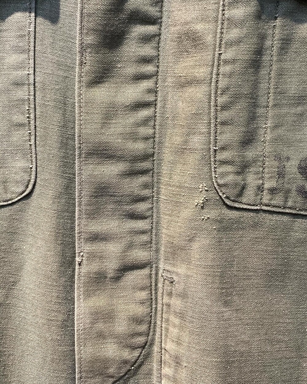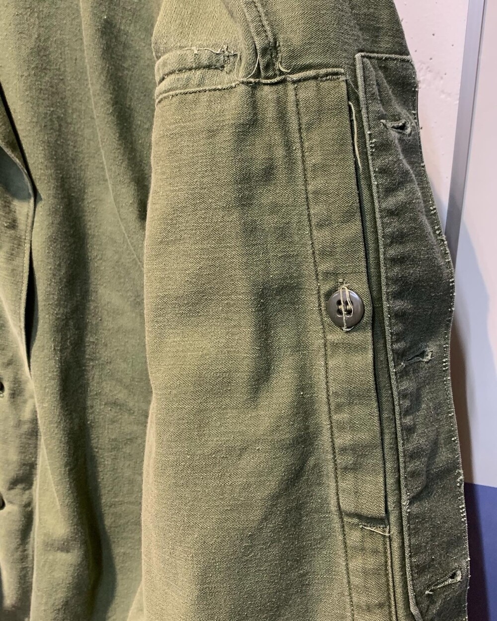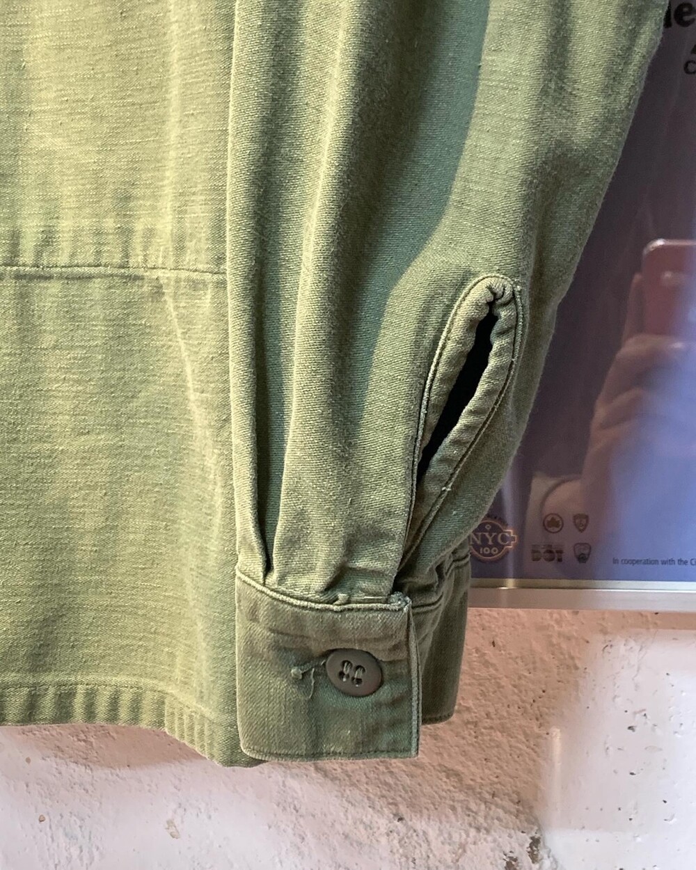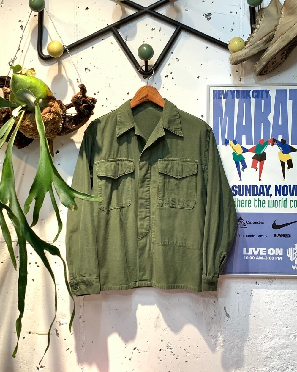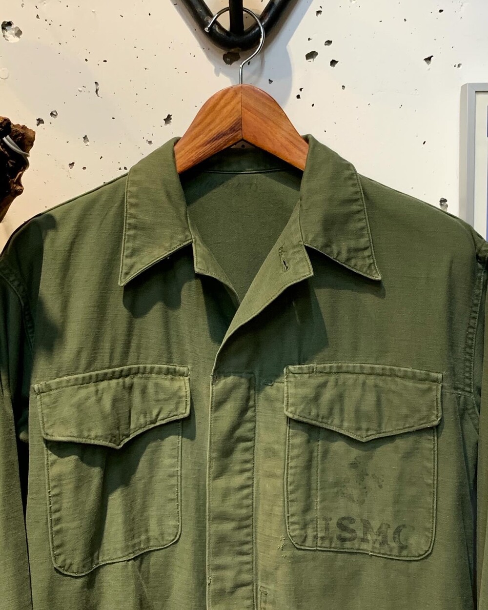 올리브 컬러의 코튼 사틴 원단을 사용한 미 해병대 유틸리티 셔츠. 전면에 두 개의 아웃포켓이 붙은 버튼클로징 타입 셔츠라는 점에서는 일반적인 군납용 유틸리티 셔츠와 다를 바 없으나, 버튼을 잠갔을 때 겉으로 단추가 보이지 않으며 히든버튼 사양으로 직선적이며 투박한 기존 유틸리티 셔츠보다 약간이나마 포멀한 인상을 주는 제품입니다.