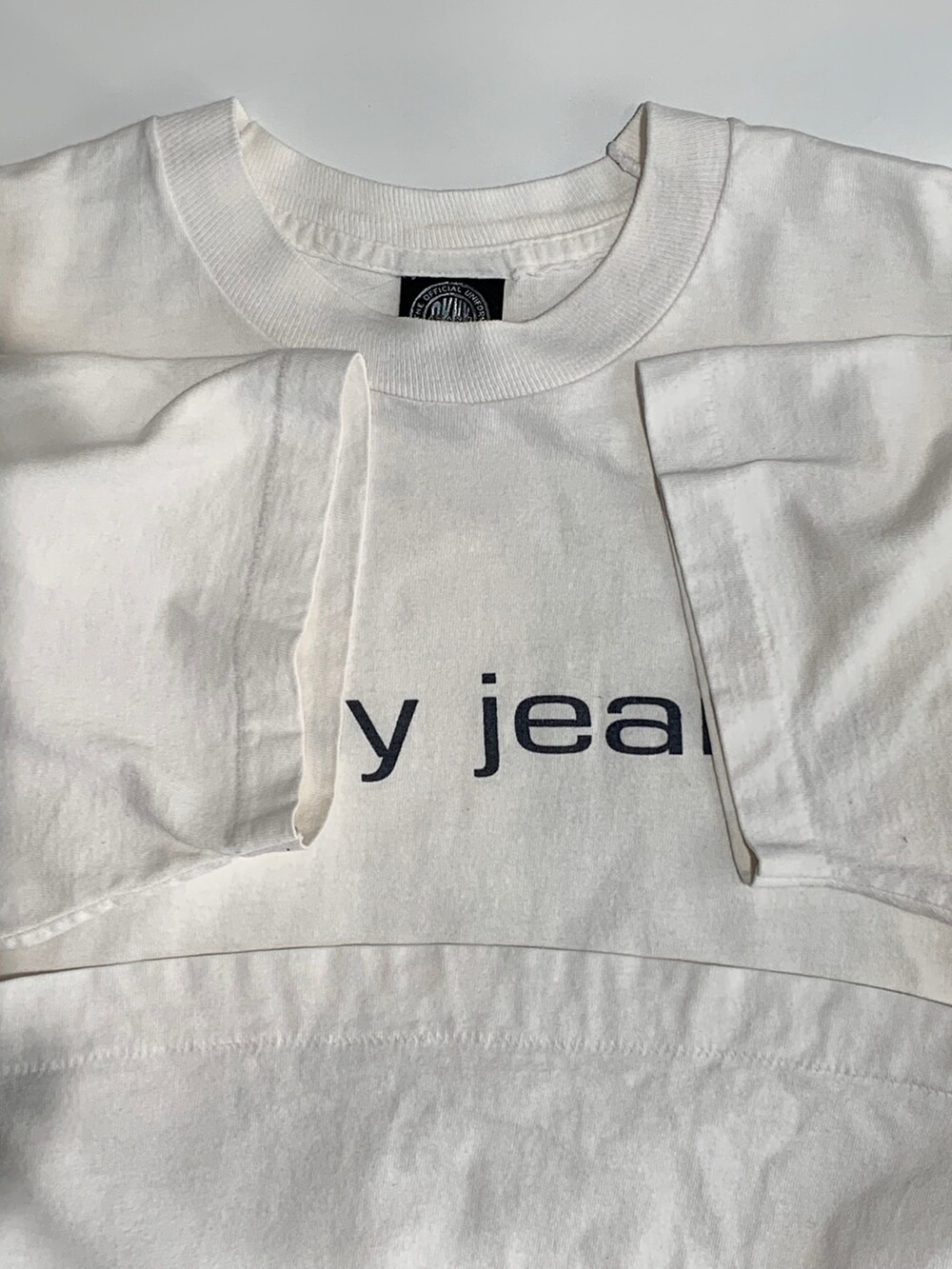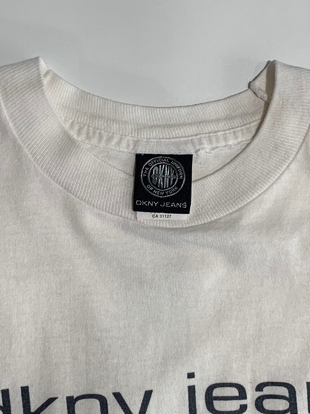🚩Detail 1980년대 DKNY의 성공 이후 영 캐주얼 장르까지 확장하기 위해 만든 산하 브랜드 중 하나인 DKNY JEANS에서 발매한 스펠아웃 티셔츠. 오리지널 브랜드와 마찬가지로 DKNY JEANS 역시 대문자를 사용하지만, 기존 라인에 비해 캐주얼한 포지션임을 어필하고자 소매 길이가 짧고 품에 비해 기장감이 살짝 긴 바디와 소문자 스펠아웃 프린팅 조합이 잘 어울리는 티셔츠. 데님이나 치노팬츠에 턱인해서 착용하거나 셔츠나 카디건 이너로 활용하기 좋을만한 제품입니다.