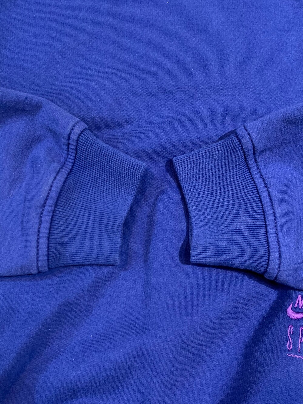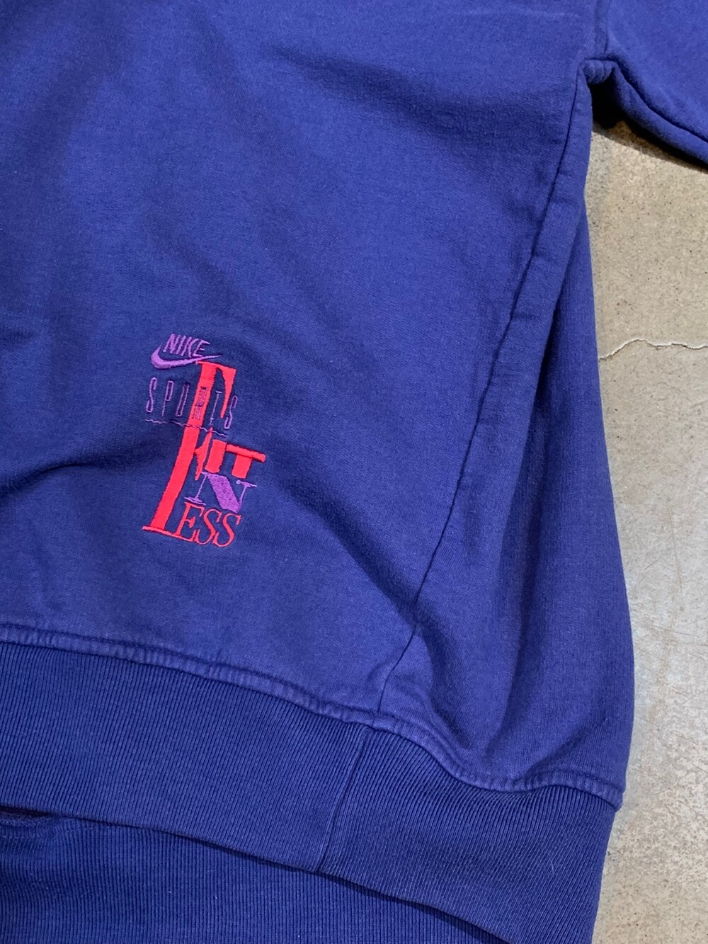 🚩Detail 러닝이나 구기종목 뿐만아니라 실내외 가리지않고 즐길 수 있는 피트니스 역시 스포츠의 일환으로 소개하고자 했던 시도했음을 짐작할 수 있는 SPORTS & FITNESS COMPANY 라인의 스웻셔츠입니다. 크루넥과는 달리 어깨 너비가 넓은대신 소매 기장이 짧은 드랍숄더 실루엣을 보이며 밑단이나 소매 립 역시 텐션이 어느정도 있어 적당히 여유있게 착용하기 좋을만한 제품입니다. 몸판 하단부에는 SPORTS N FITNESS 의 N이 중복되는 것을 이용한 로고 디자인이 돋보입니다.