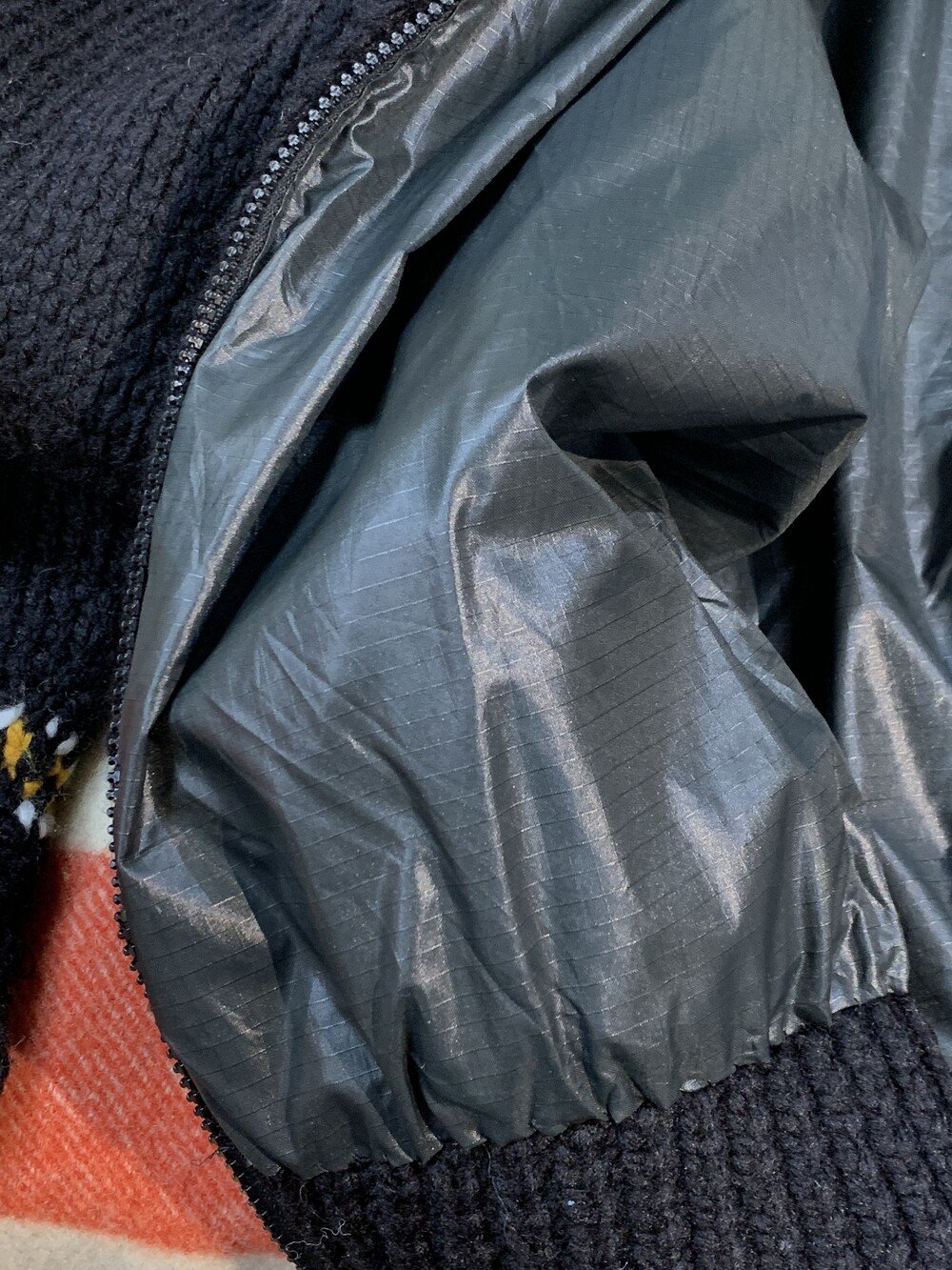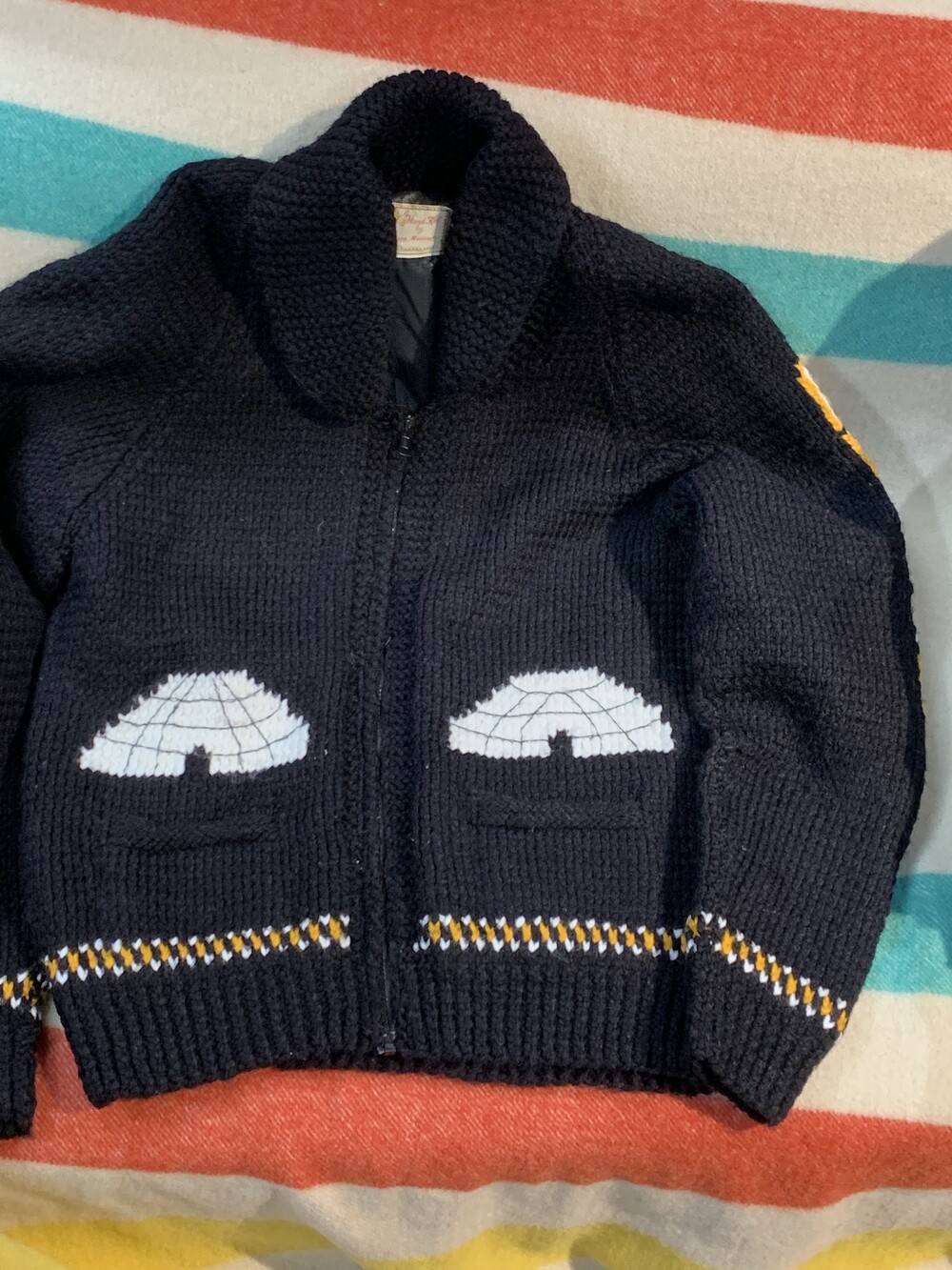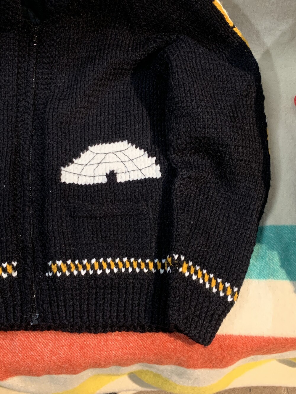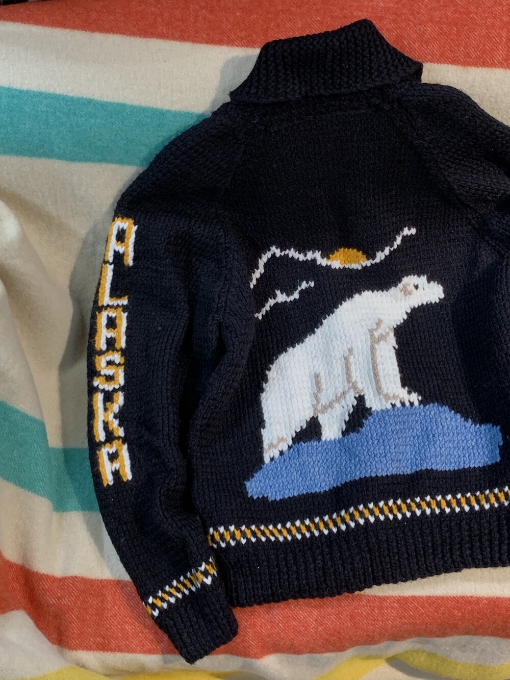🚩Detail 로우게이지 스웨터 특유의 따스한 느낌으로 추운 계절감에 즐기기 부족하지 않을만한 올드 코위찬 스웨터입니다. 블랙 컬러 바디에 북극곰 프린팅과 ALASKA 스펠아웃 프린팅이 올려져 있으며, 독특하게도 라이닝이 립스탑 나일론 원단으로, 일반적으로 올드 코위찬에서 볼 법한 라이닝에 비해 두께감이 있어 내구성이나 방풍 측면에서 보다 이점이 있을만한 제품입니다. 100-102호 사이로 착용하는 분들에게 권장드립니다.