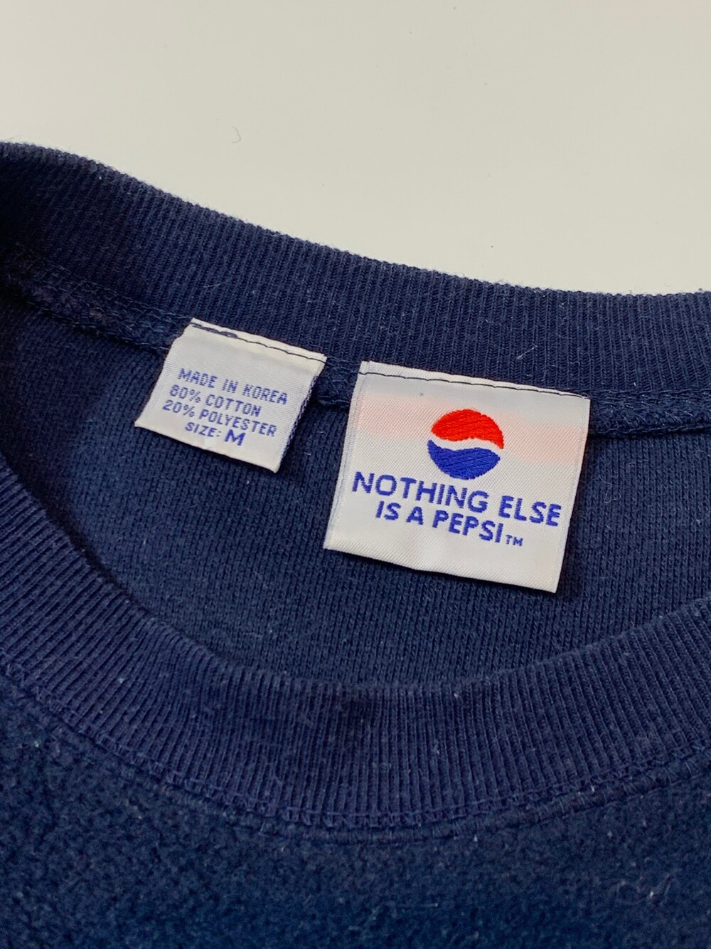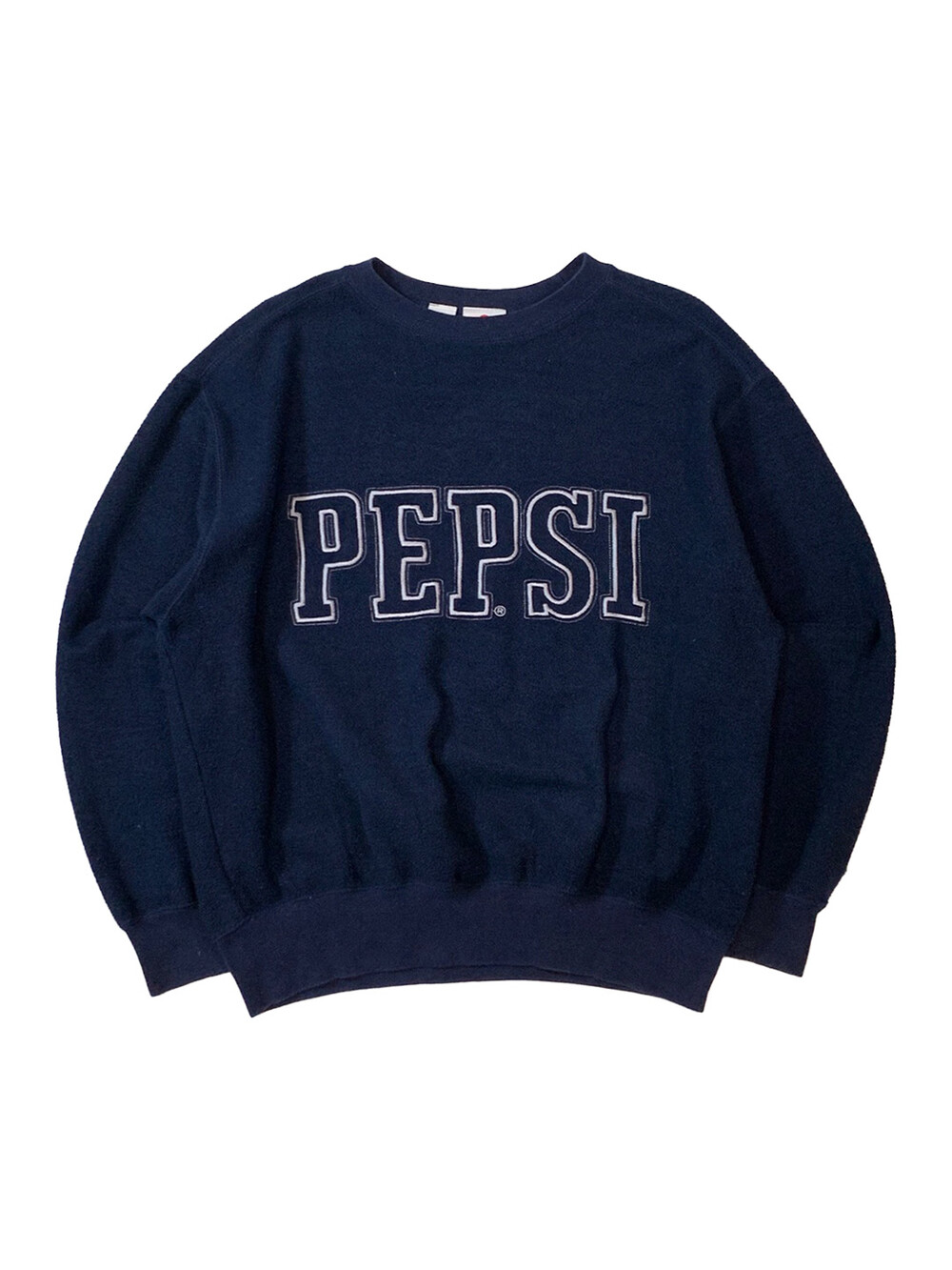 플리스 소재가 겉감으로 드러나 마치 스웻셔츠 안팎이 뒤집어놓은 듯한, NOTHING ELSE IS A PEPSI 라벨이 붙은 1990년대 펩시 스웻셔츠입니다. 표기 대비 여유로운 사이즈와 큼지막한 스펠아웃 자수가 전면에 놓여있어 캐주얼하게 활용하기 좋을만한 제품입니다.