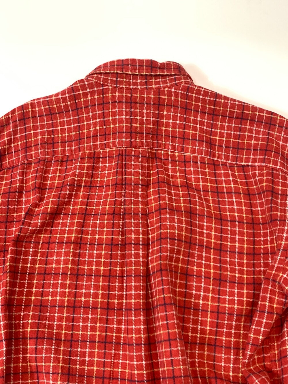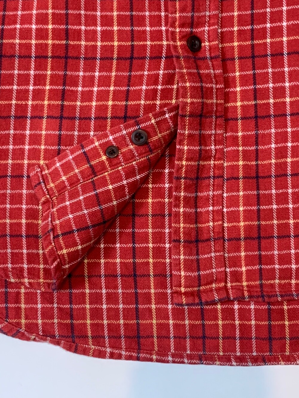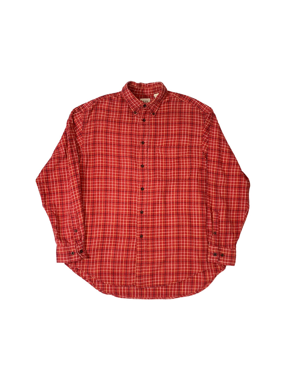 옥스포드 코튼 정도의 두께감이나 보다 부드러운 터치감의 플란넬 코튼 원단의 버튼다운 셔츠입니다. 원단감에 어울리는 따스한 컬러 배색과 체크 패턴이 매력적인 제품입니다.