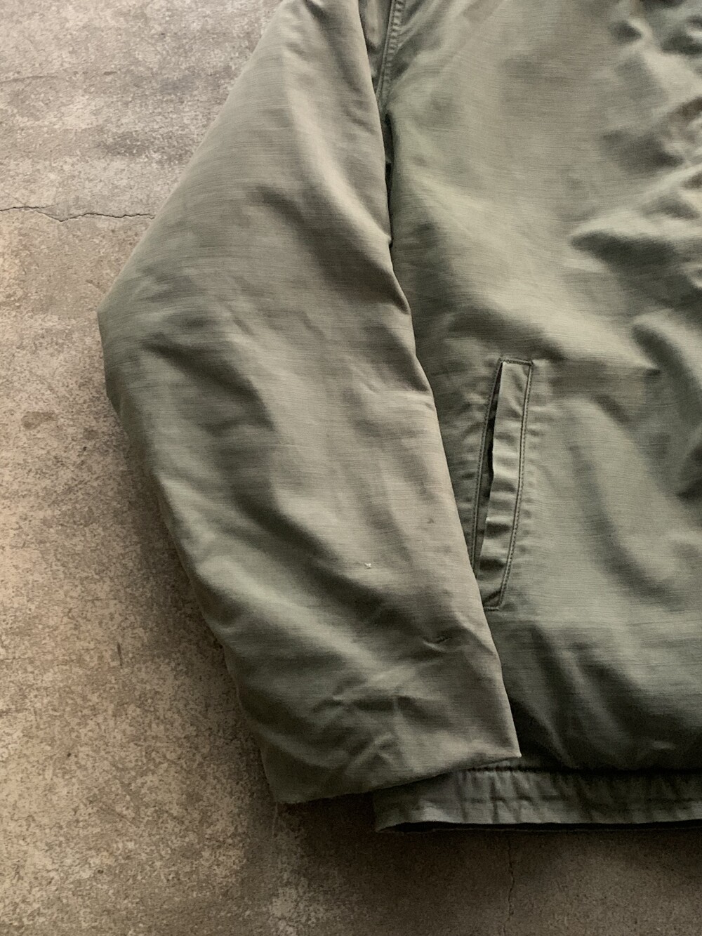🚩Detail 미 해군에게 지급되었던 N1 덱 자켓의 후속작으로 1970년대 처음으로 보급된 A2 덱 자켓입니다. 올리브 컬러의 코튼/나일론 혼방 원단과 나일론 라이닝, 밑단을 조여 방풍을 돕는 스트랩으로 기존의 덱 자켓보다 가볍고 효과적인 방풍을 돕는 용도로 개발된 제품입니다. 군복치고도 미니멀한 구성으로 다양한 착장에 활용하기 좋을만한 제품입니다.