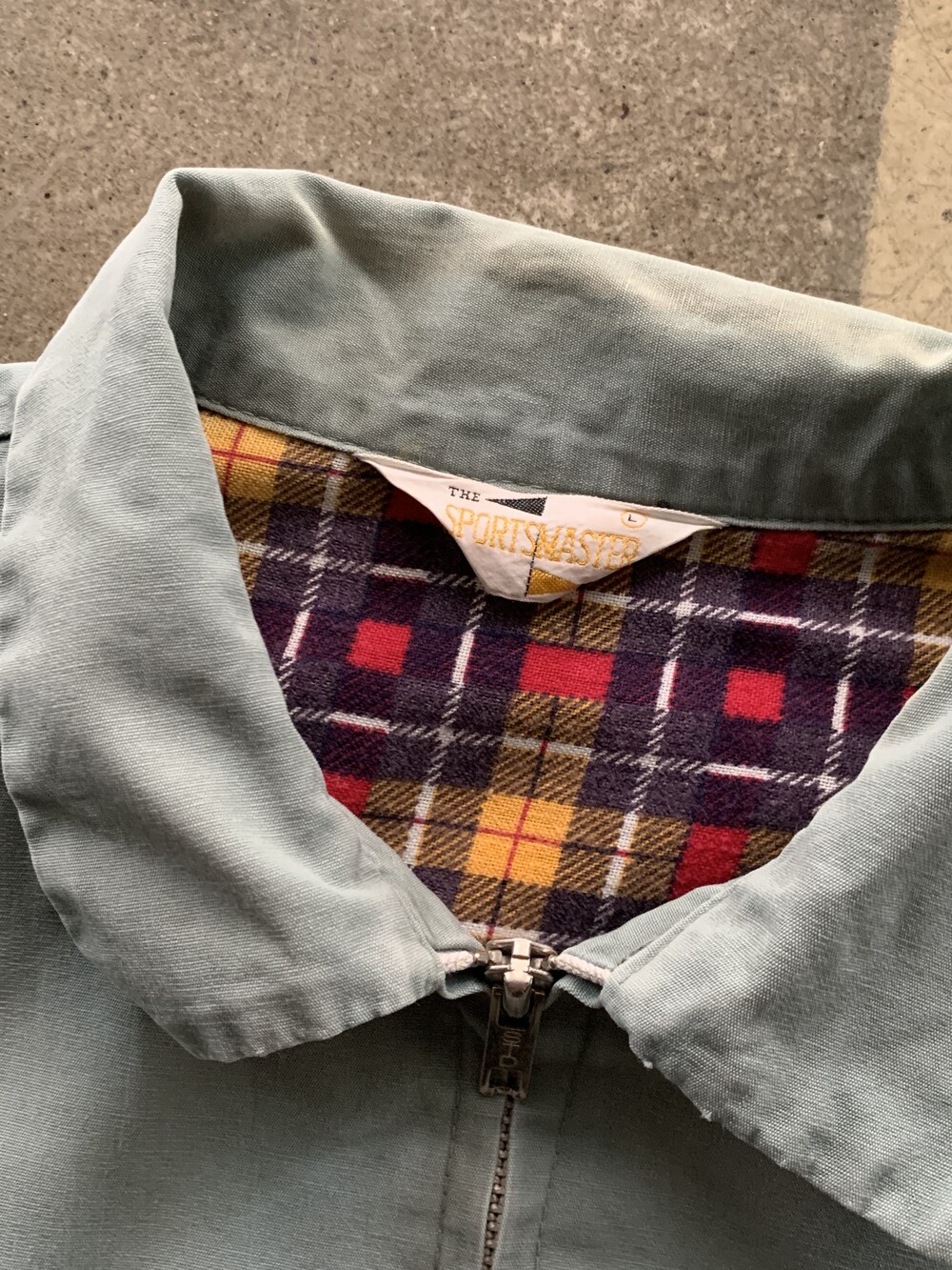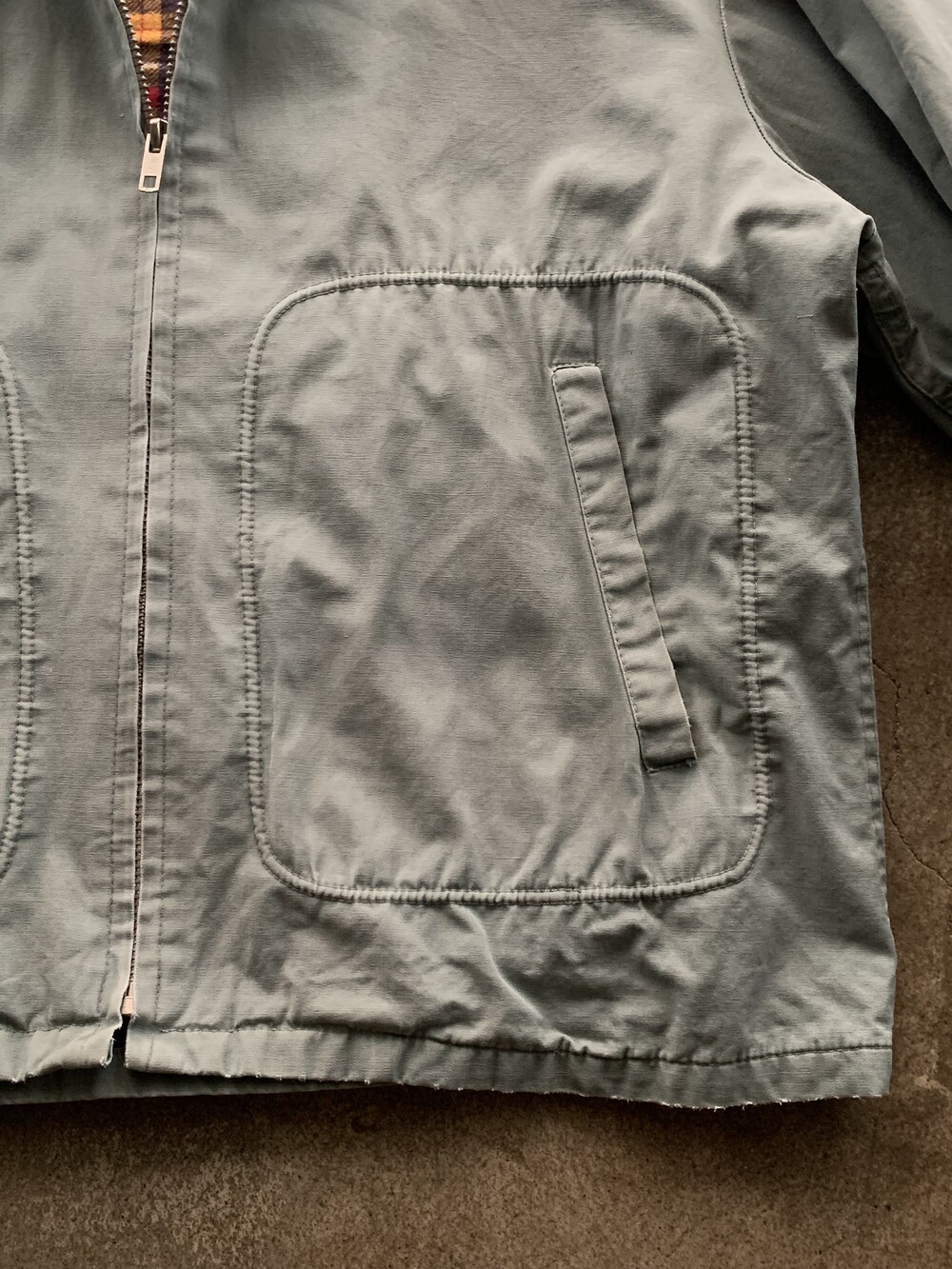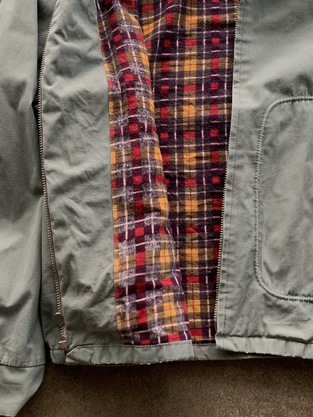 🚩Detail 밀도 높은 코튼 원단과 지퍼 이빨이 보이지 않게끔 원단끼리 맞물려있는 형태, 전면 슬래셔 포켓을 두른 파이핑 디테일 등 고전적인 디테일이 일부 채택된 스포츠마스터의 스윙 자켓. 1960년대 전후에 생산된 것으로 추정되며, 짧은 기장과 심플한 형태의 블루종으로 체크 패턴 라이닝이 붙어 가볍게 착용할 수 있는 방풍용 자켓입니다.