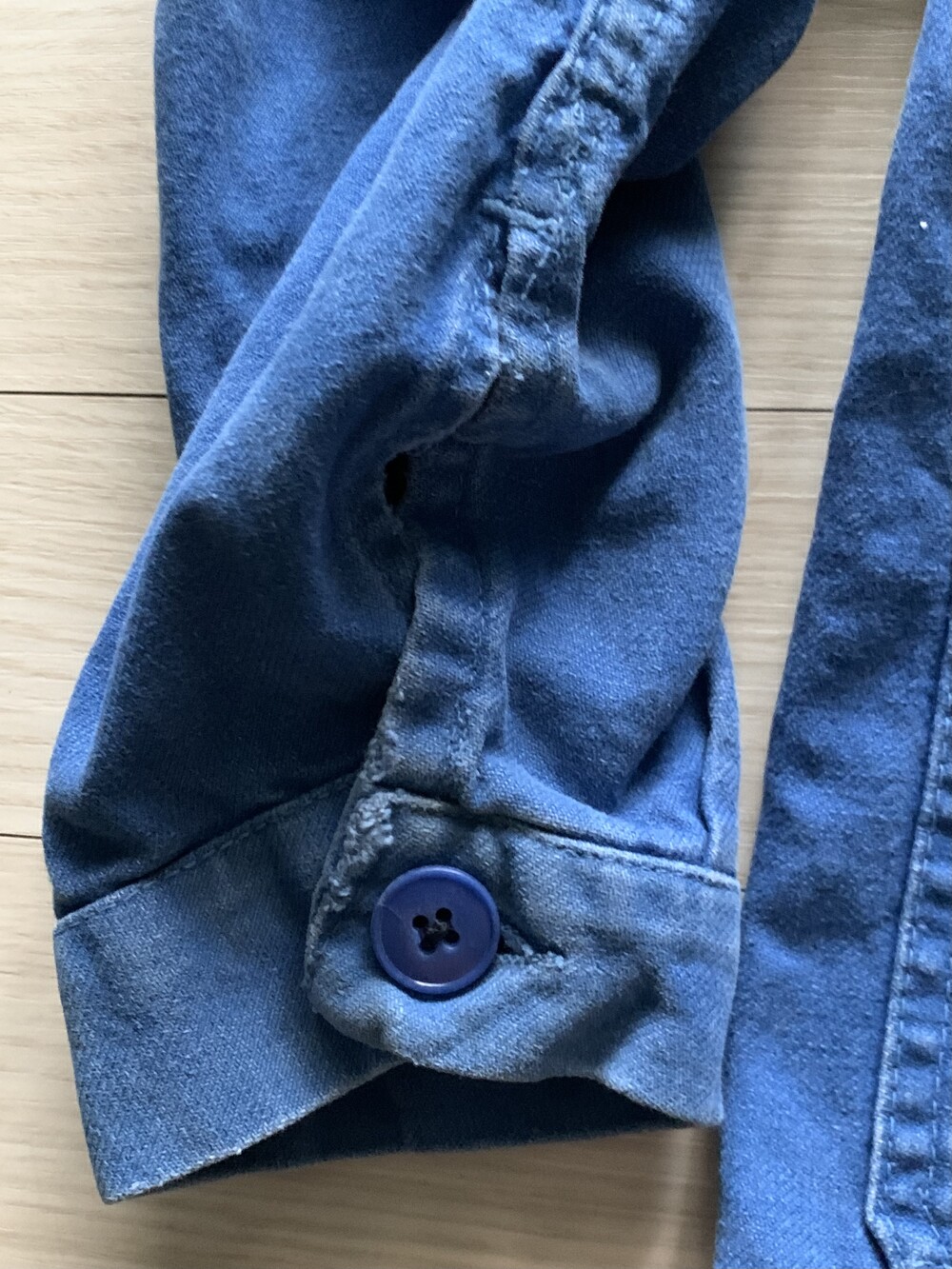 🚩Detail 안쪽에 메이커 택이 붙어있지는 않으나 둥근 모양의 클럽 칼라와 플랫하면서도 푸른 빛깔의 버튼으로 미루어 1950년대 전후 생산된 모델로 추정할 수 있을만한 전형적인 3포켓 타입 유로피언 워크 자켓입니다. 가볍게 착용할 수 있는 코튼 트윌 원단인지라 몰스킨 워크 자켓에서나 볼 만한 페이딩은 기대하기 어렵지만 따뜻한 날씨에는 아우터로, 추울 때는 넣어입지 않는 캐주얼한 셔츠로 활용해도 좋을만한 범용성이 돋보입니다. 소매와 전면 맨 아래 버튼이 교체된 정도를 제외하면 연식 대비 양호한 컨디션을 유지하고 있는 제품으로 100-102호 사이로 착용하는 분들에게 권장드립니다.