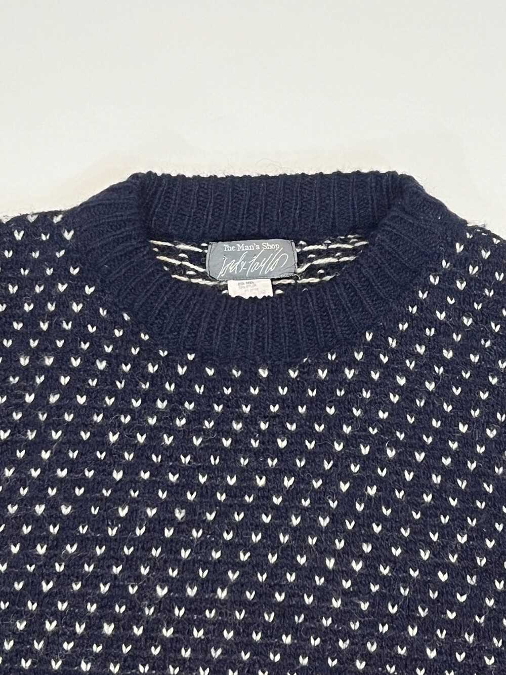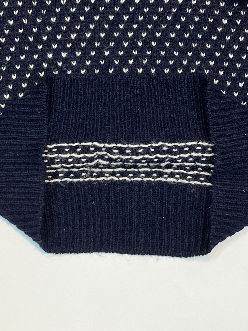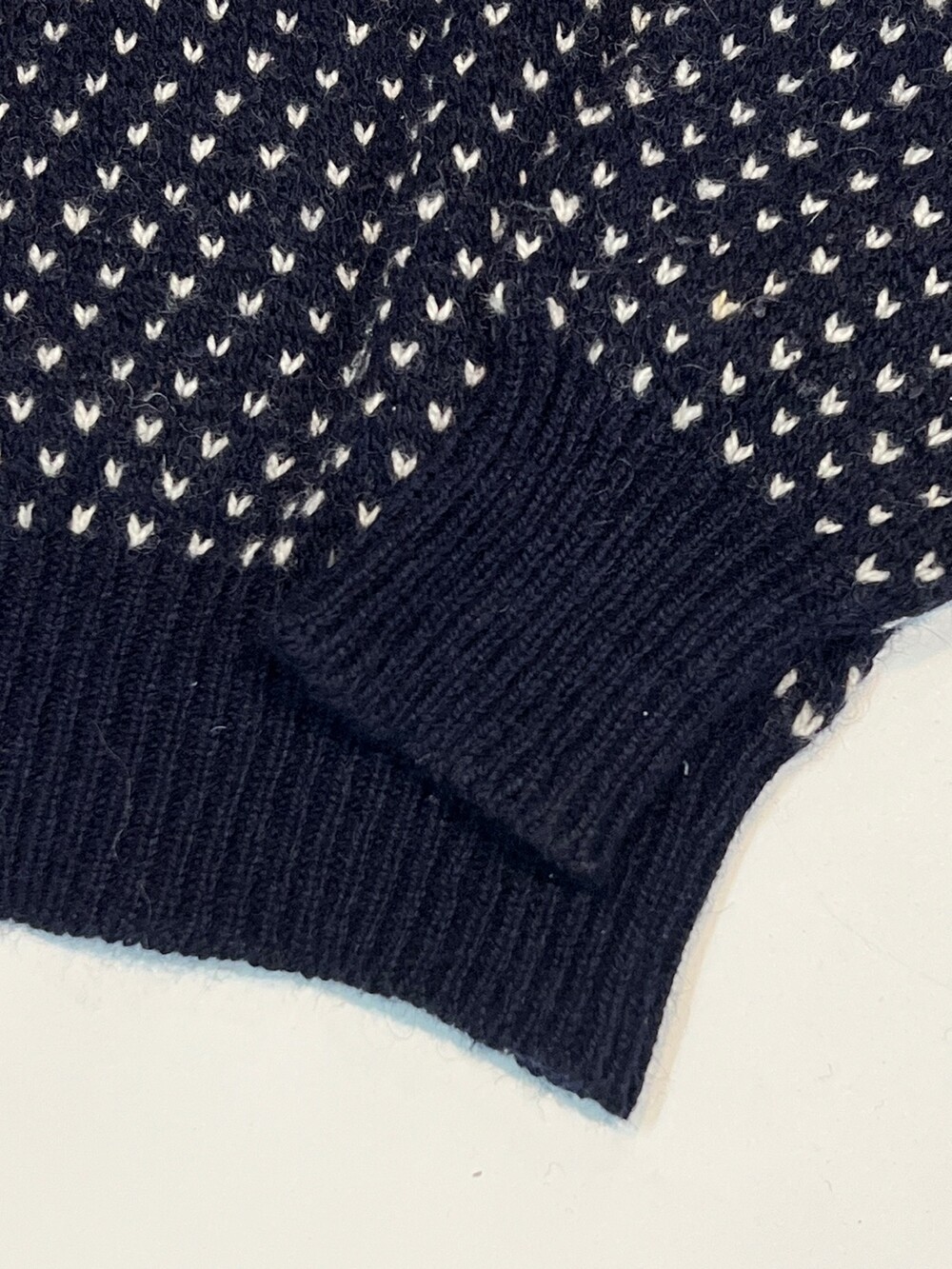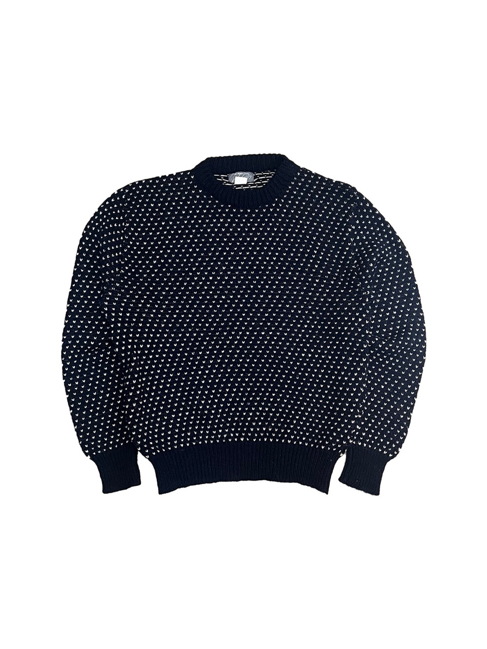 버드아이 패턴이 전면에 놓인 엘엘빈의 노르위전 스웨터만큼 두껍지는 않지만, 적당한 두께감으로 가볍게 착용할 수 있으며 립 텐션도 좋은 상태를 유지하고 있는 스토어계열 브랜드의 버드아이 니트 풀오버입니다.