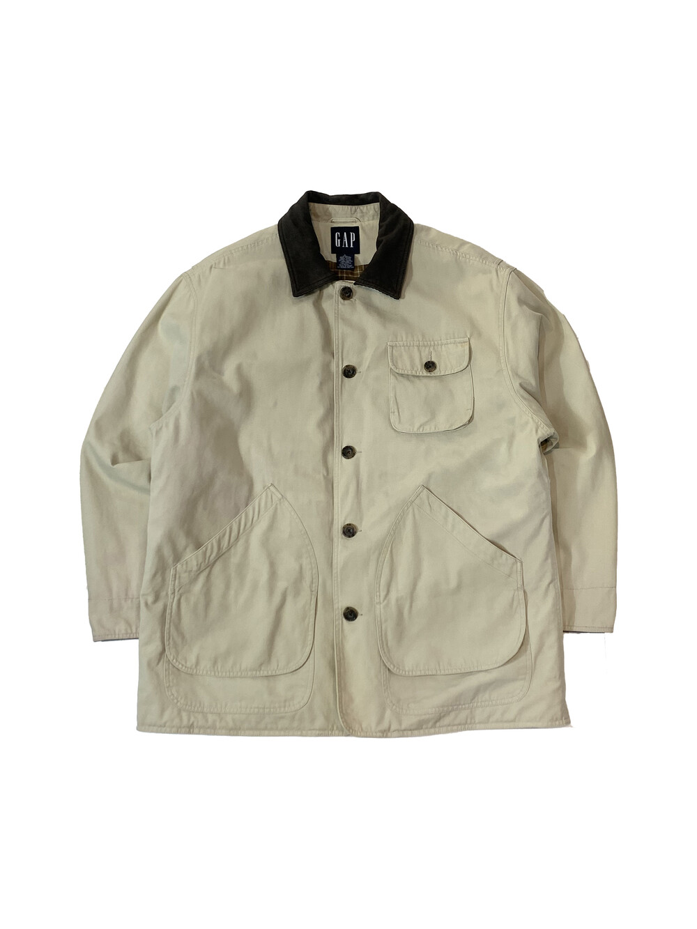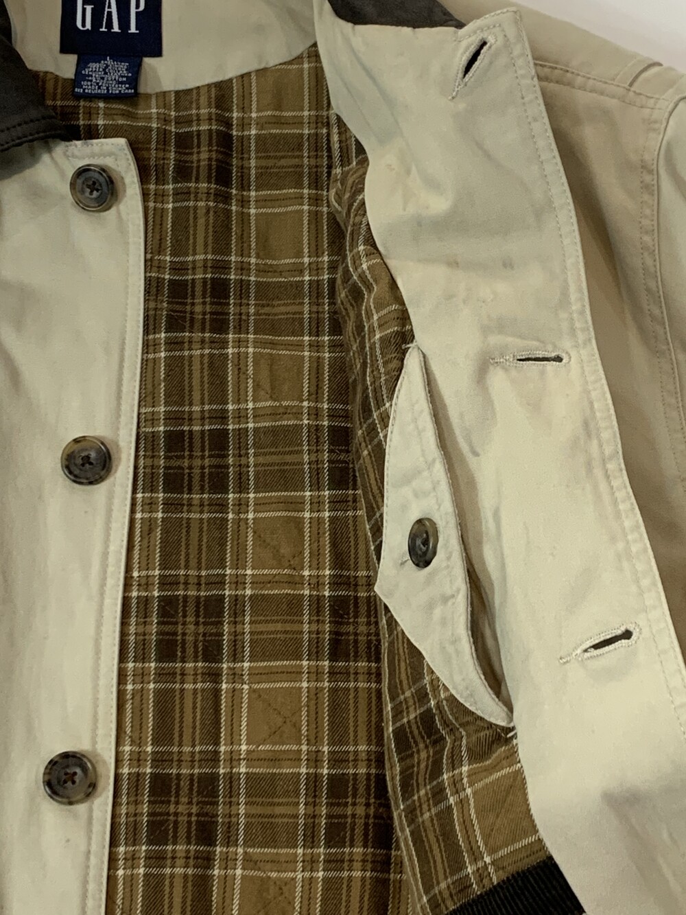 🚩Detail 엘엘빈으로 대표되는 덕캔버스 원단의 반(Barn) 코트 혹은 반 자켓 디자인을 그대로 계승하되, 일상에서 보다 웨어러블하게 입을 수 있도록 적당한 두께의 코튼 원단이 적용된 올드 갭의 반 자켓. 안쪽에는 블랭킷과 퀼트 라이닝이 붙어있으며 표기 대비 여유로운 사이즈 덕분에 적절한 레이어드가 수반될 시 겨울철 아우터로도 활용할 수 있을만한 제품입니다.