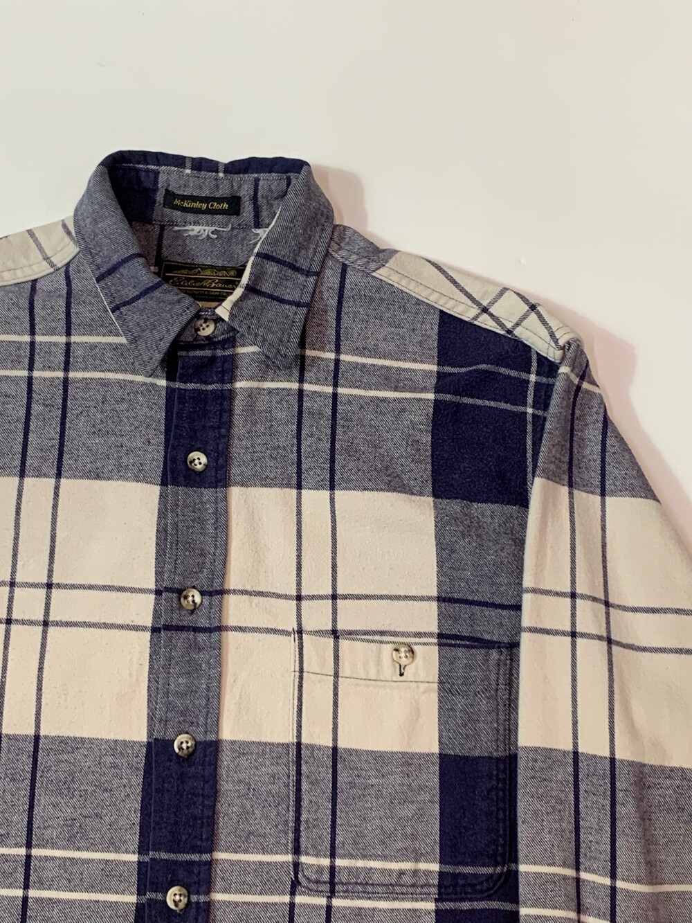 밀도 높고 헤어리한 코튼 원단으로 그 질감이 샤모아 가죽 질감과 유사하다 하여 엘엘빈에서 샤모아 클로스 셔츠로 이름붙여 소개되는 품목입니다. 에디바우어에서는 이와 유사한 질감의 원단에 전면에 대칭형 포켓이 붙는 형태의 제품에 맥킨리 클로스 셔츠라는 이름을 붙입니다. 캐주얼