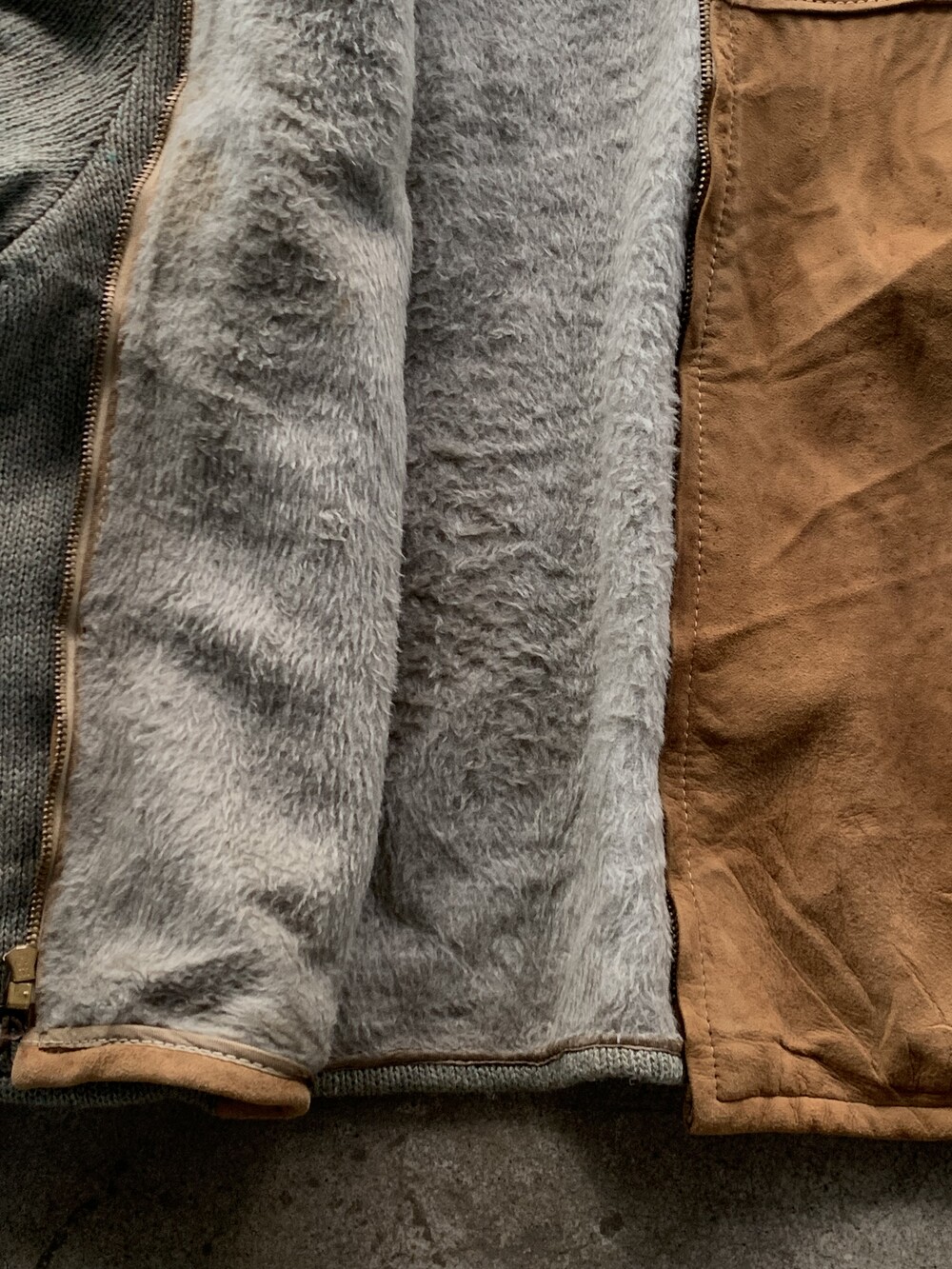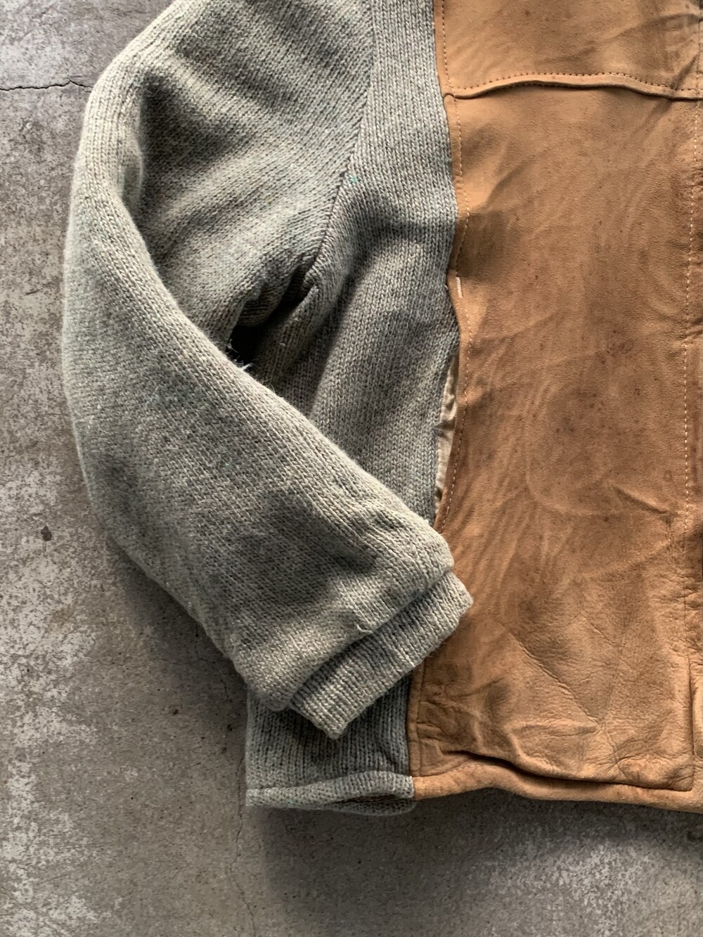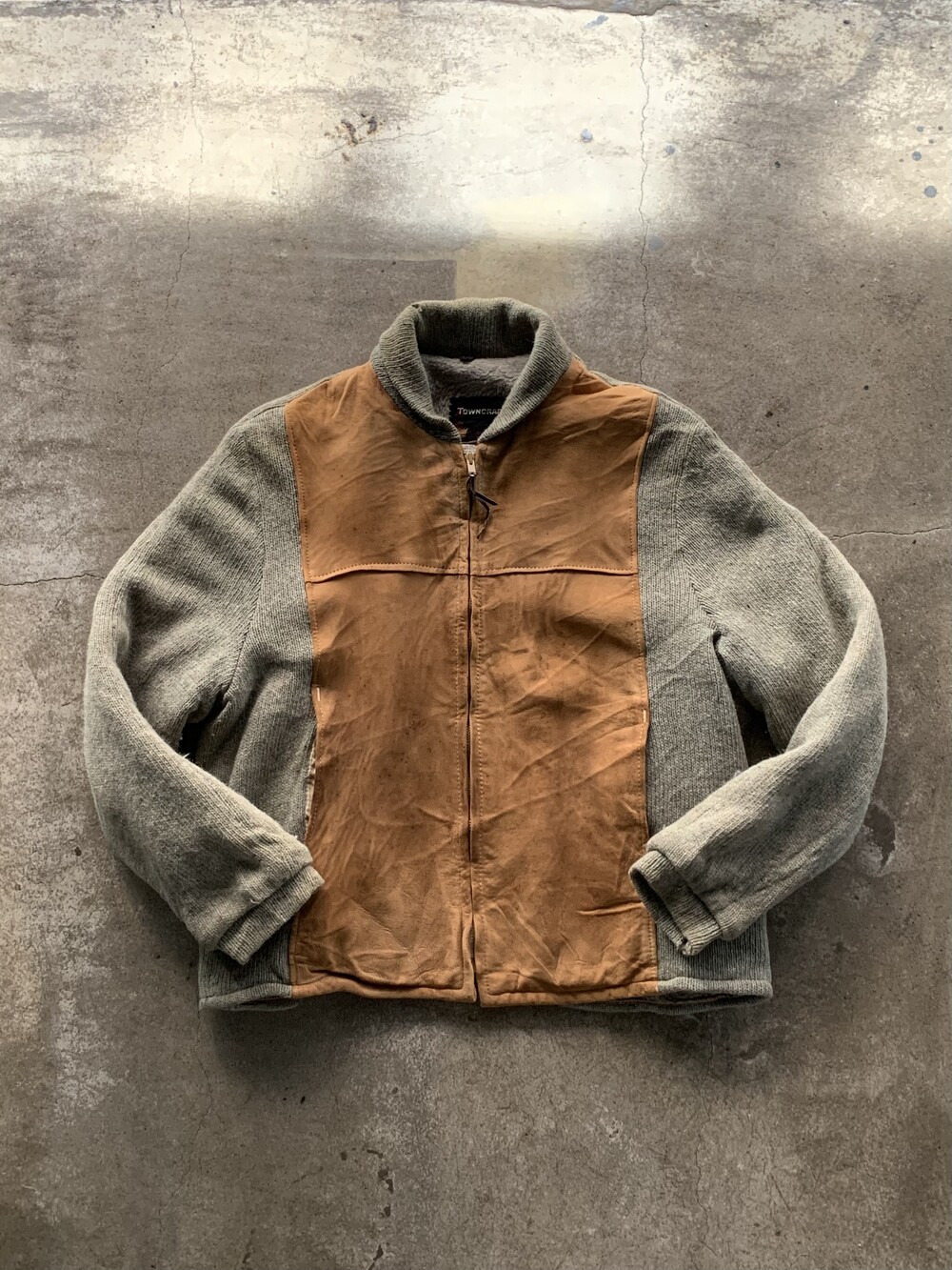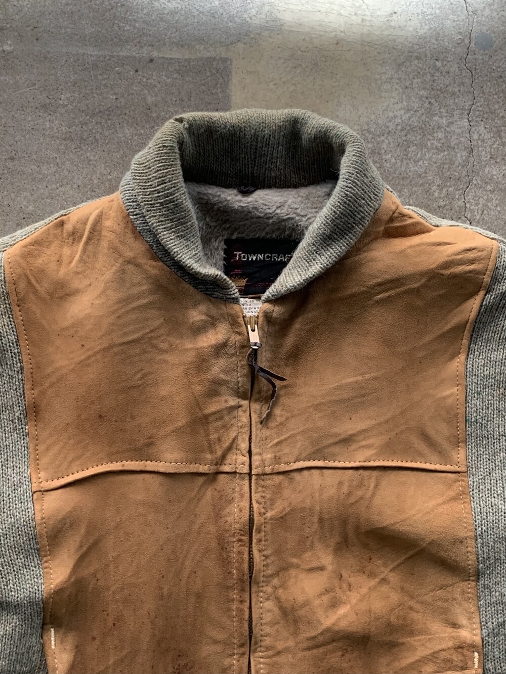 🚩Detail 오묘한 빛깔과 미약하게나마 헤어리한 울 바디에 부드러운 가죽 패널이 붙어, 한 가지 옷에 두 가지 이상의 소재가 섞인 스위칭(Switching) 자켓으로 불리우는 품목입니다. 스토어계열 브랜드 JCPenney 산하 스포츠웨어 브랜드 타운크래프트에서 발매한 스위칭 자켓으로, 투박한 실루엣과 소재 특유의 고급스런 인상을 주는 오묘한 제품입니다.