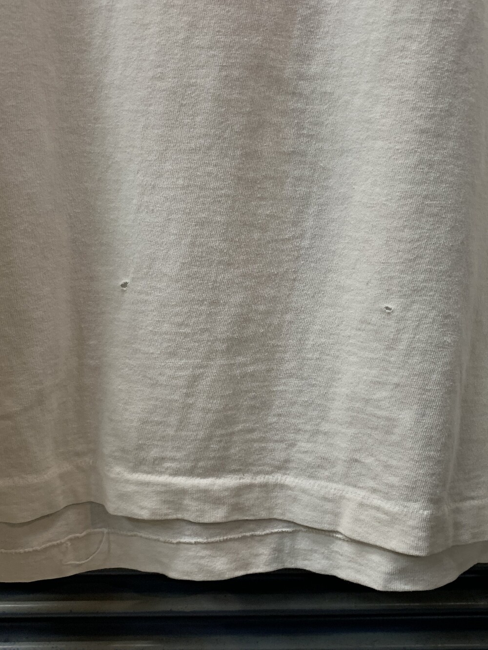 하단부에 핀홀이 있으며 프린팅도 페이딩을 거쳐 일부 흐려진, 사용감 있는 제품.