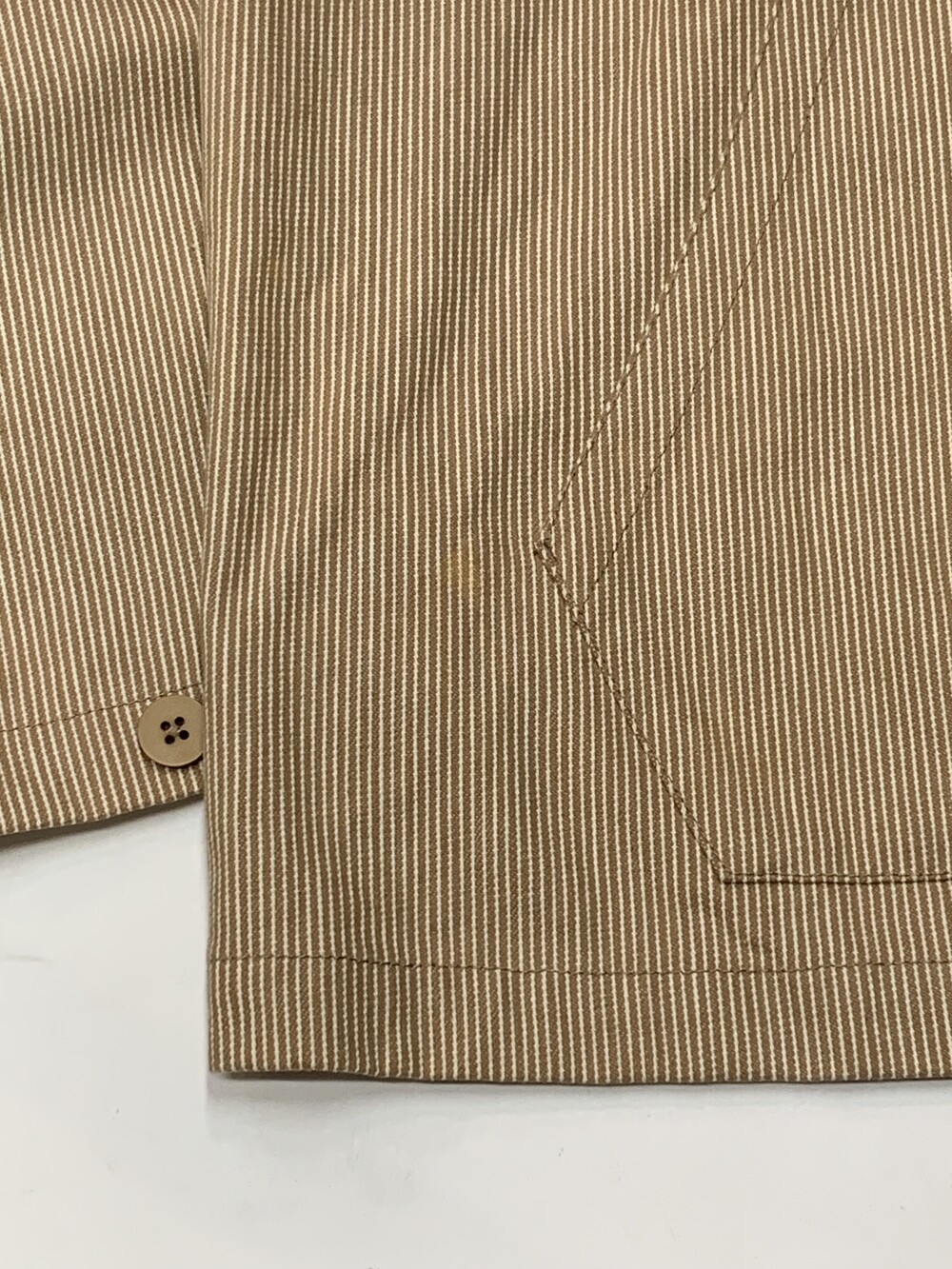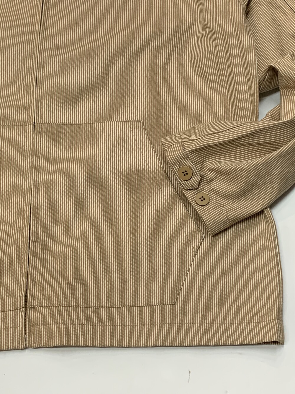 스포츠브랜드 고유의 핵심기술을 다루는 부서에서 일하는 사람들이 입는 옷은 다소 미래지향적인 형태이겠거니 하고 생각할 수도 있겠지만, 그 예상과는 달리 오늘 소개하는 제품은 아메리칸 캐주얼에서 쉽게 볼 법한 히코리 스트라이프 패턴의 워크자켓입니다. 뻣뻣힌 코튼 트윌 원단 바디 위에 NSRL 로고 자수가 더해져 다분히 의도적인 이질감이 더해진 제품입니다. 표기 XXL로, 소매가 길어 105호 혹은 그보다 살짝 크게 입는 분들까지도 권장드립니다.