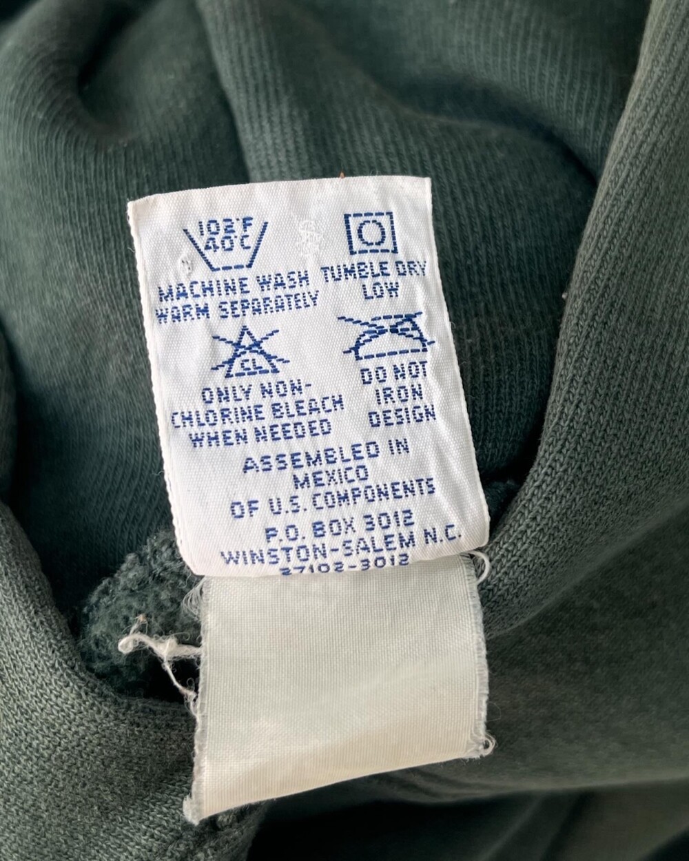 1990년대 중후반 즈음 미국발 원단으로 멕시코에서 생산한 시기의 제품으로 소매 립 이음매 부분 데미지 외에는 크게 신경쓸만한 하자는 없는 정도의 적당한 사용감의 개체입니다. 뒷면의 얼룩은 원단 컬러 덕분에 크게 눈에 띄지 않는 정도이며, 그마저도 후드를 쓰지 않고 떨어뜨리면 시선이 분산되면서 잘 보이지 않을 정도입니다. 표기 XL로 100호 - 105호 사이로 입는 분께 권장드립니다.