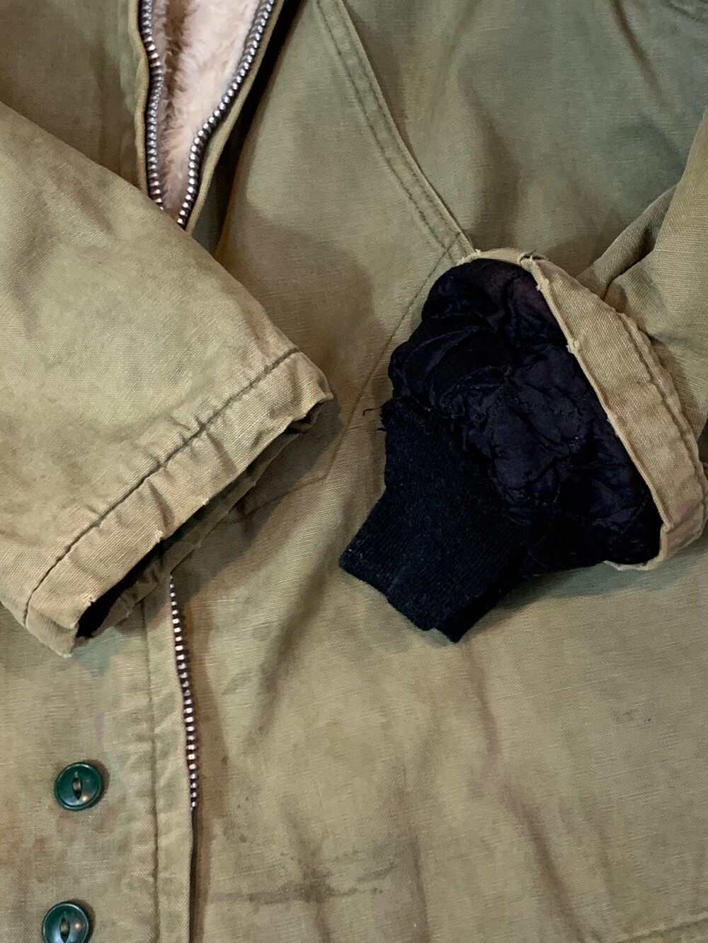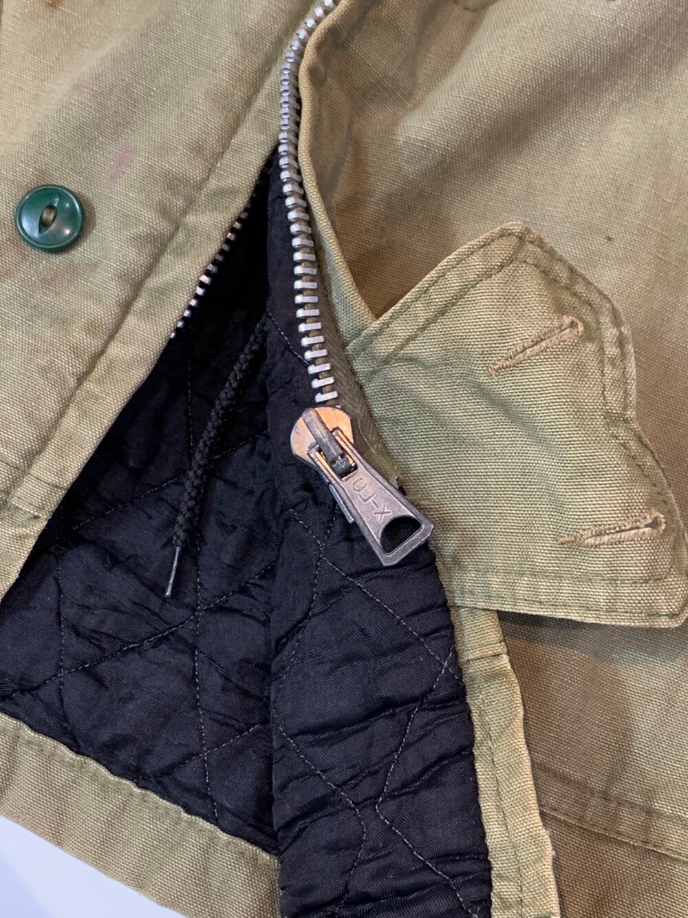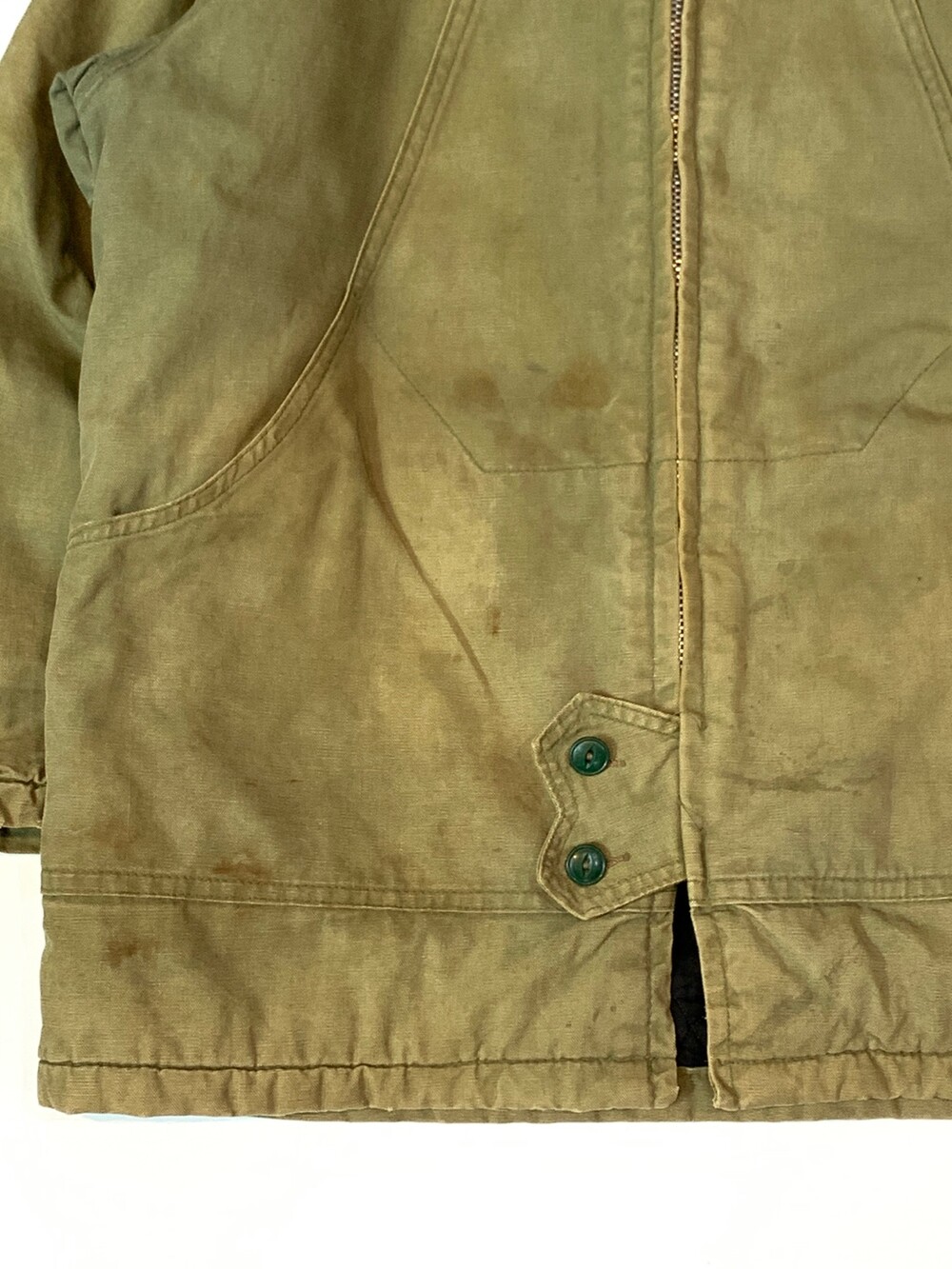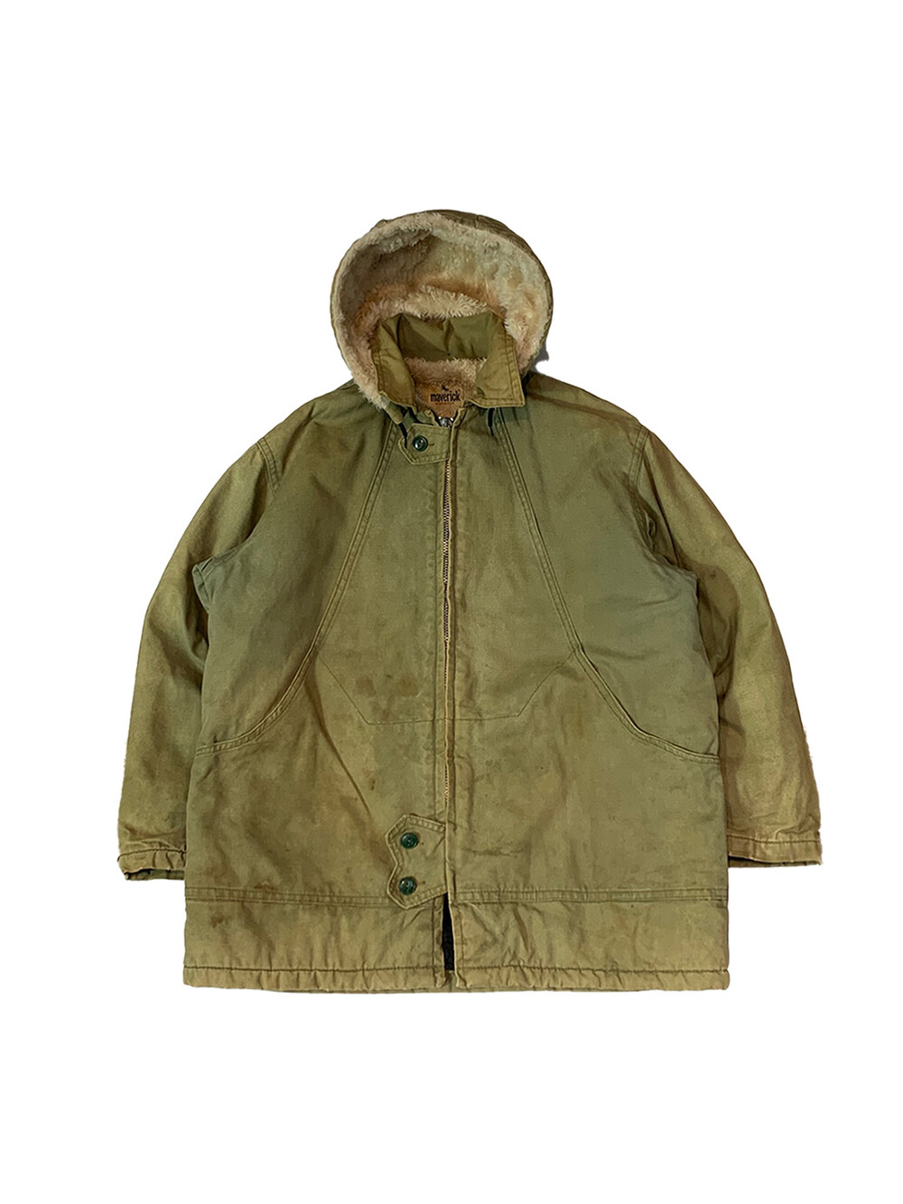 🚩Detail 스토어 계열 브랜드에서 종종 볼 수 있는 매버릭 스포츠웨어 덕 캔버스 원단의 파카입니다. 전면 봉제선을 따라 핸드워머포켓과 메인포켓이 이어져있는 배치, 상하단부 버튼 클로징 등의 디테일이 돋보이며 상단부는 인공 퍼, 하단부는 퀼트 라이닝, 소매 안쪽에는 립이 붙어 아우터로서 최소한의 보온성을 갖춘 제품입니다.