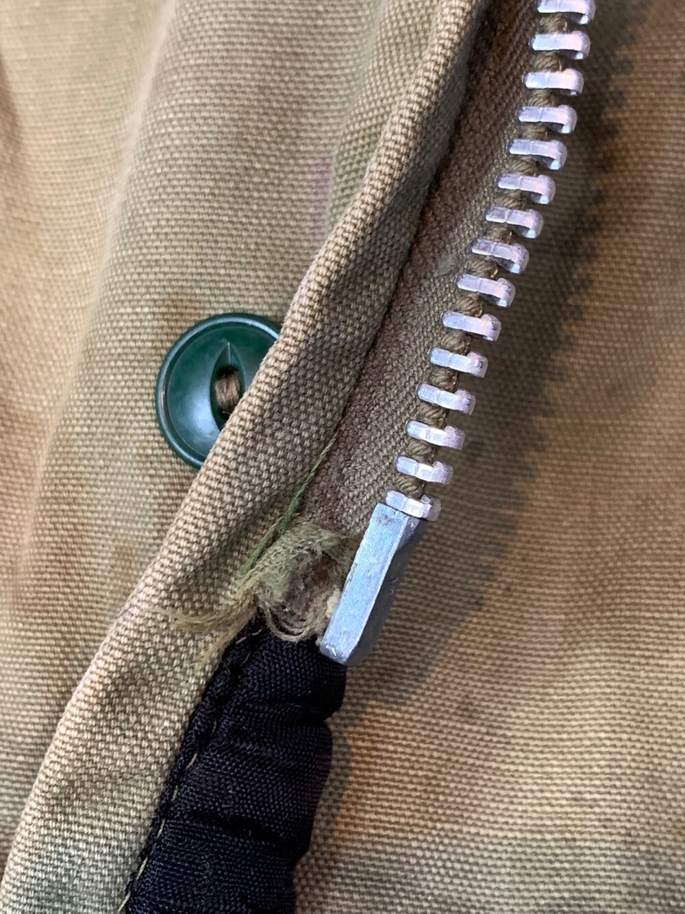 🚩Condition 전반적으로 사용감이 있어 얼룩과 부분적인 페이딩으로 인한 색빠짐이 두드러지며 하단부 지퍼테이프가 헤져 지퍼 체결이 원활하지는 않은 상태. (지퍼 자체는 작동합니다.)