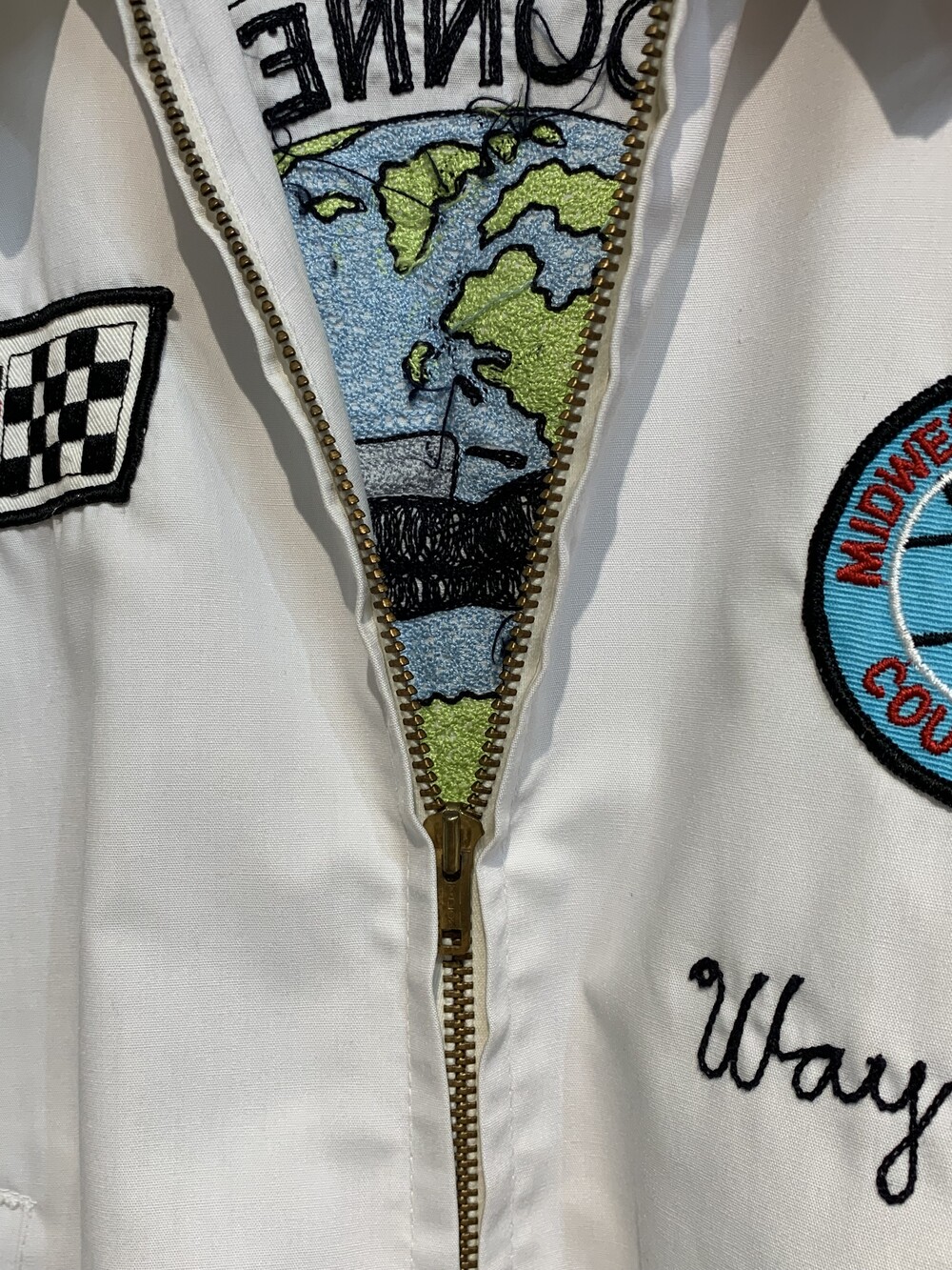 🚩Detail 골프웨어 중에서도 가볍게 착용할 수 있는 방풍용 아우터 포지션의 스윙 자켓 바디에 다양한 스쿠버다이빙 관련 패치와 자수가 올려져 소속감을 드러내는, 스포팅 굿즈로 소개할만한 요건을 갖춘 제품입니다. 균형잡힌 배치와 여유로운 사이즈가 돋보이는 제품으로, 스팟성 얼룩이 일부 존재하나 패치 탈락이나 자수 손상 없이 전반적으로 양호한 상태를 유지하고 있습니다.