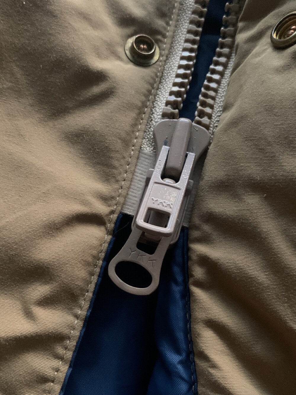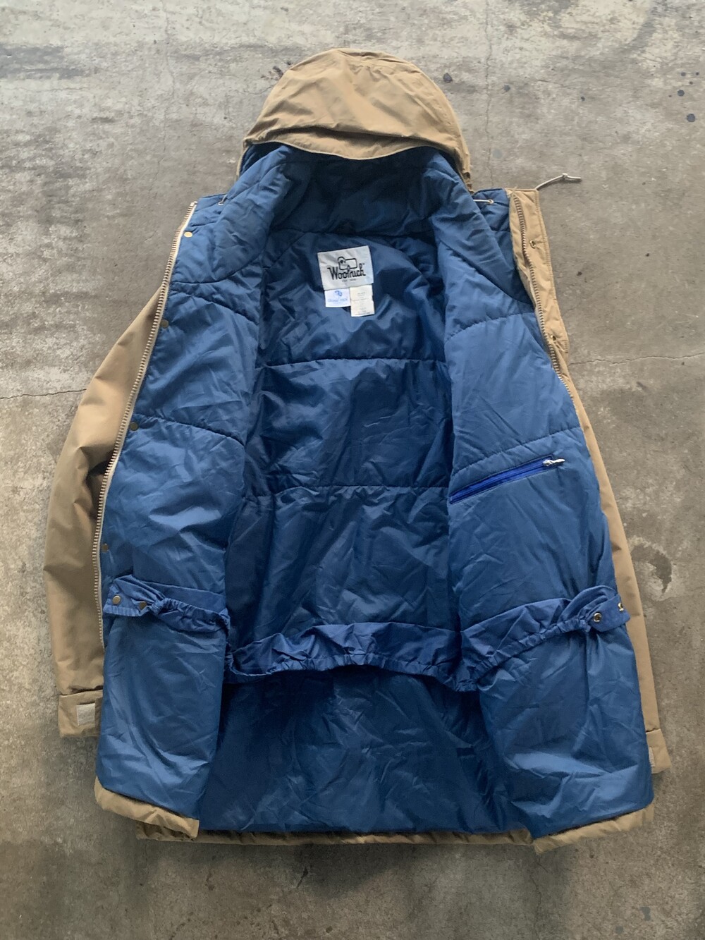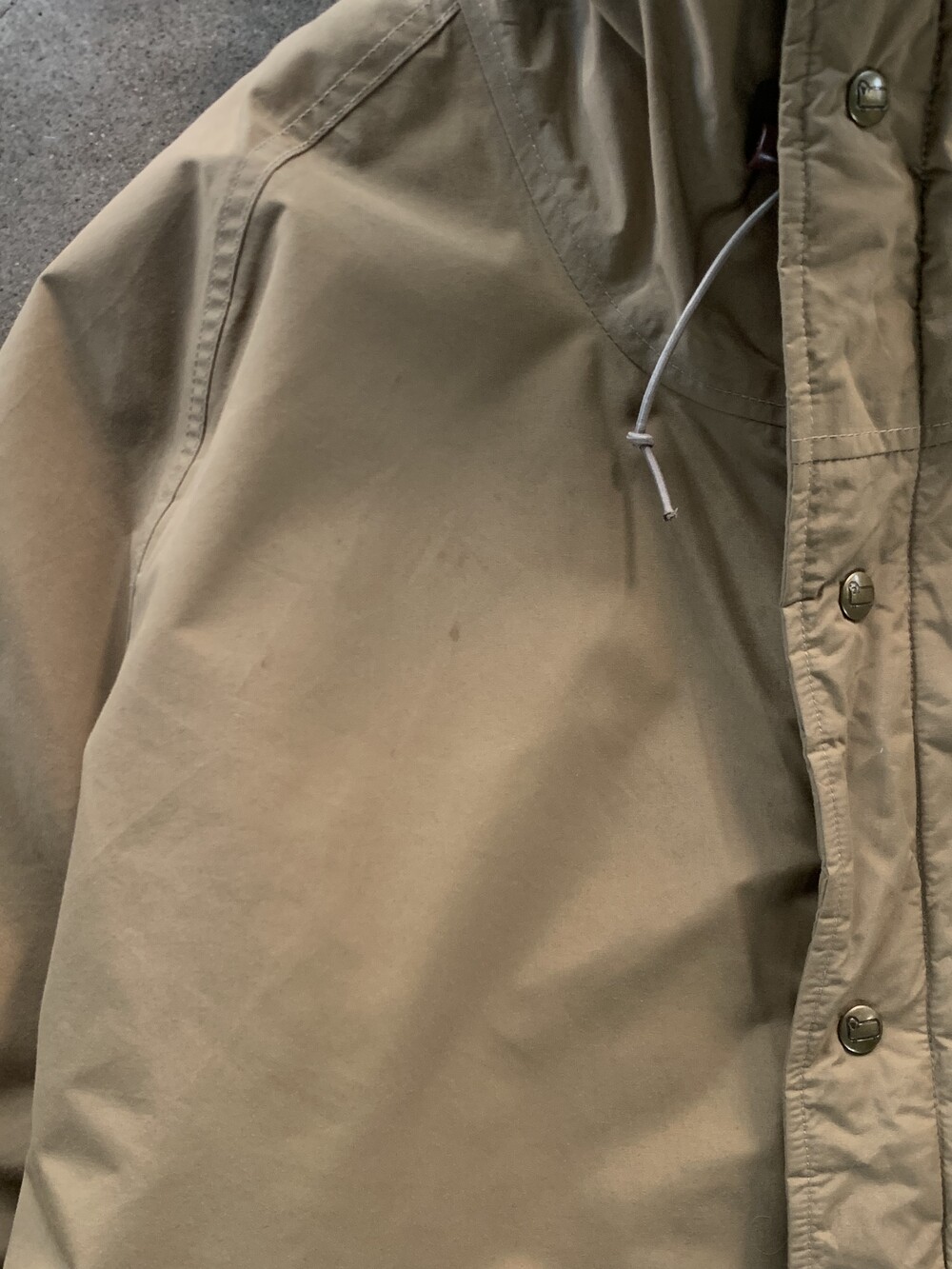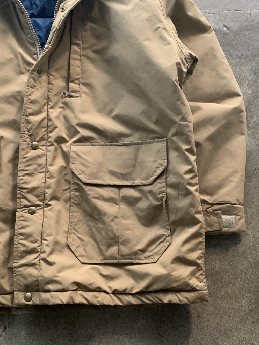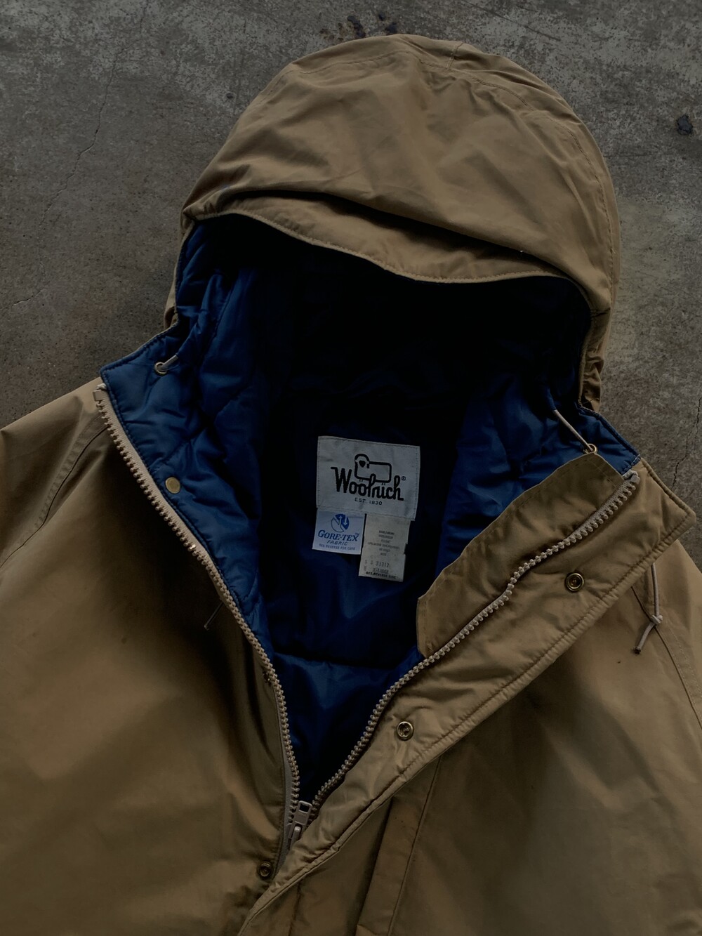 앞서 소개한 것들이 후드에 붙은 플랩포켓이 있어 전통적인 아웃도어웨어스러움을 강조한다면, 고어텍스 아웃쉘에 폴리 충전재가 주입된 울리치의 고어텍스 파카는 얼굴을 가릴 정도로 높게 올라오는 지퍼와 스트링으로 구성되어 있으며 60/40 원단에 비해 뻣뻣하고 힘 있는 아웃쉘 때문인지 보다 미니멀한 구성을 보이는 제품입니다. 전문적인 기어와 비교할 순 없겠지만 일상 생활에서 방풍과 발수 측면에서는 부족함이 없을만한 제품으로 충분한 레이어드를 동반하여 따뜻하게 착용할 수 있을만한 제품입니다. 105호 전후로 착용하는 분들에게 권장드립니다.
