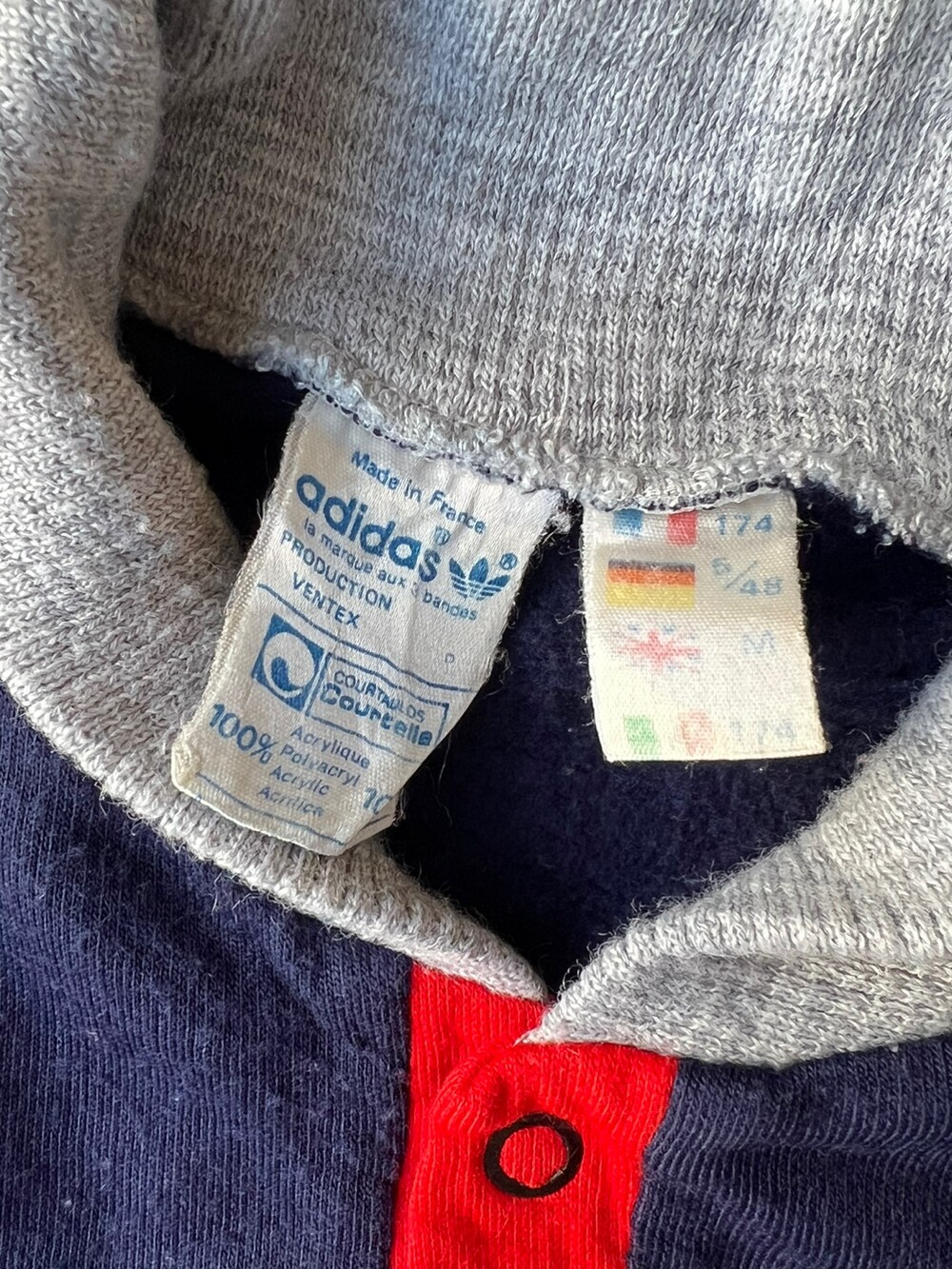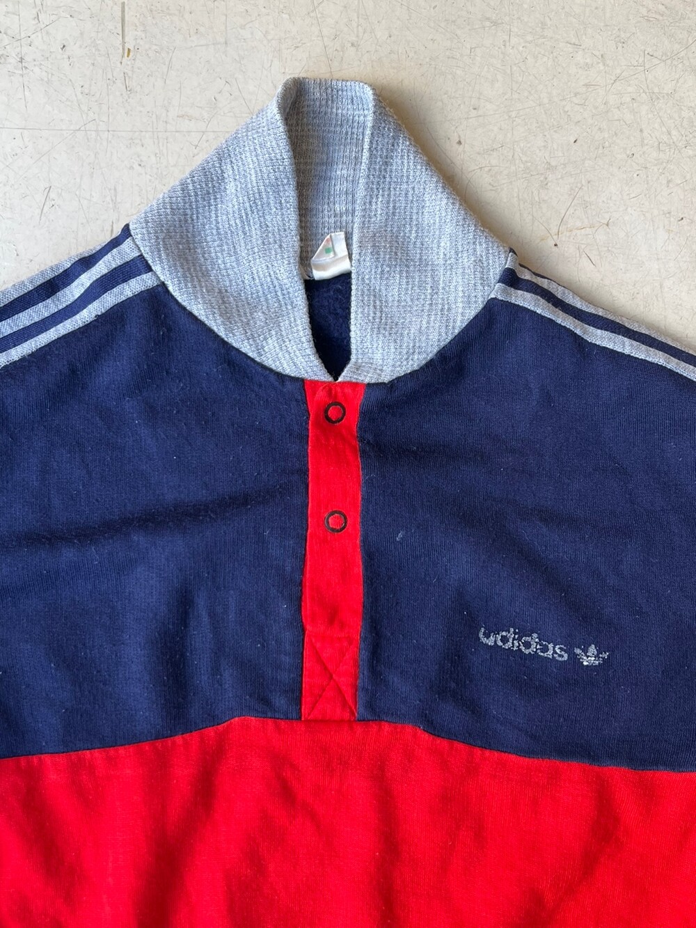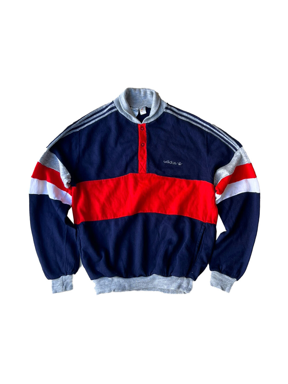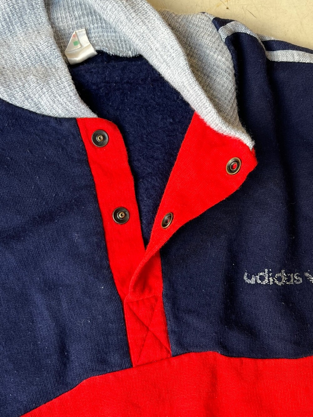 1970-80년대 벨루어와 유사한 질감의 아크릴 원단의 아디다스 의류에서 종종 등장하는 VENTEX 사 제조의 나일론 스냅 풀오버입니다. 레트로한 배색 배치와 가벼운 착용감이 돋보이는 제품입니다.