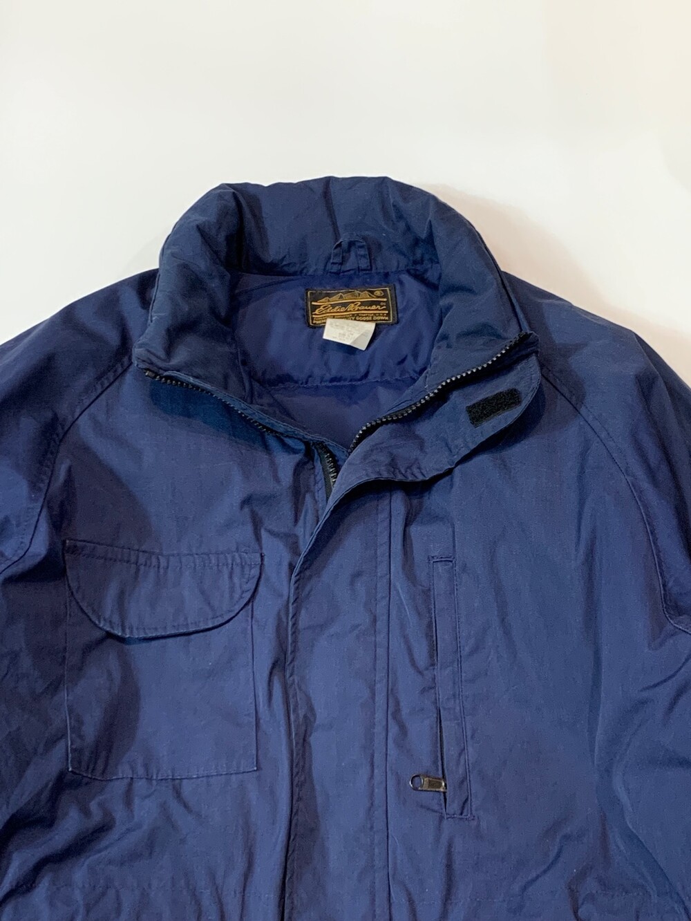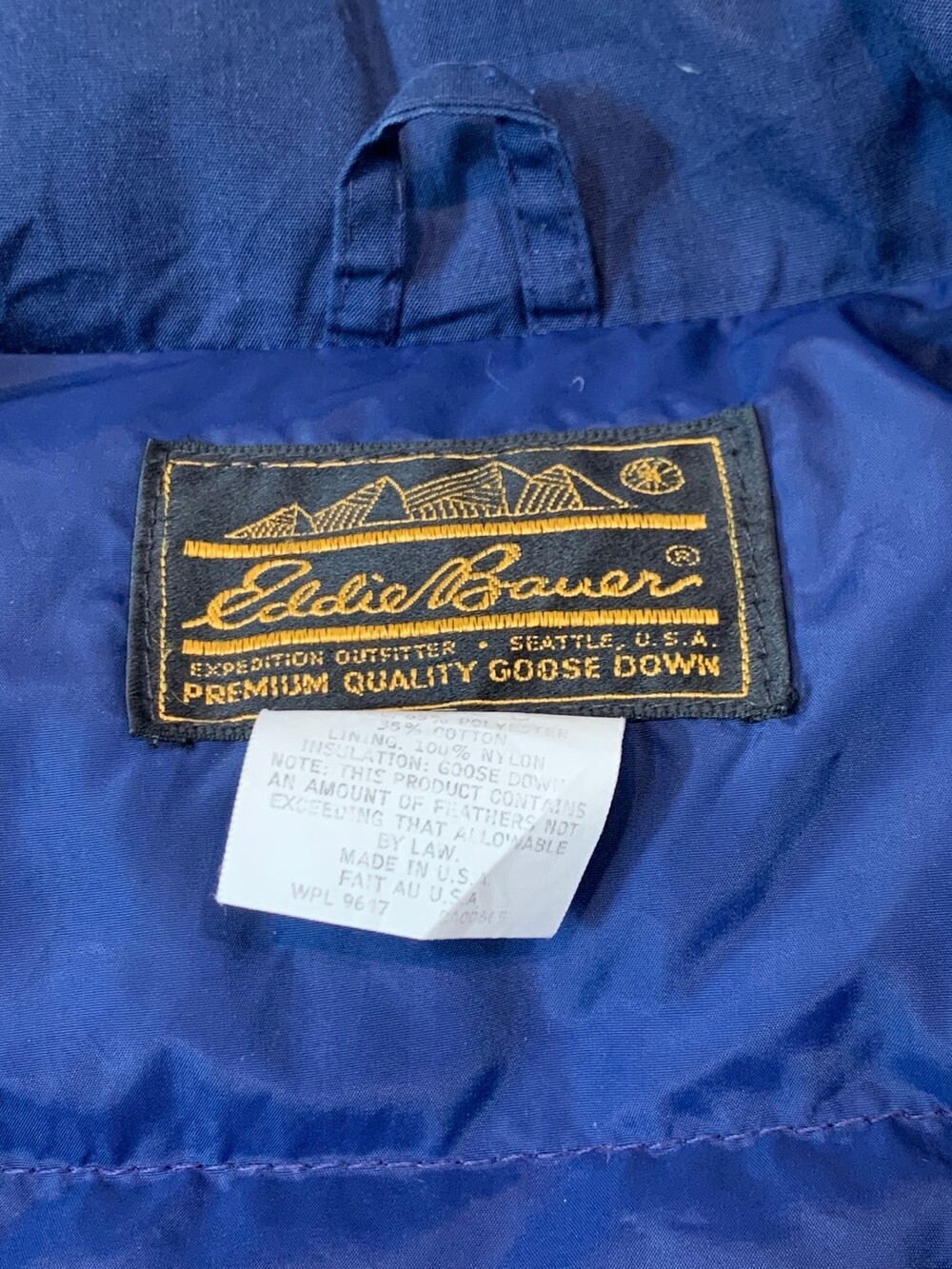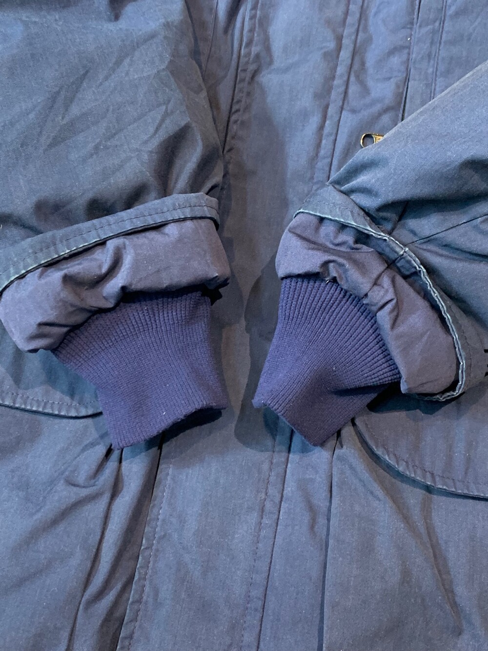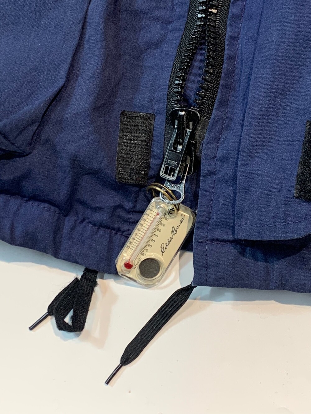 릿지라인 파카와 스노우라인 파카의 디테일이 혼용된지라 정확한 모델명은 알 수 없는 에디바우어의 다운 파카입니다. 마운틴파카 베이스의 제품으로 건조한 터치감의 폴리/코튼 혼방 겉감에 구스다운 충전재가 주입되어 최소한의 방풍과 보온 기능을 갖춘 다운파카입니다. 하단부 지퍼 손잡이에는 집오게이지(ZIP-O-GAUGE)가 달려 있습니다.