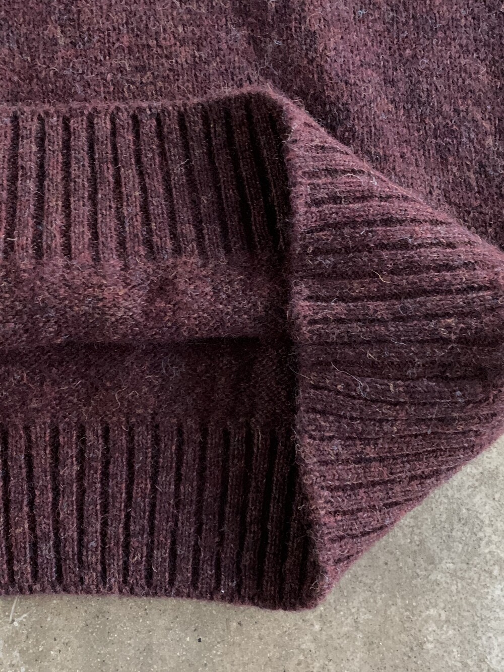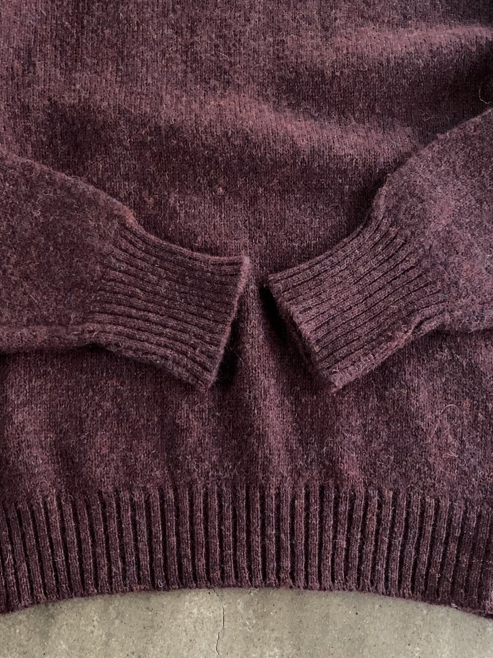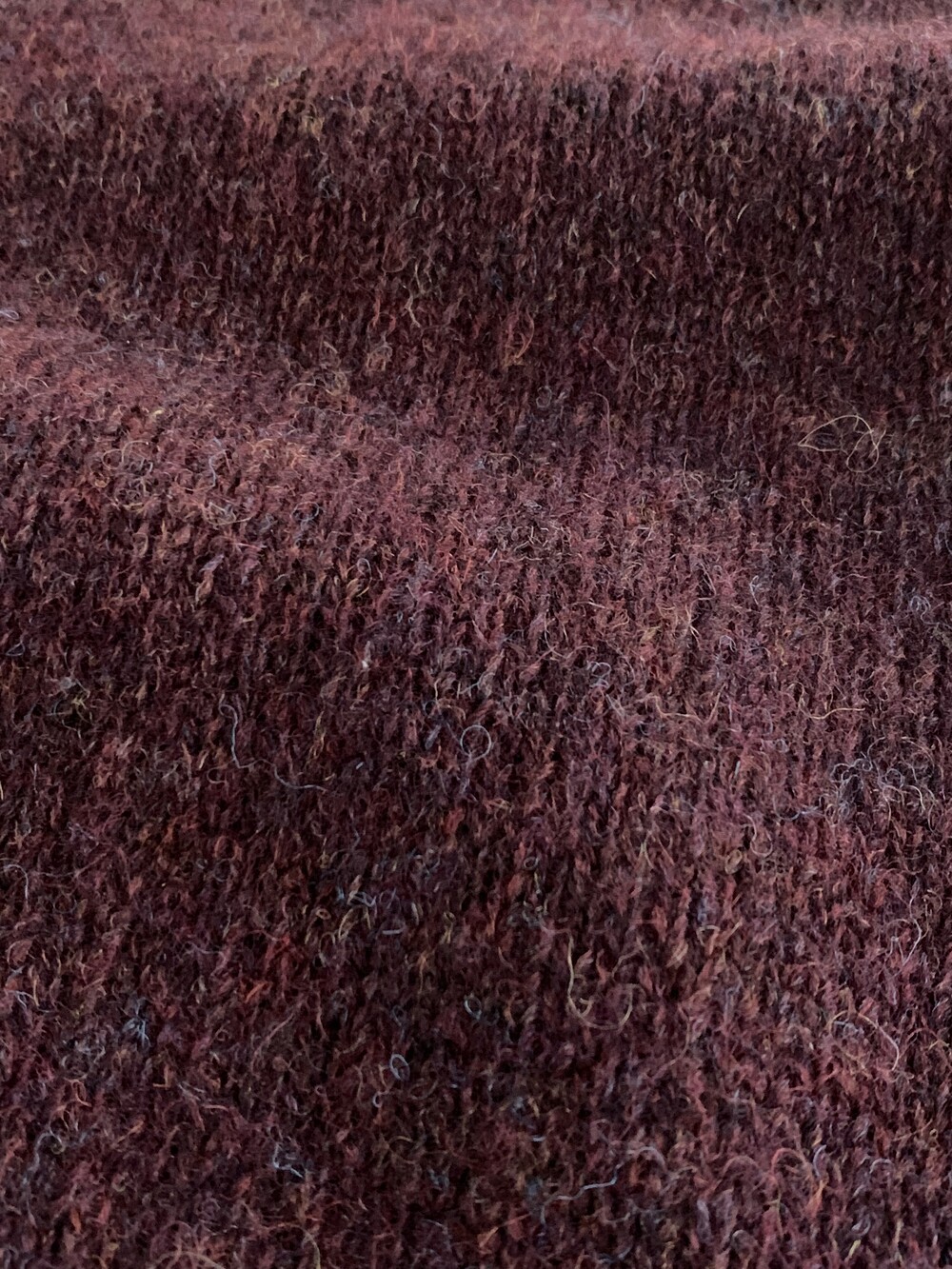 🚩Detail 어디서나 쉅게 볼 수 있을 법한 크루넥 스웨터 디자인이지만 약간은 까슬하고 건조한 터치감과 버건디 컬러 바디에서도 군데군데 드러나는 다양한 색상의 짧은 실이 헤어리한 질감을 띠는 원단으로 굳이 택을 들어다보지 않더아도 영국(혹은 영국령 홍콩)이나 스코틀랜드 울을 예상할 수 있을만한 제품입니다. 미국발 캐주얼웨어 브랜드 랜즈엔드(Lands’ End)가 원체 로고를 잘 드러내지 않기도 하지만, 랄프로렌이나 갭과 같은 브랜드라 할 지라도 원단이 부각되어야 할 이러한 종류의 옷에는 굳이 로고를 배치하지 않았을겁니다. 심플한 크루넥과 두껍지 않은 원단 두께로 다양한 방식으로 활용할 수 있을만한 제품입니다. 표기에 비해 여유로운 사이즈로 105호 전후로 착용하는 분들에게 권장드립니다.